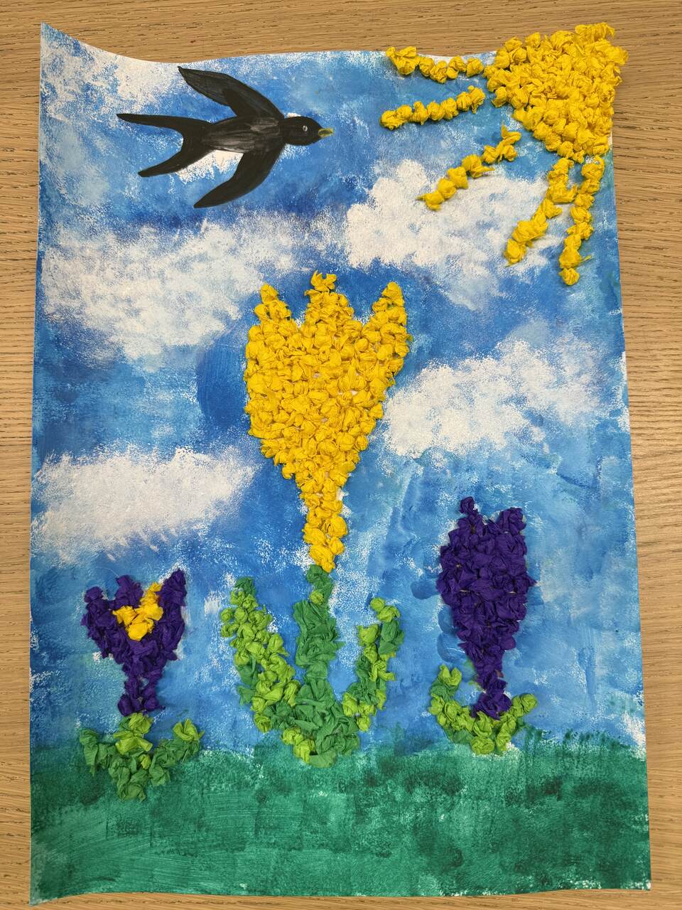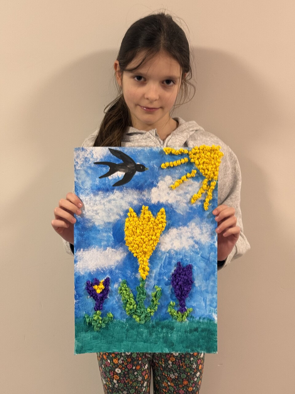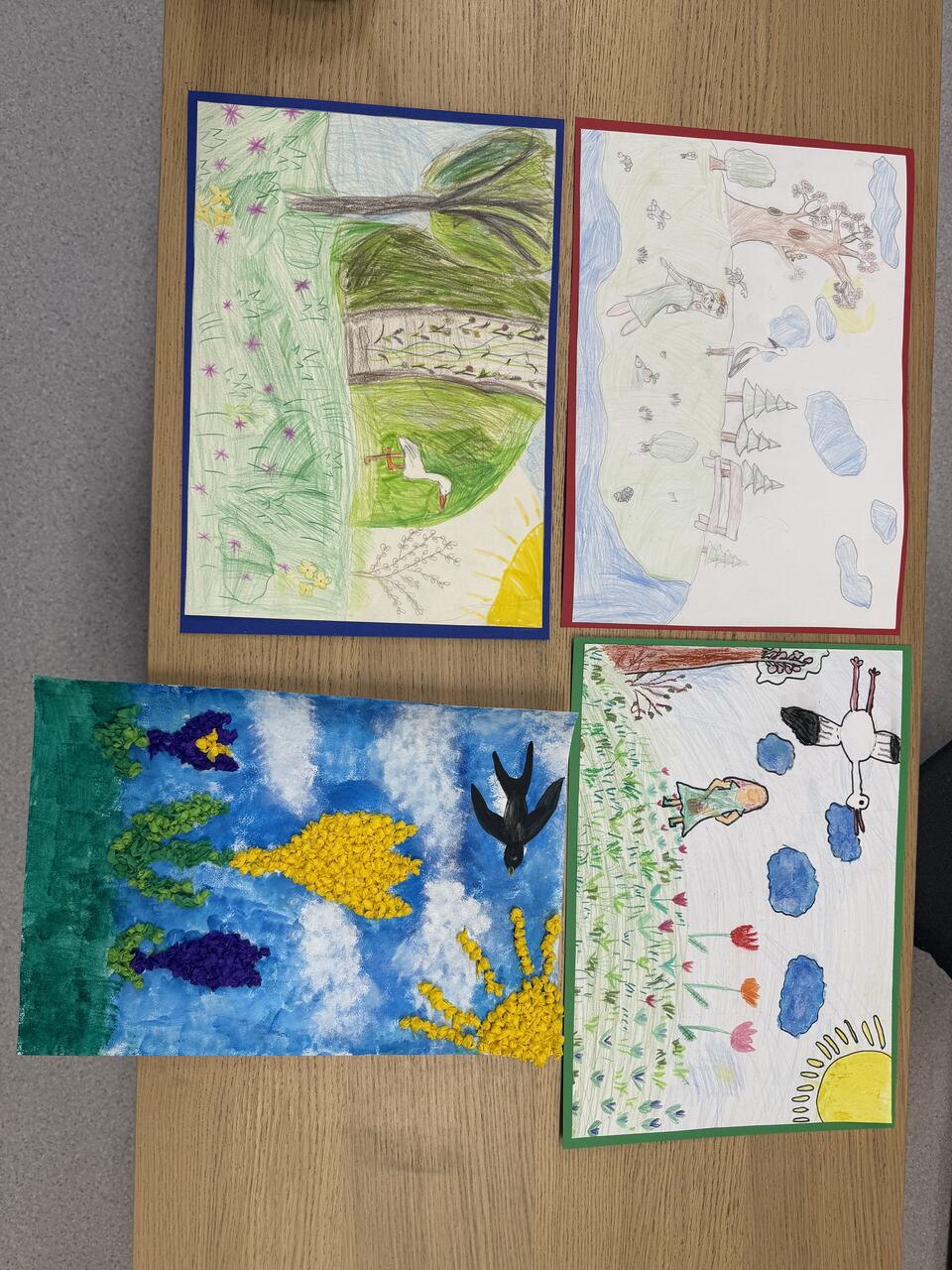 Uczennice z klasy 2a, wzięły udział w konkursie plastycznym pt. „Wiosna i wszystko kwitnie „.