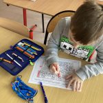 Poznając zawód listonosza, rozwiązywaliśmy łamigłówki, zagadki. Zaprojektowaliśmy swoje własne kartki świąteczne, a także przypomnieliśmy sobie drogę listu od nadawcy do adresata