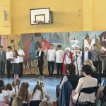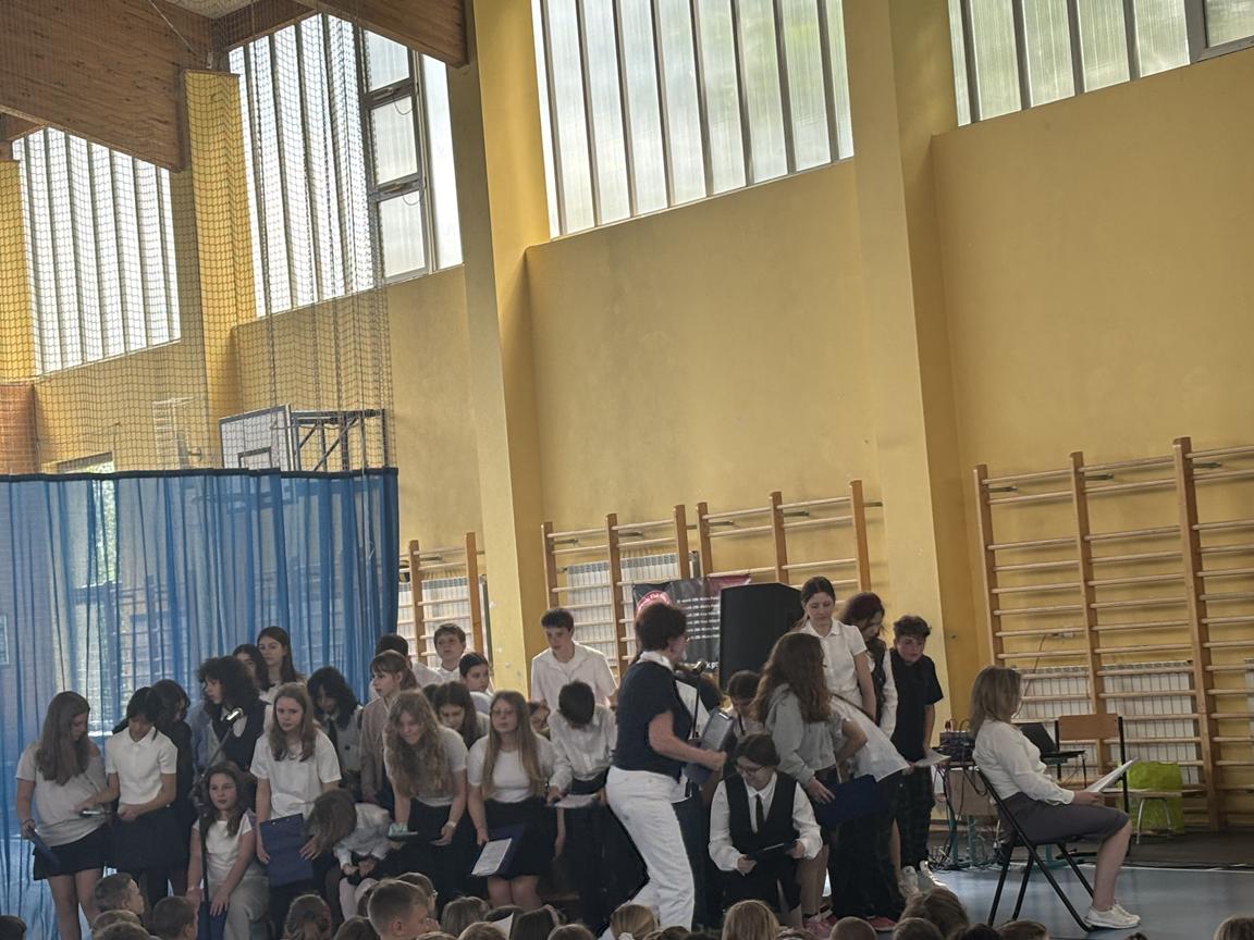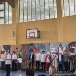 Chór szkolny pod kierunkiem Pani Iwony Gołębiewskiej zaśpiewał pieśni tematyczne pt. : ,, Witaj, majowa jutrzenko ” , ,,Jak długo w sercach naszych”.