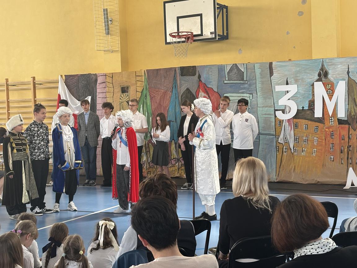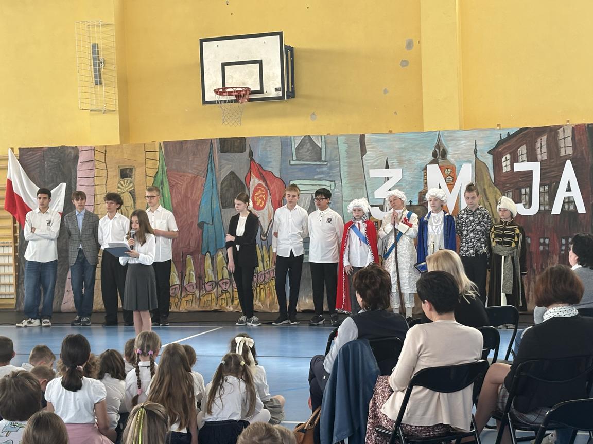 Dnia 30 kwietnia w naszej szkole odbył się Apel z okazji 234 rocznicy uchwalenia Konstytucji 3 Maja. Uczniowie z klasy 6 d oraz 8a przypomnieli okoliczności uchwalenia Konstytucji z roku 1791.