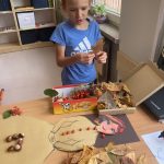 Zaczynamy tydzień w „Kolorach jesieni” . Uczniowie klasy 2C stworzyli Panią Jesień z zebranych wcześniej darów jesieni: kasztanów, żołędzi, jarzębiny, kolorowych liści.