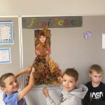 Zaczynamy tydzień w „Kolorach jesieni” . Uczniowie klasy 2C stworzyli Panią Jesień z zebranych wcześniej darów jesieni: kasztanów, żołędzi, jarzębiny, kolorowych liści.