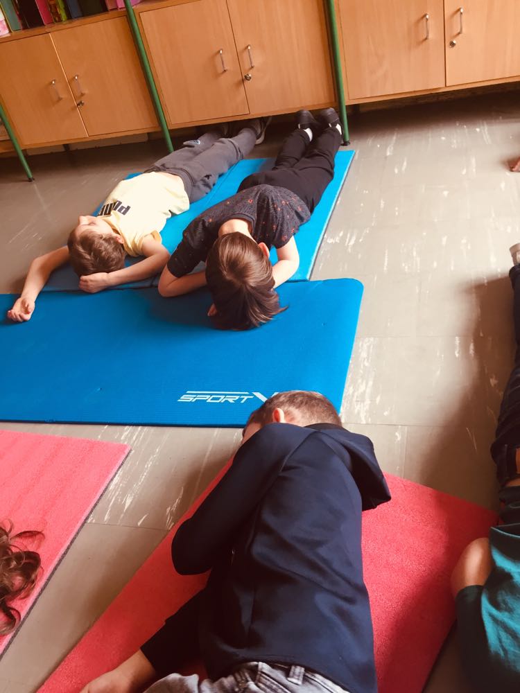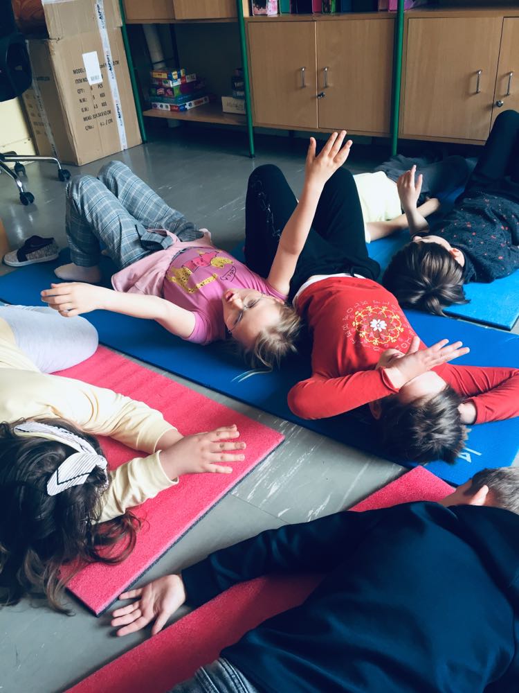 Klasa 2c ,w projekcie Uważność , relaksowała się przy muzyce, różnych opowieściach, rysowała rzeczy wyobrażone podczas wizualizacji, wykonywała roślinne mandale i pudełka ma skarby. Oczywiście wytrwale ćwiczyła jogę.
