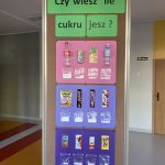 W ramach promocji ZDROWEGO ŻYWIENIA , na korytarzu naszej szkoły, pojawiła się tablica przedstawiająca zawartość cukru w niektórych lubianych przez dzieci produktach.