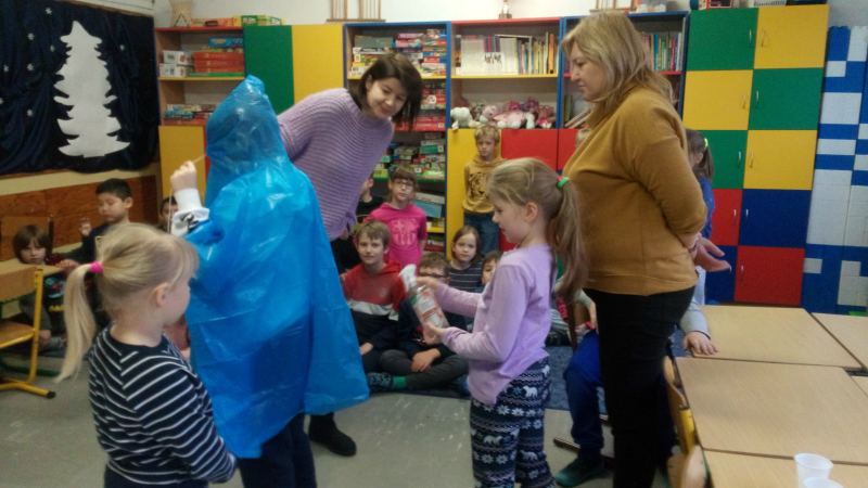 Dzieci z klas pierwszych i trzecich zapoznawały się z zawodem naukowca. Robiły doświadczenia z nanocząsteczkami .