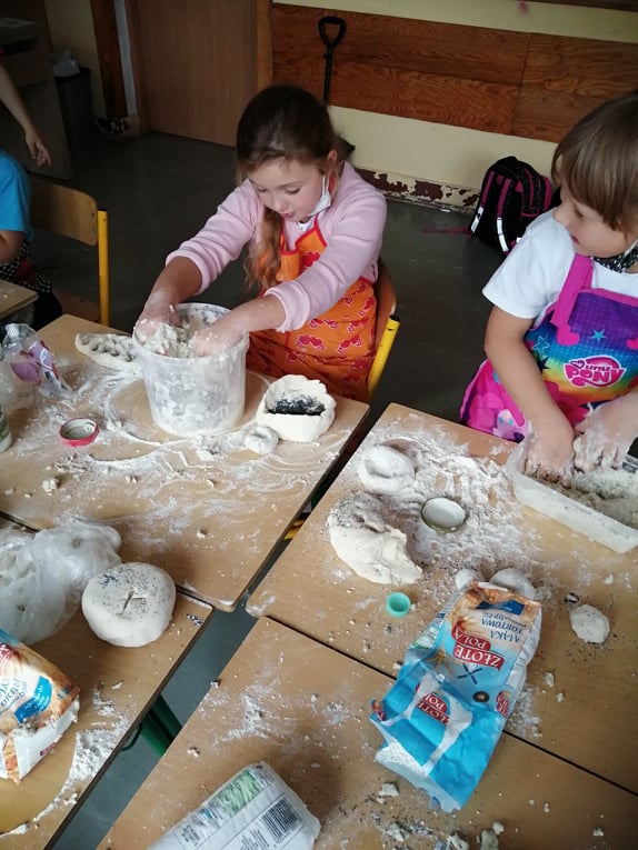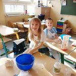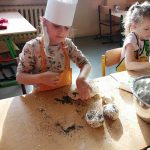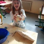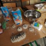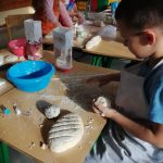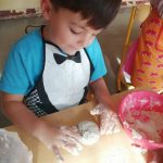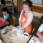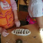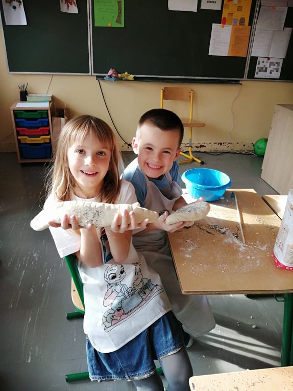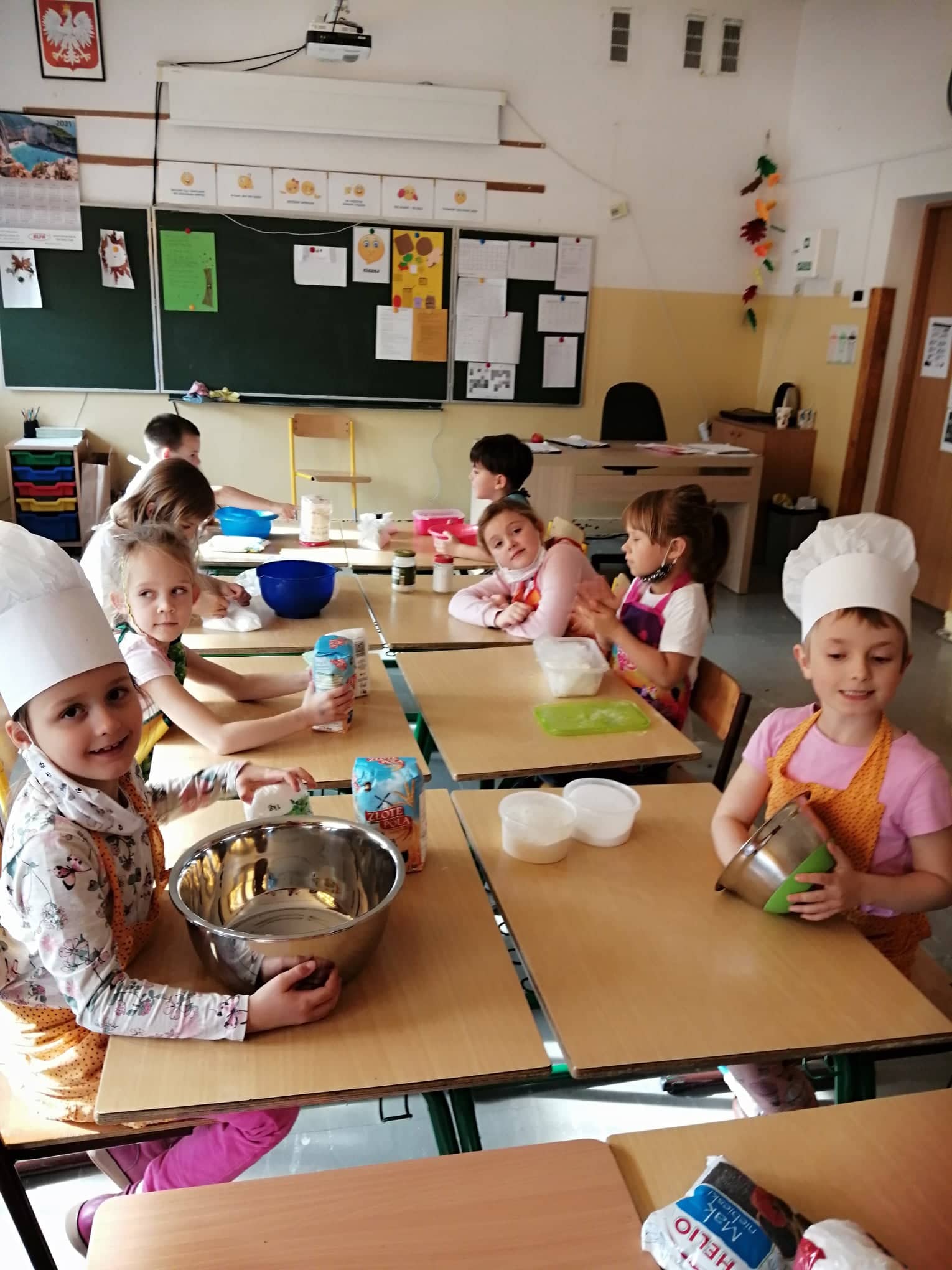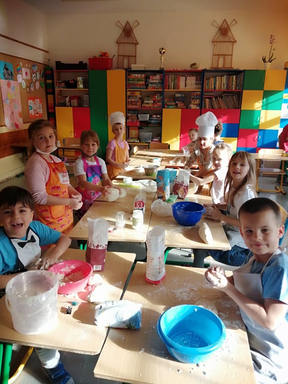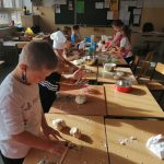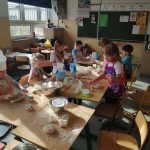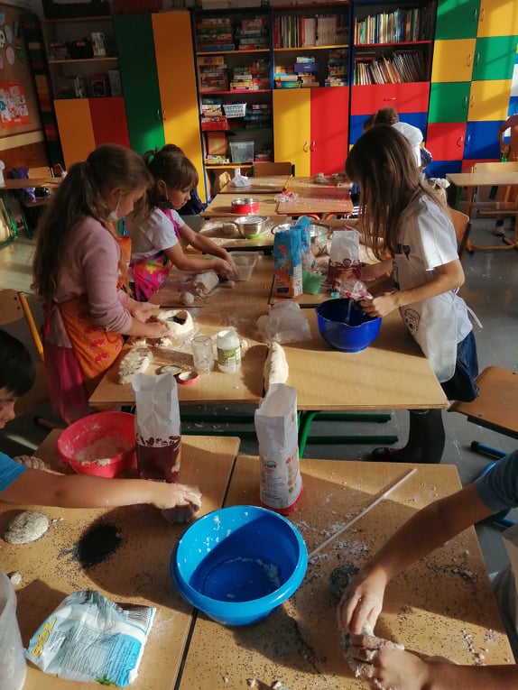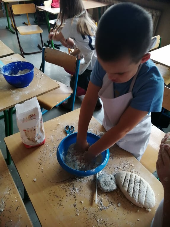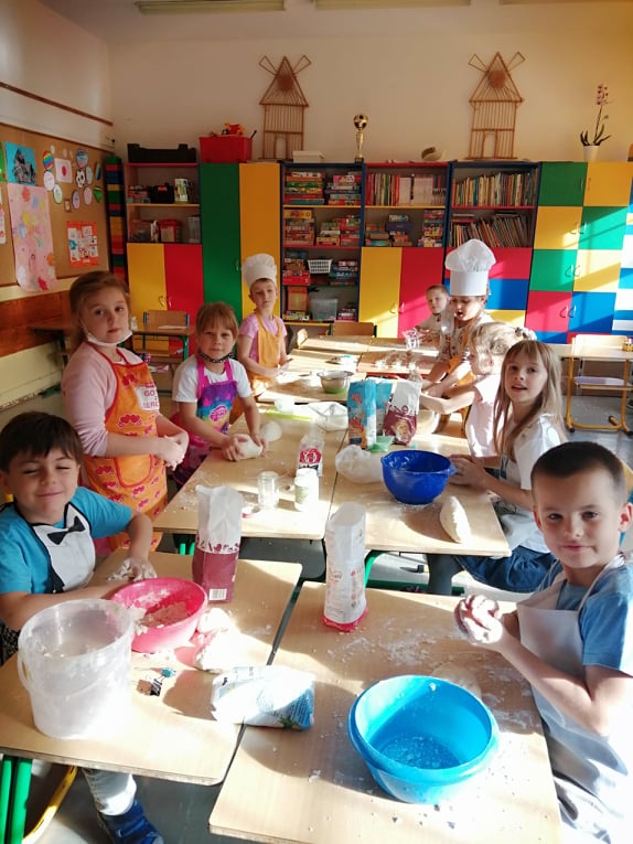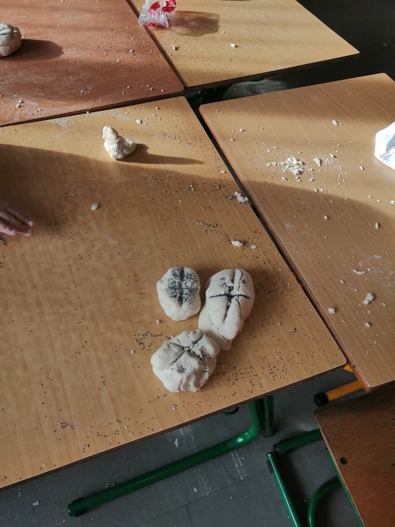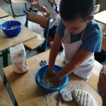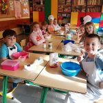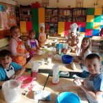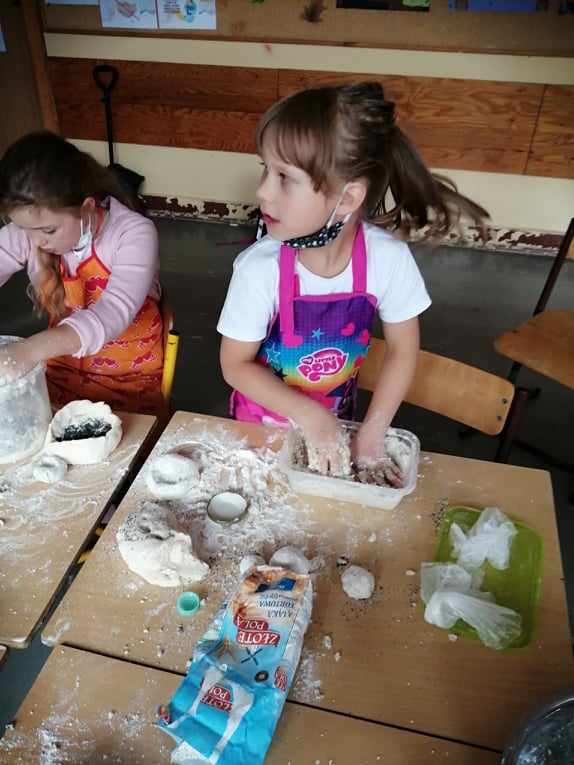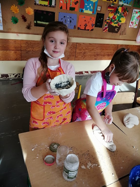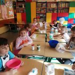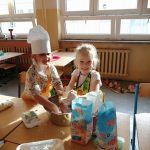 Natomiast   uczniowie  z klasy 1b przygotowywali pieczywo z masy solnej. Byli bardzo zaangażowani w robienie ciasta i formowanie pieczywa.