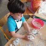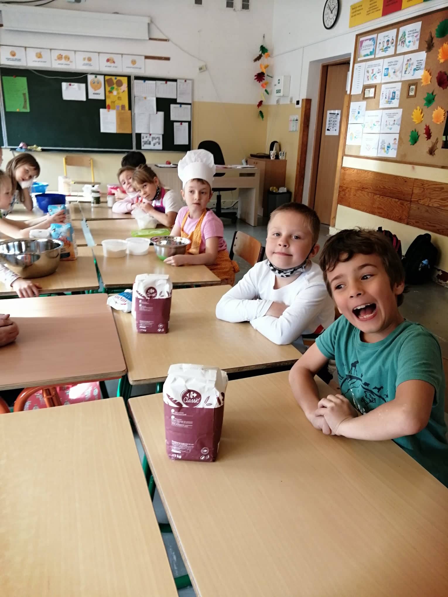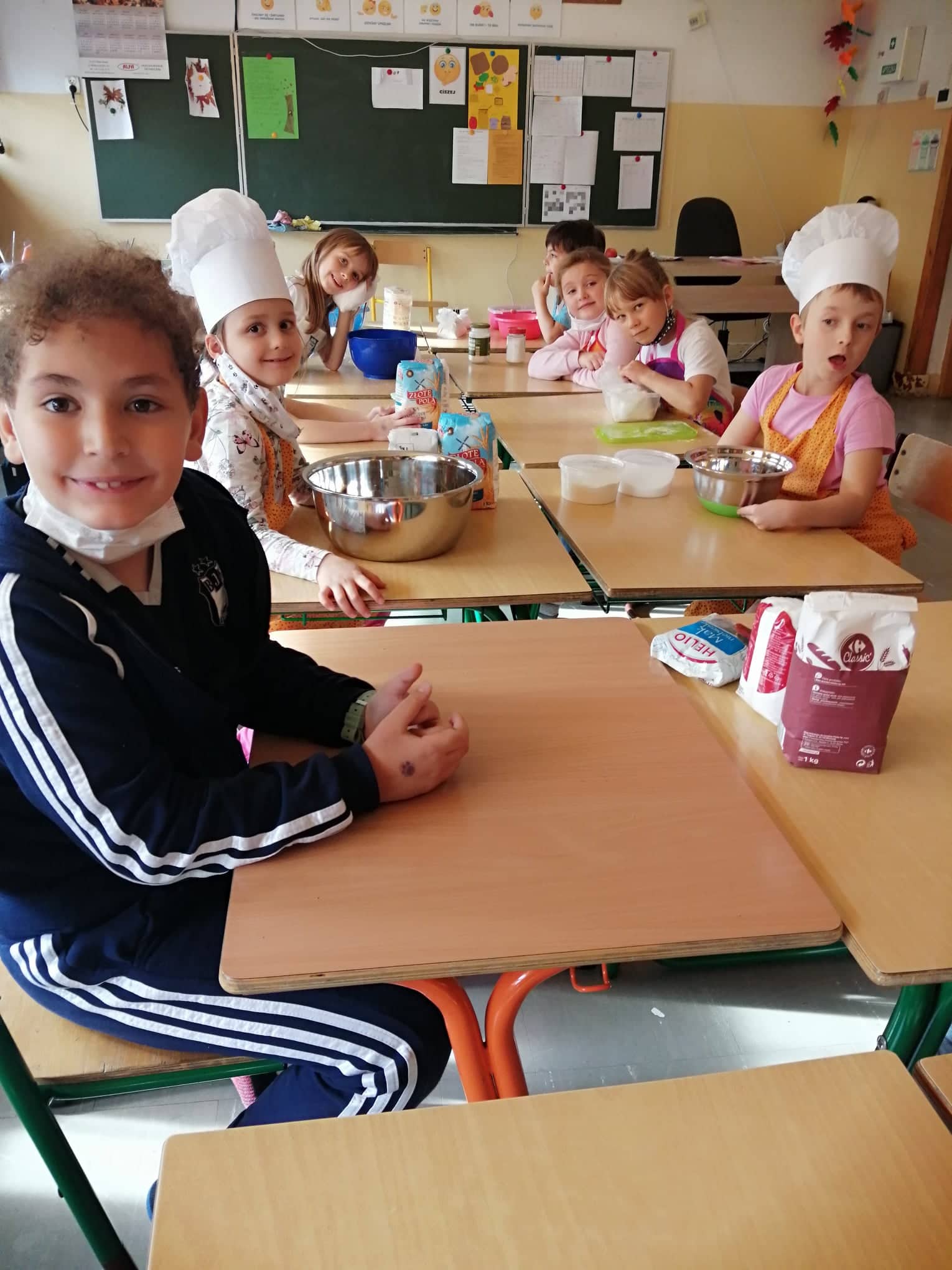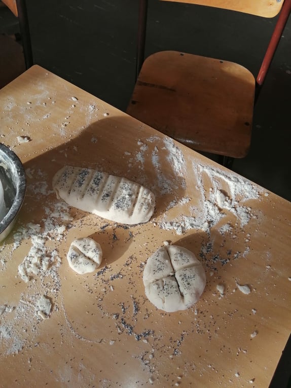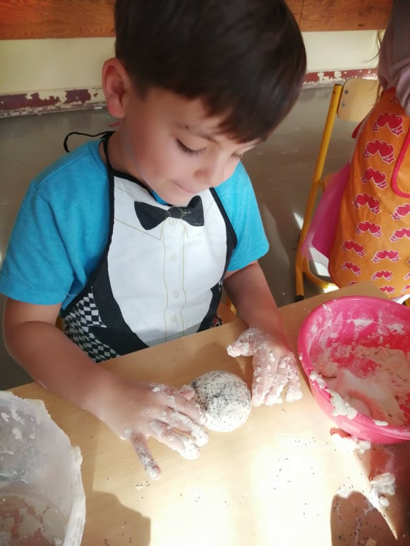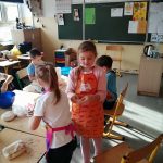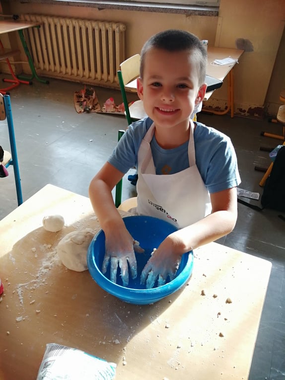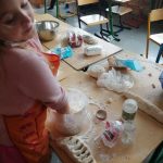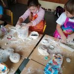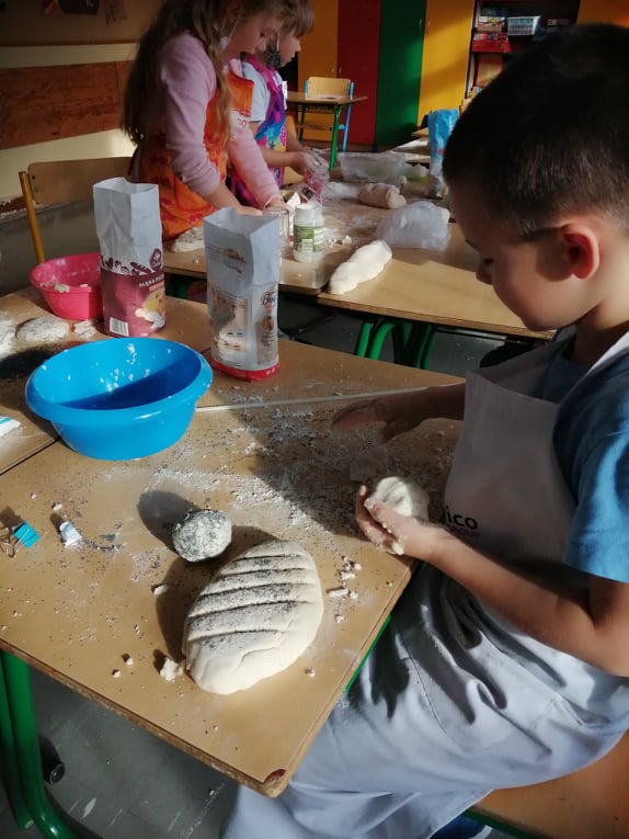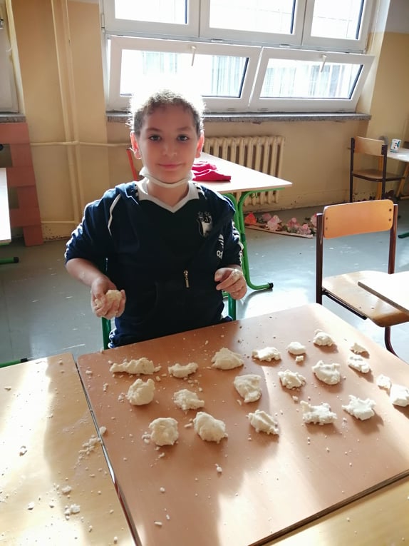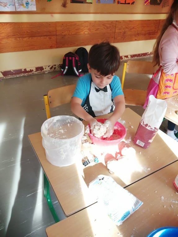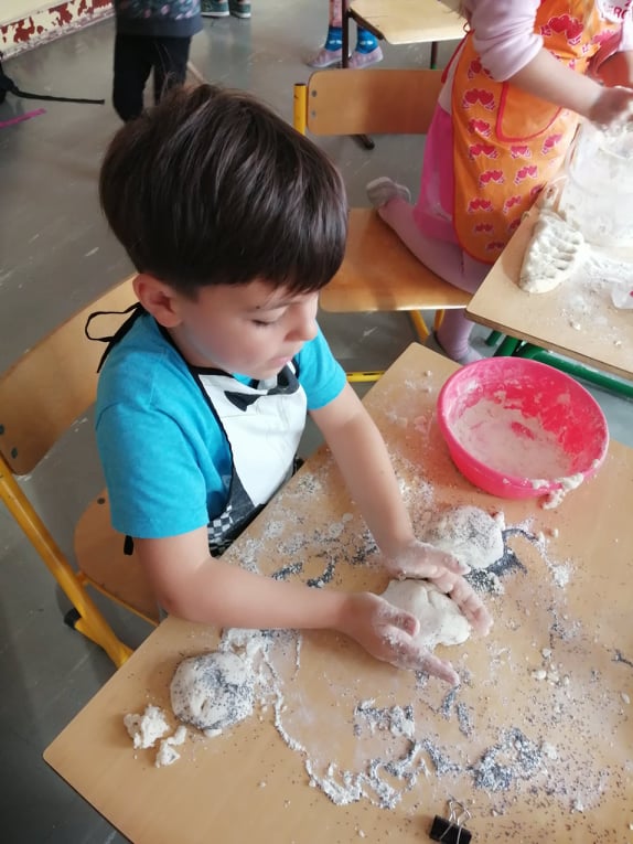 Natomiast   uczniowie  z klasy 1b przygotowywali pieczywo z masy solnej. Byli bardzo zaangażowani w robienie ciasta i formowanie pieczywa.