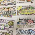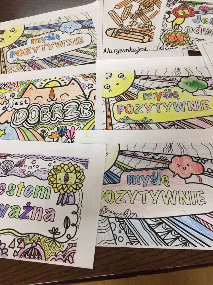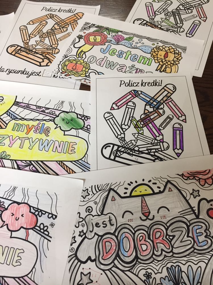 Z okazji Dnia Kredki 2c robiła kompozycje, oczywiście z kredek i kolorowała obrazki z pozytywnymi hasłami.