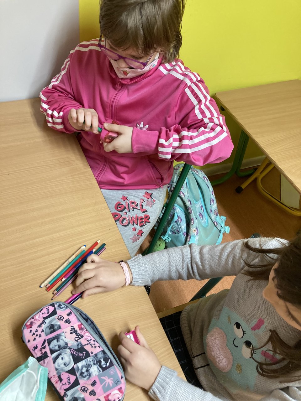 W Dzień Kredki nie może zabraknąć głównej bohaterki. Klasa 2a zebrała wszystkie świetlicowe kredki i je natemperowała. Po obowiązkowej kwarantannie będą jak znalazł. Każdy chciałby mieć „zaczarowany ołówek”, my swoimi dużo kolorowaliśmy, tak jak dyktowała nam wyobraźnia.