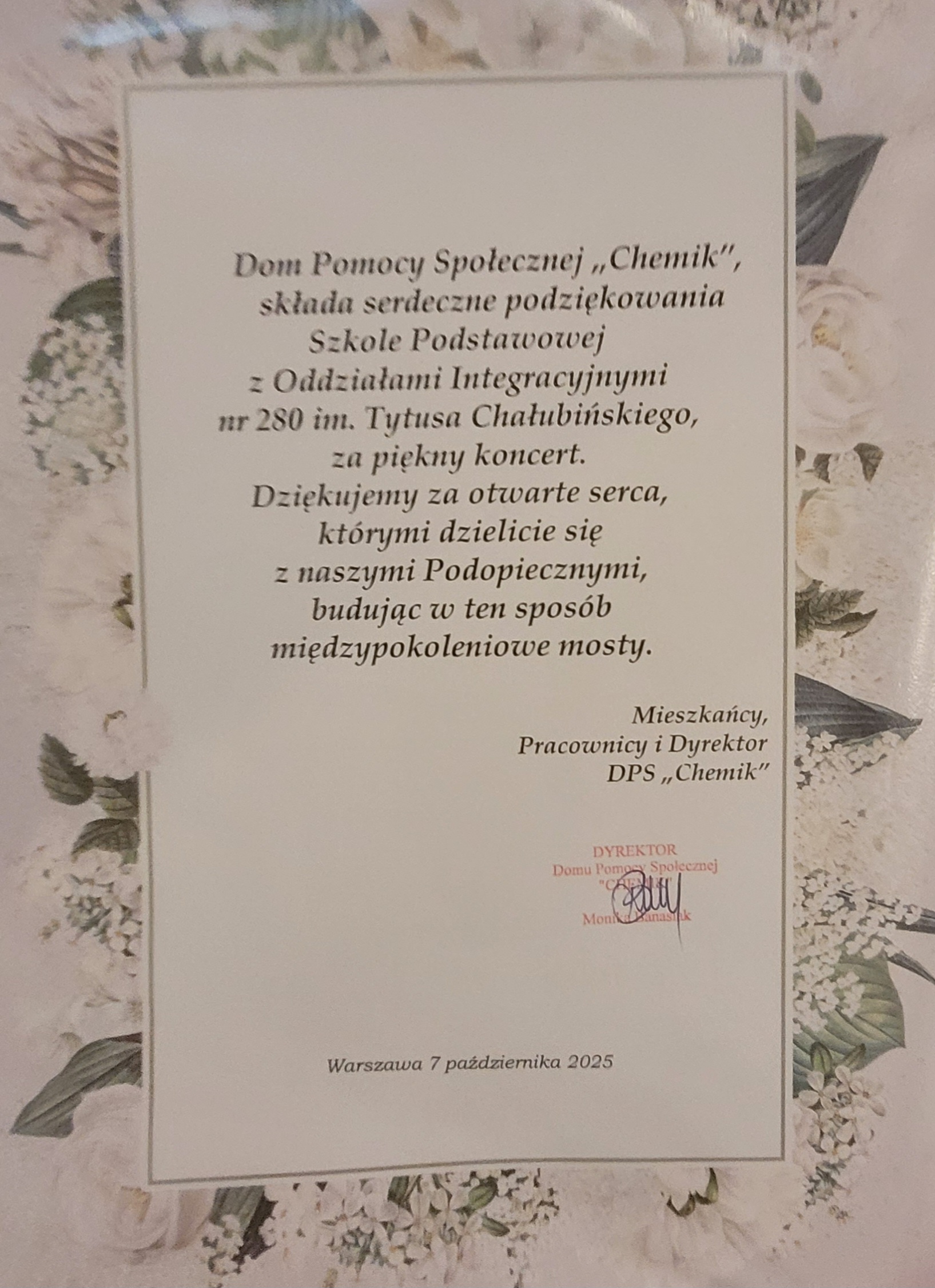 W dniu 7.10 w Domu Pomocy Społecznej Chemik odbył się koncert z okazji Dnia Osób Starszych.