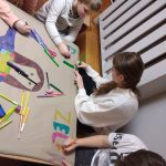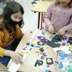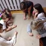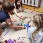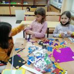 Na zajęciach wykonywały szelki z papieru pakowego . Były bardzo kreatywne.