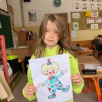 W k l 1C obchodziliśmy „Dzień szelek” . Oglądaliśmy klasyki kina niemego : Flip i Flap, Charlie Chaplin. Wykonaliśmy własnoręcznie szelki z papieru i kolorowaliśmy malowanki z postaciami w szelkach.