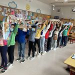 Klasa 3b z okazji Dnia Szelek przygotowała plakat i szelki z bibuły.