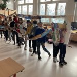 Klasa 2a. Z okazji Dnia Szelek, poznaliśmy ciekawe postacie ze świata filmu noszące tą część garderoby. Ze starych kalendarzy, papierów i folii wykonaliśmy eko- szelki gigantycznych rozmiarów.