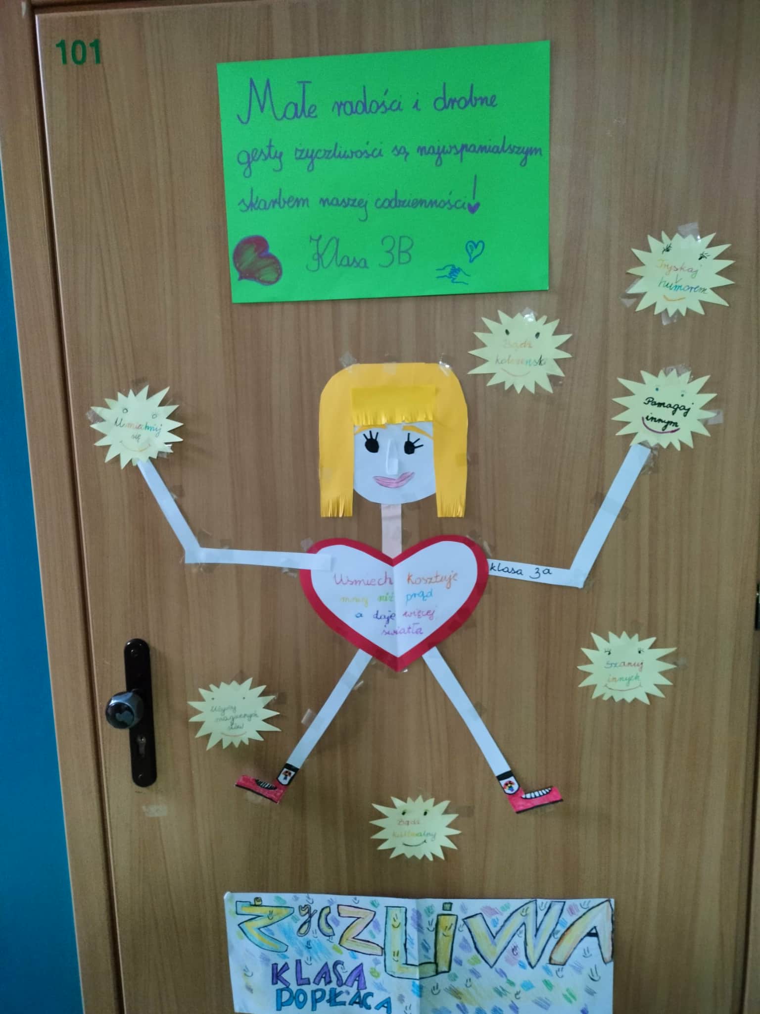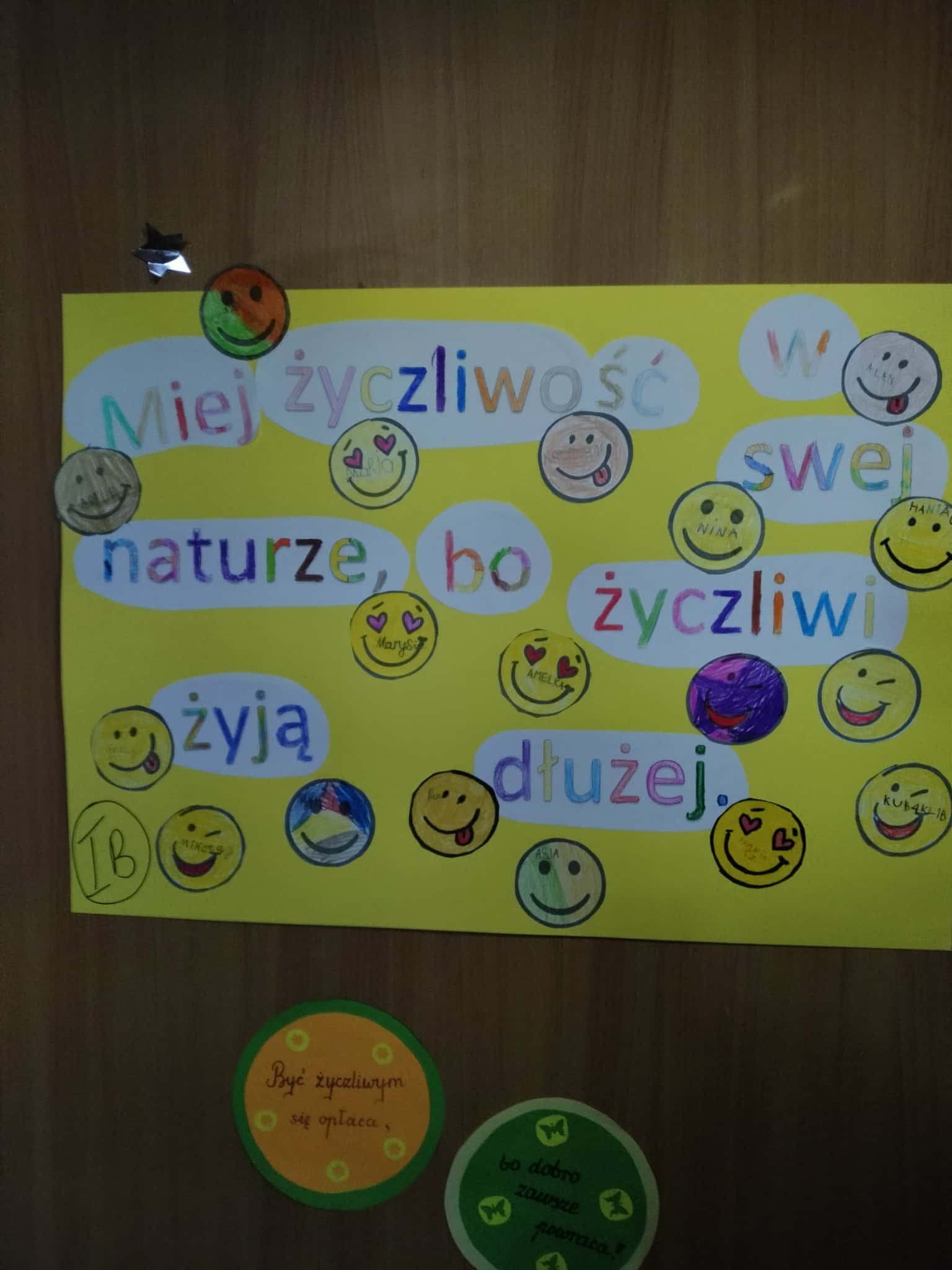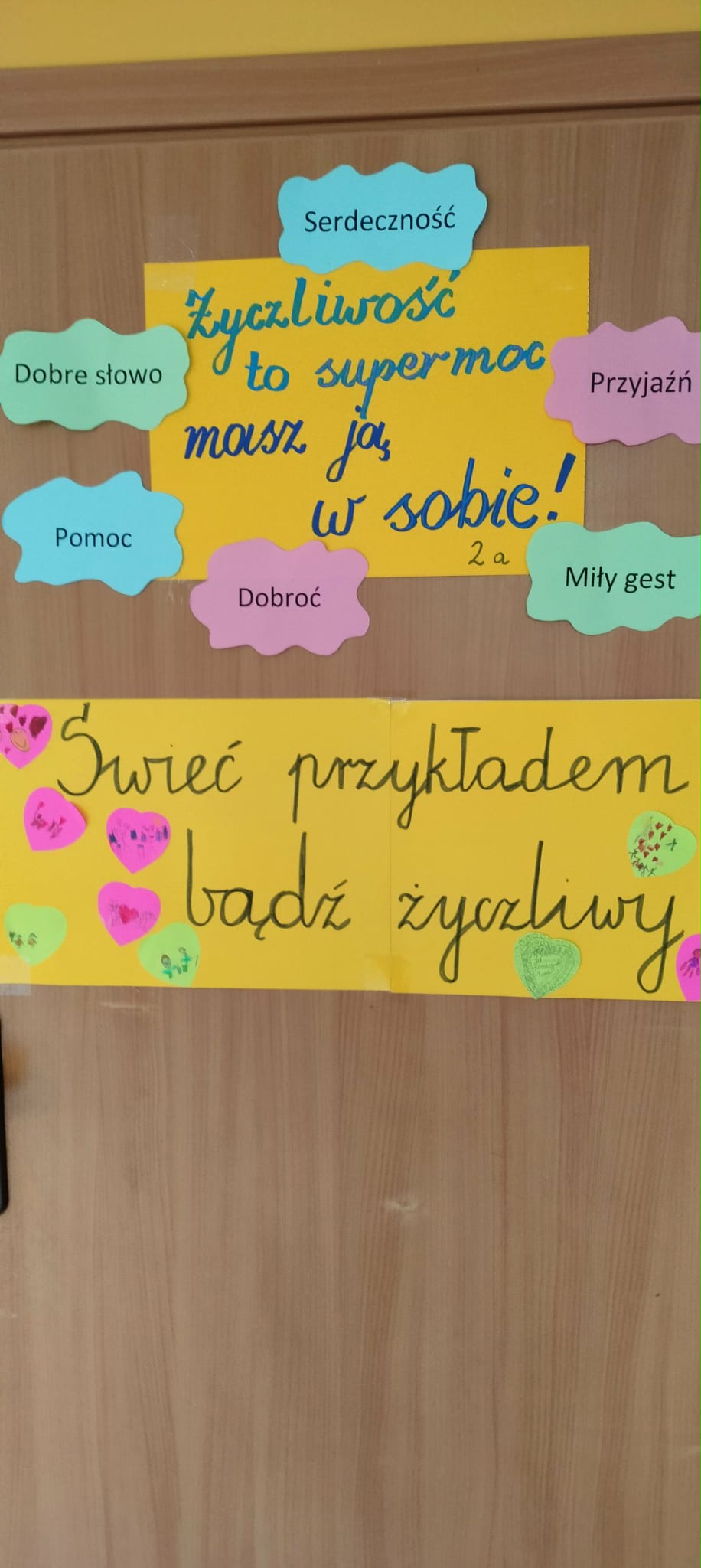 W ramach wydarzenia działała Poczta Życzliwości – uczniowie kl. 1-8 wrzucali do specjalnie przygotowanych pudełek kartki z miłymi słowami skierowanymi do koleżanek, kolegów oraz pracowników szkoły. Korytarze zostały ozdobione inspirującymi hasłami oraz kolorowymi „łańcuchami życzliwości” wykonanymi przez uczniów w świetlicy.