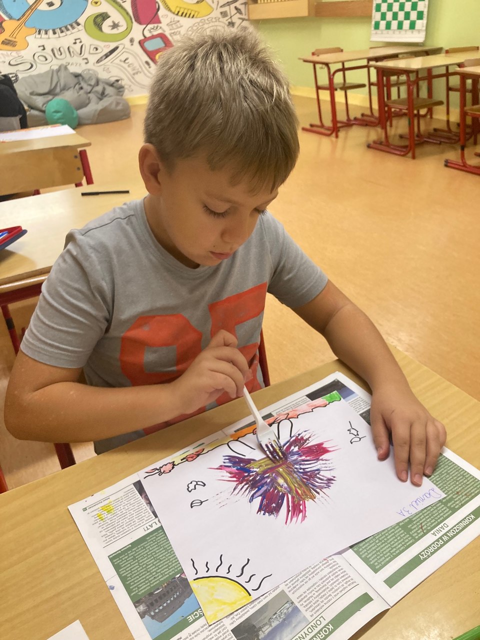 Kolorowe jeże? Czemu nie. A jeszcze gdy malujemy je plastikowymi, niepotrzebnymi widelcami i słomkami, to jesteśmy eko! I o to chodzi!