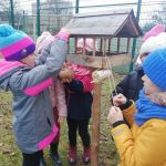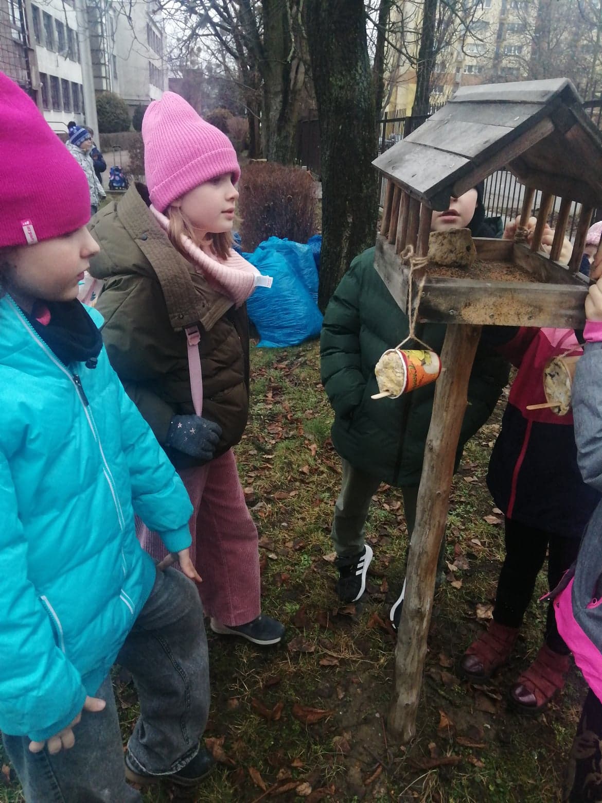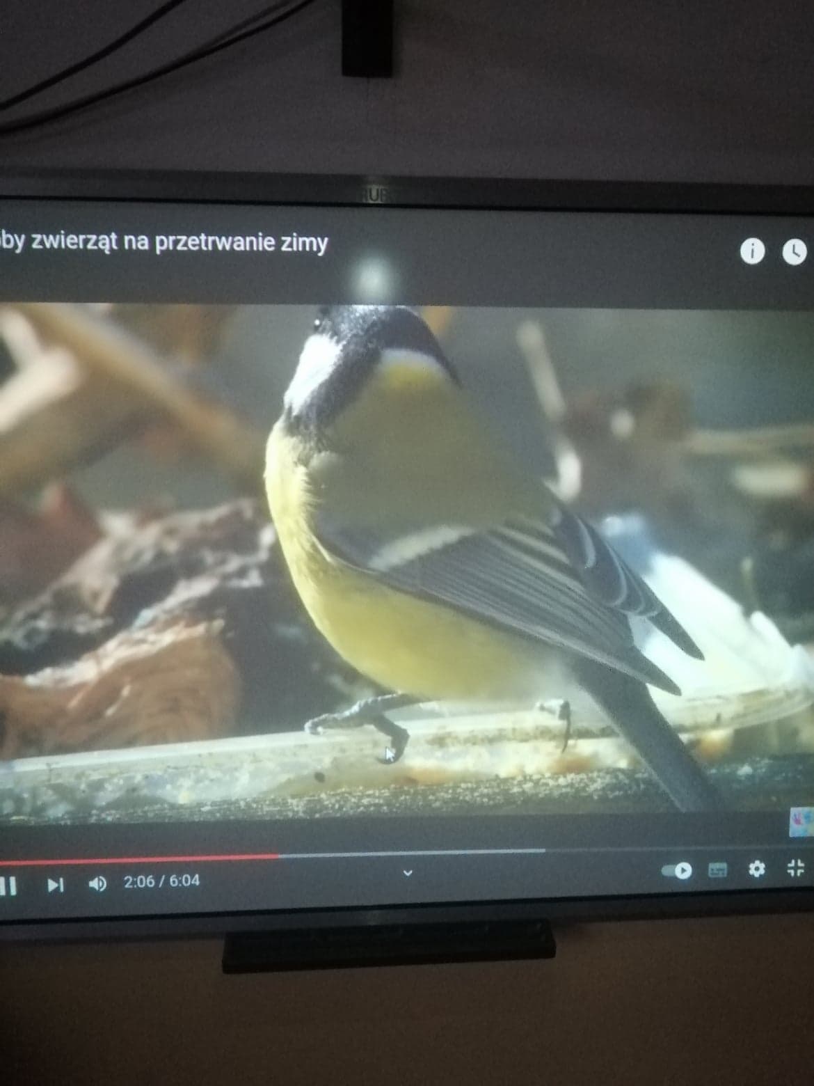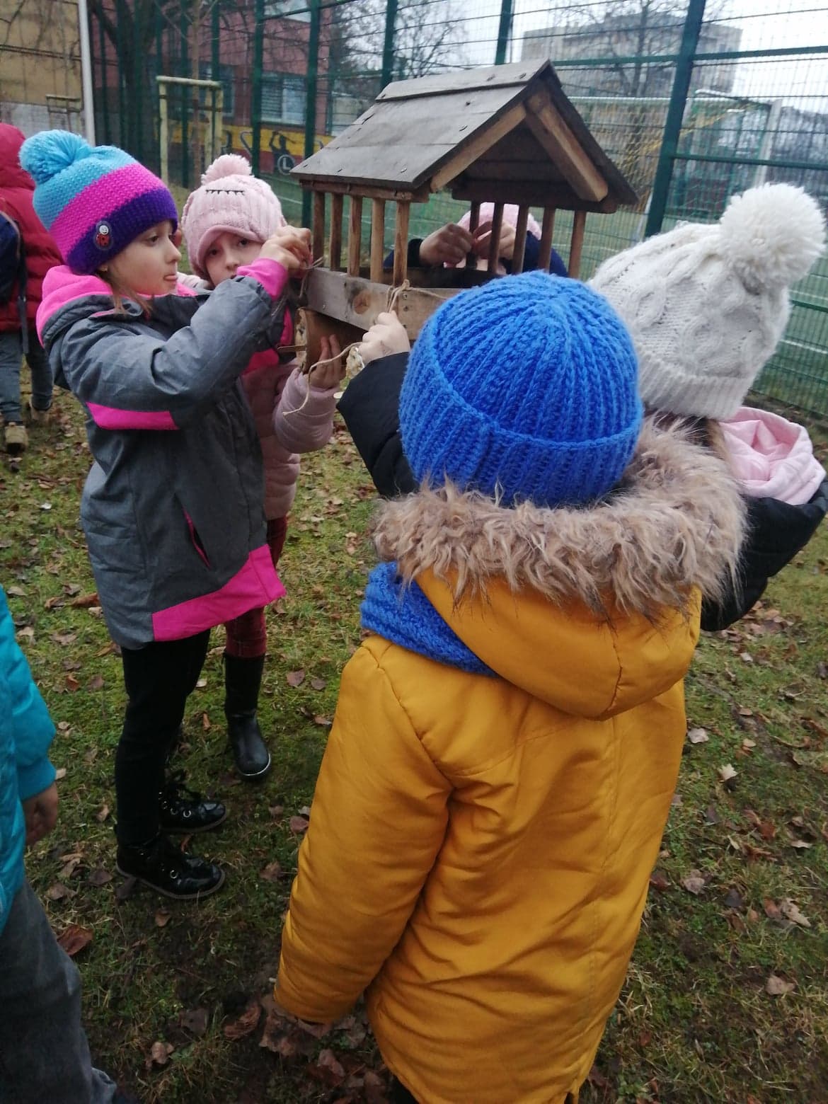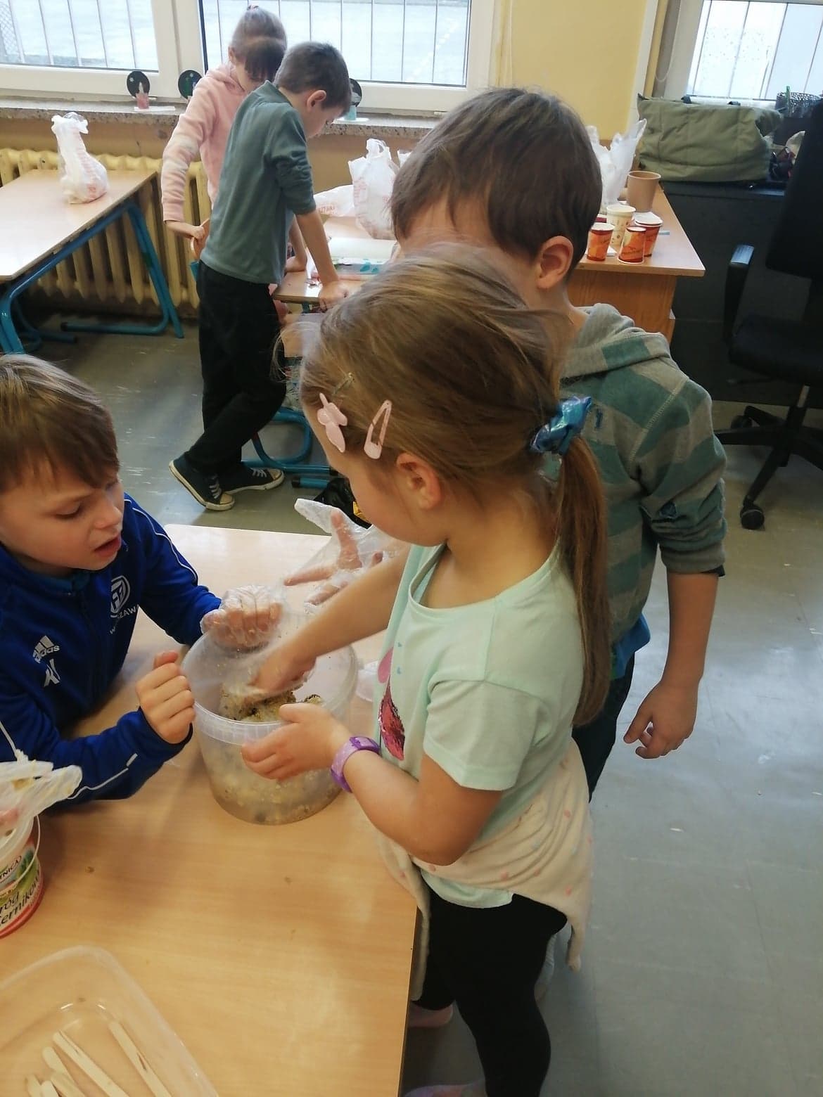 Eko Zima w 2b. Uczniowie skupili się na dokarmianiu ptaków zimą. Najpierw obejrzeli prezentację na temat „Zwierzęta zimą”, a potem wykonali ekologiczną karmę dla ptaków, wykonaną ze smalcu, żurawiny, słonecznika i kaszy jaglanej. Karma zawisła na karmniku, którym uczniowie opiekują się od pierwszej klasy.