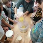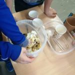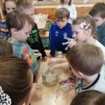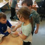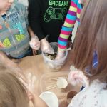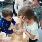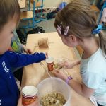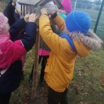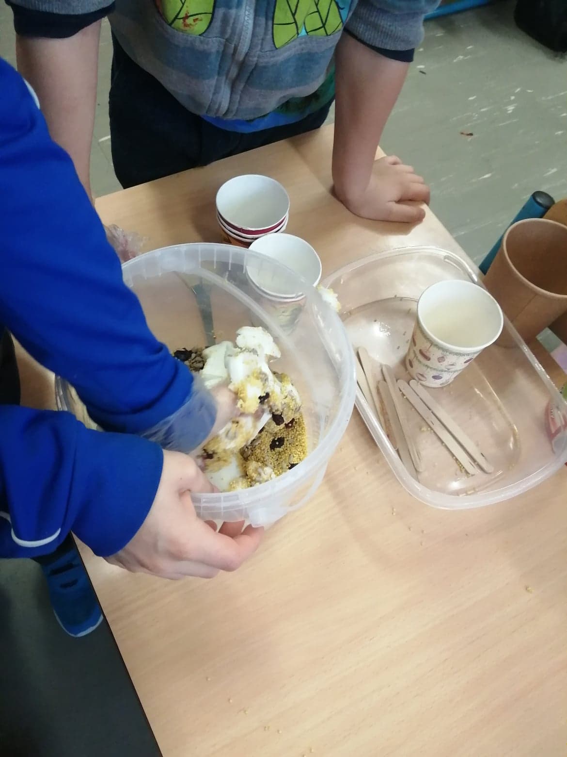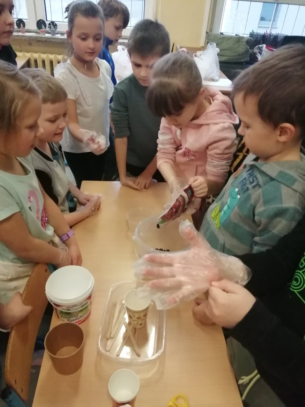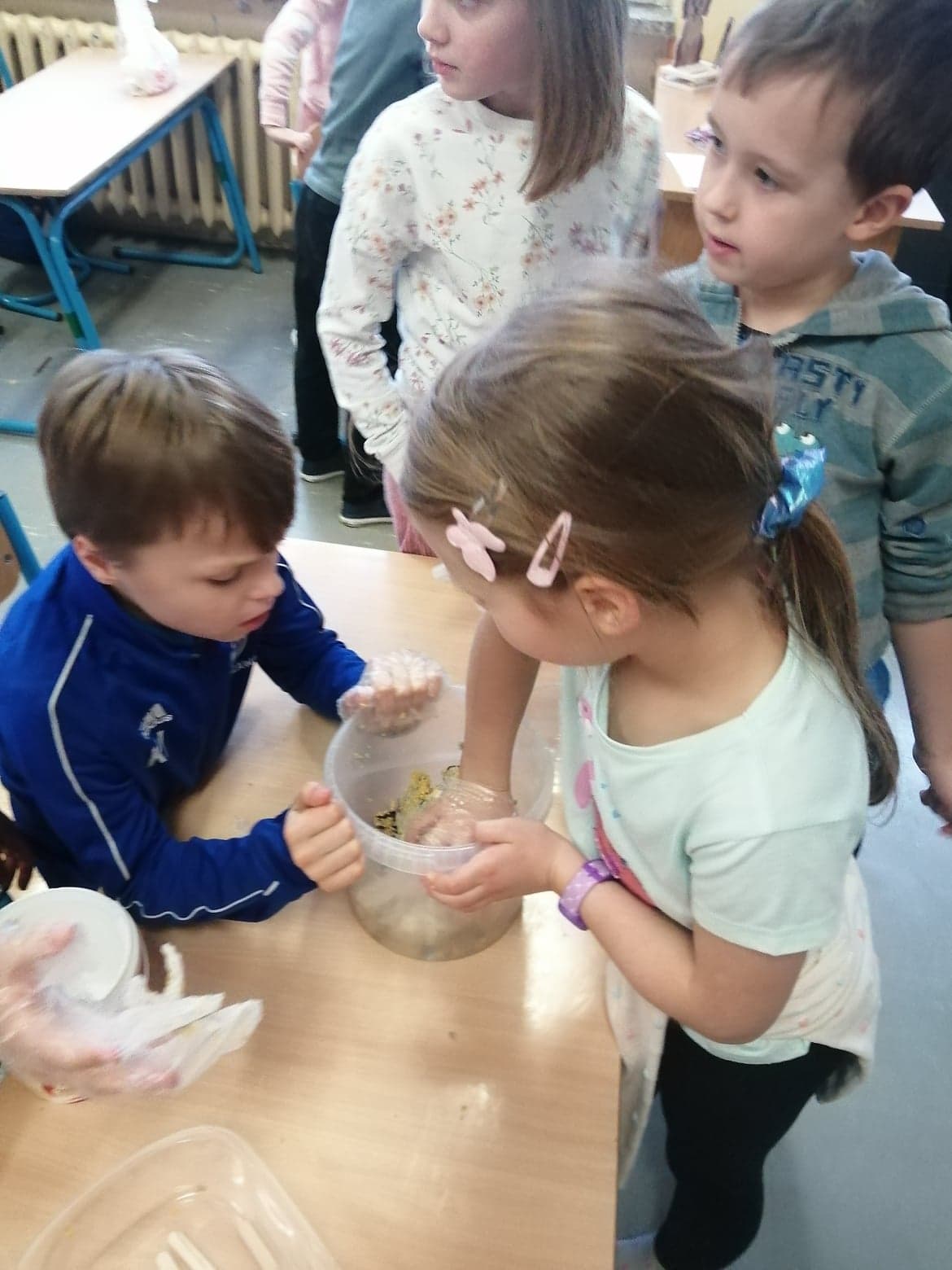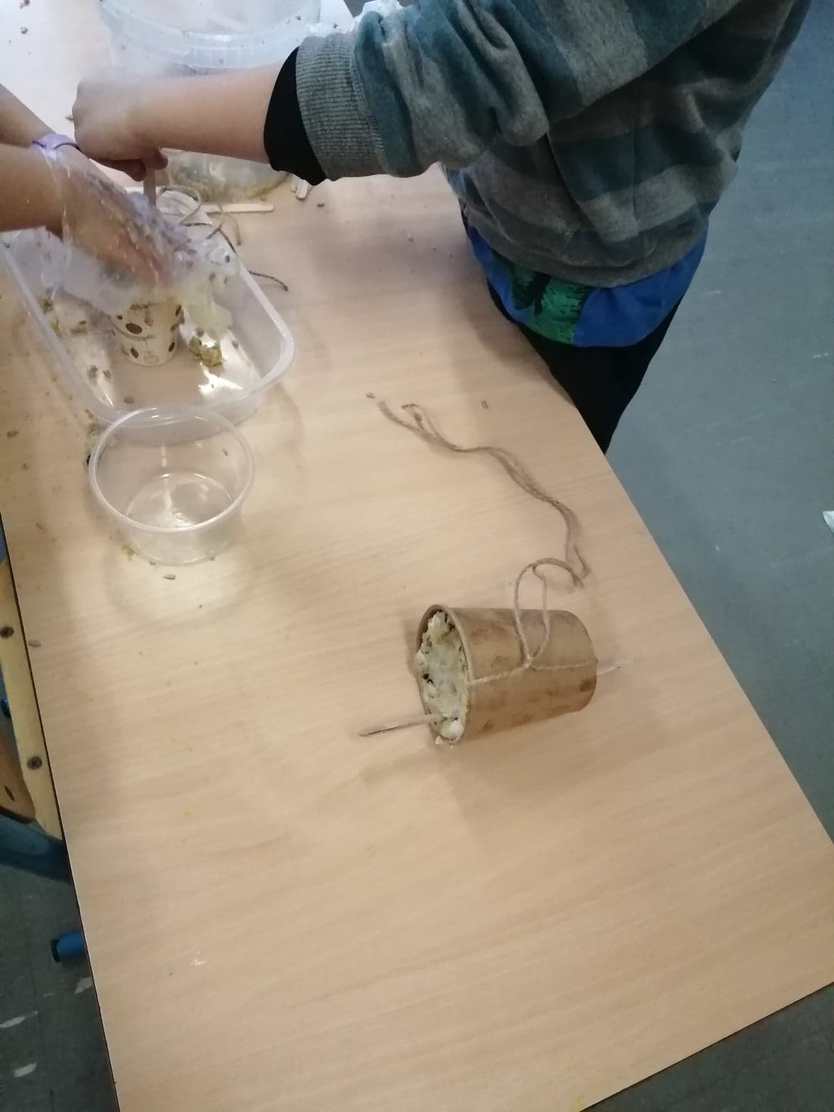 Eko Zima w 2b. Uczniowie skupili się na dokarmianiu ptaków zimą. Najpierw obejrzeli prezentację na temat „Zwierzęta zimą”, a potem wykonali ekologiczną karmę dla ptaków, wykonaną ze smalcu, żurawiny, słonecznika i kaszy jaglanej. Karma zawisła na karmniku, którym uczniowie opiekują się od pierwszej klasy.