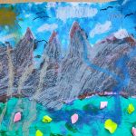 Pejzaż górski w wykonaniu uczniów 1c i dziewczynek z 4B i 4c.