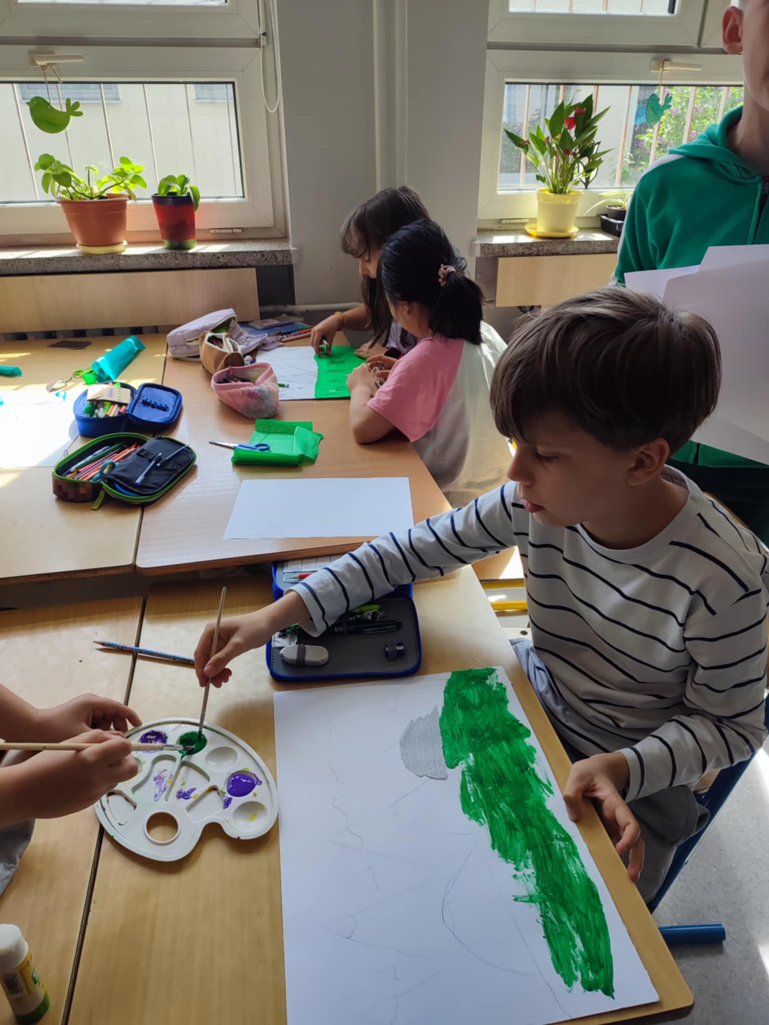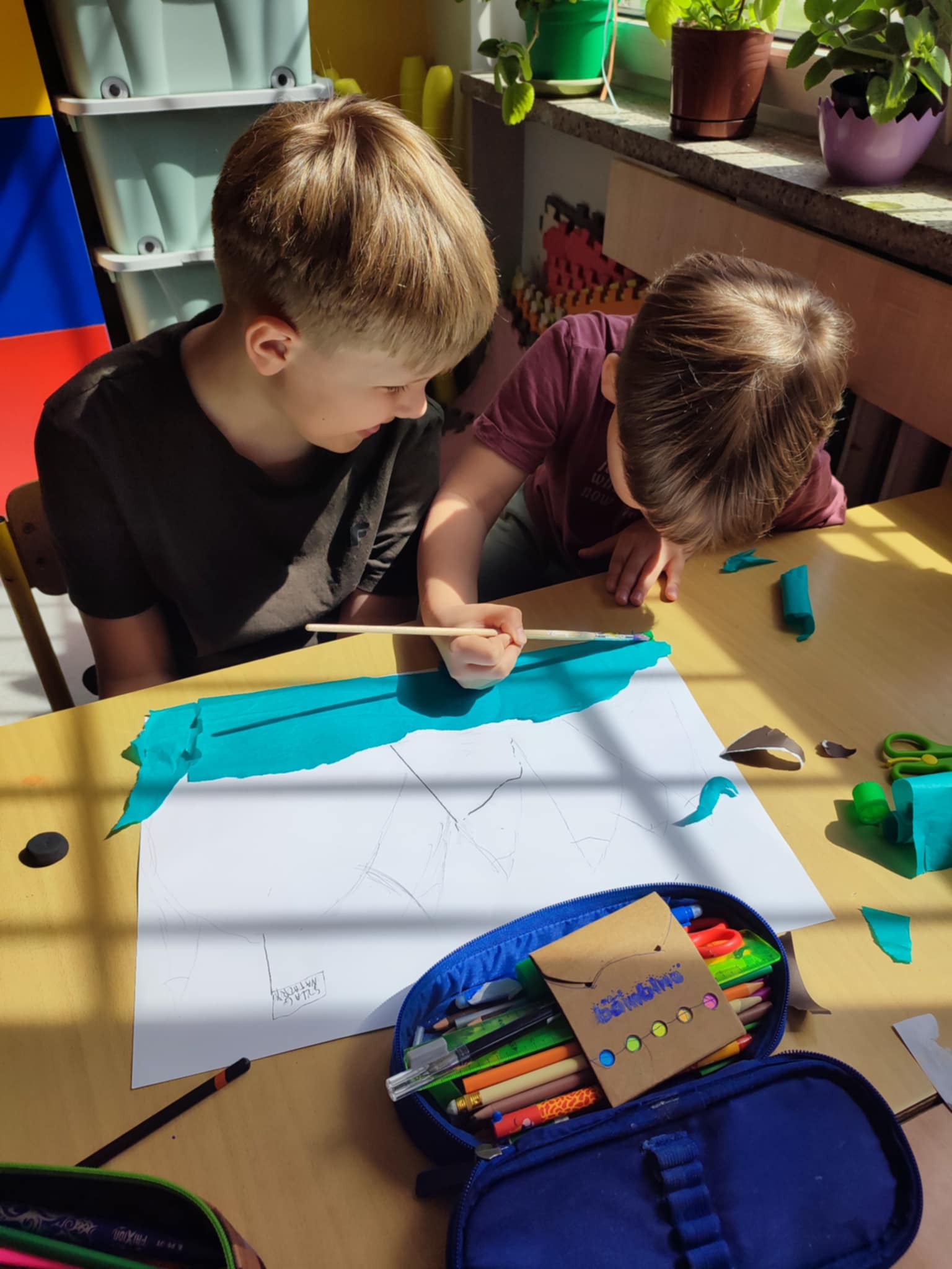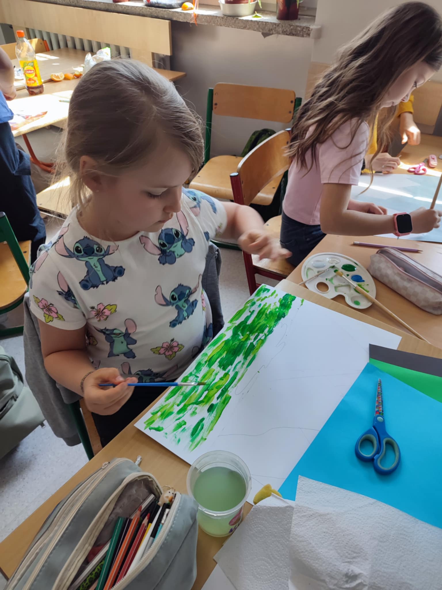 Uczniowie klasy 1a wybrali się w wyjątkową podróż – tym razem nie wędrowali szlakiem, lecz wyobraźnią i pastelami. Zainspirowani piosenką „Hej górol, Ci ja górol!” stworzyli przepiękne krajobrazy górskie, pełne barw, przestrzeni i uroku natury. Ich prace zachwycają różnorodnością i pomysłowością – można w nich dostrzec strome szczyty, zielone doliny oraz pasące się zwierzęta.