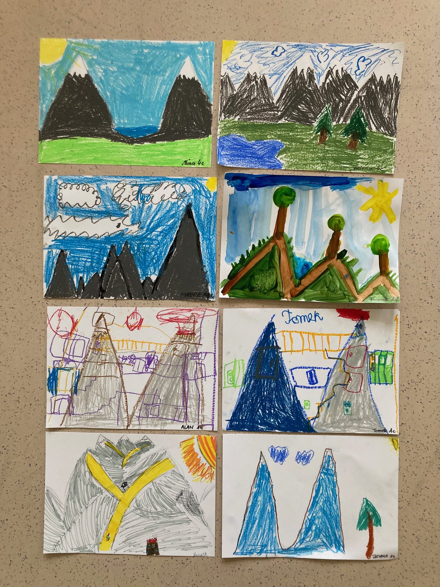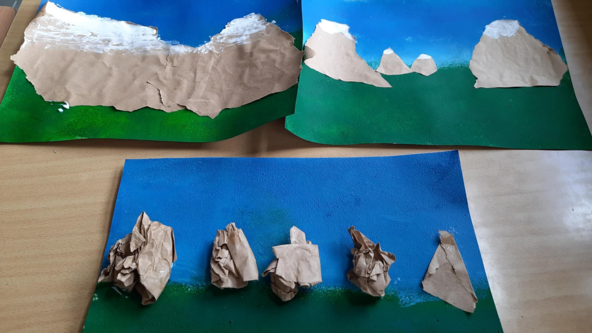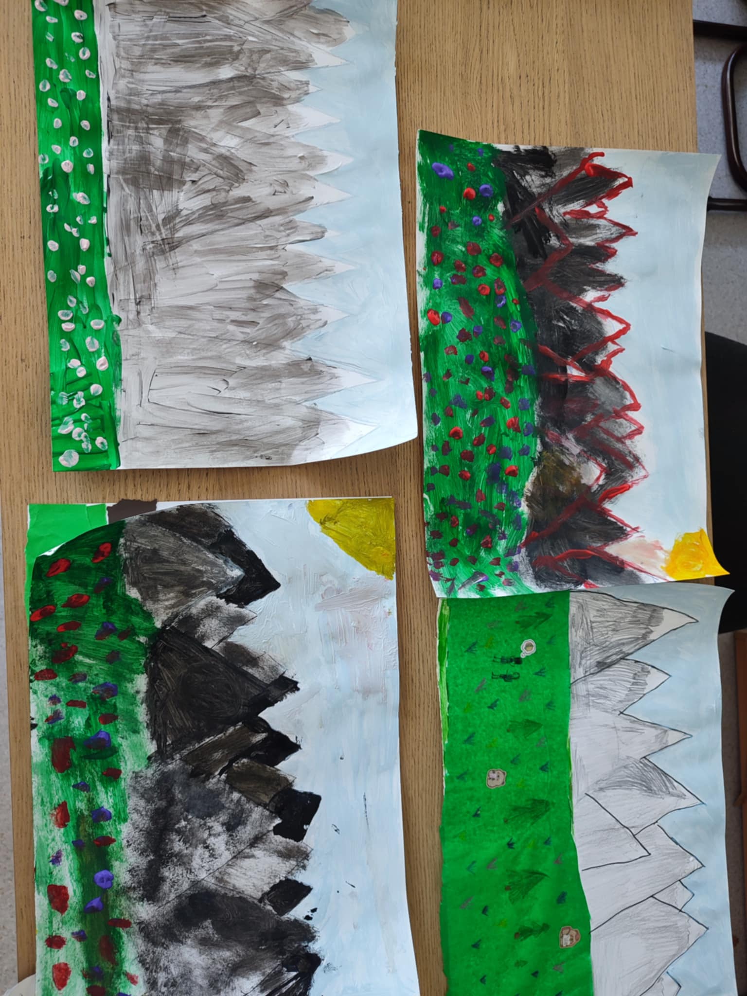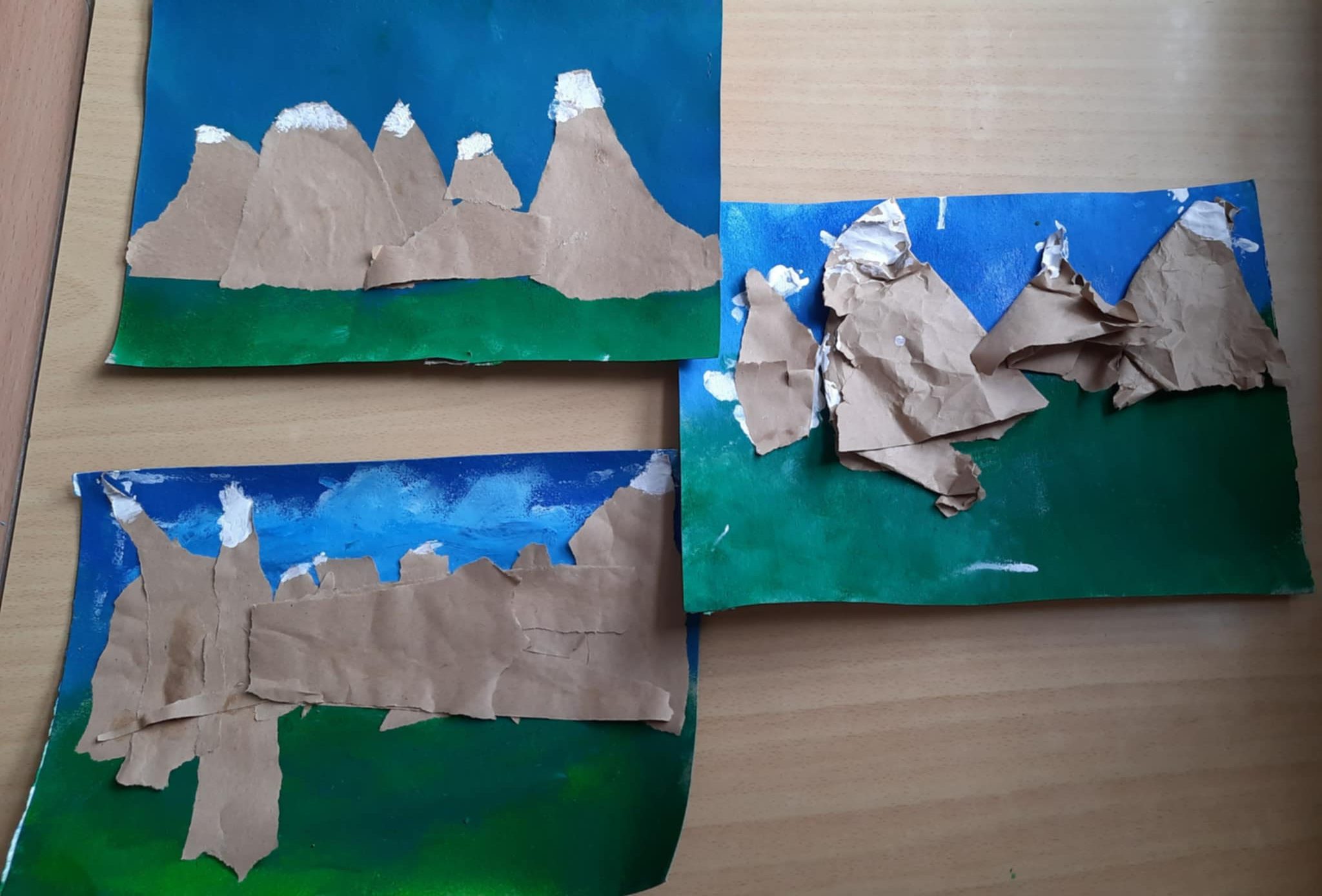 Podczas zajęć dzieci wykonały pejzaże gór.