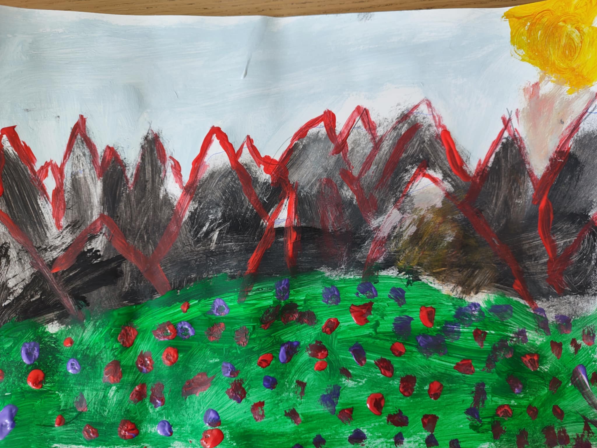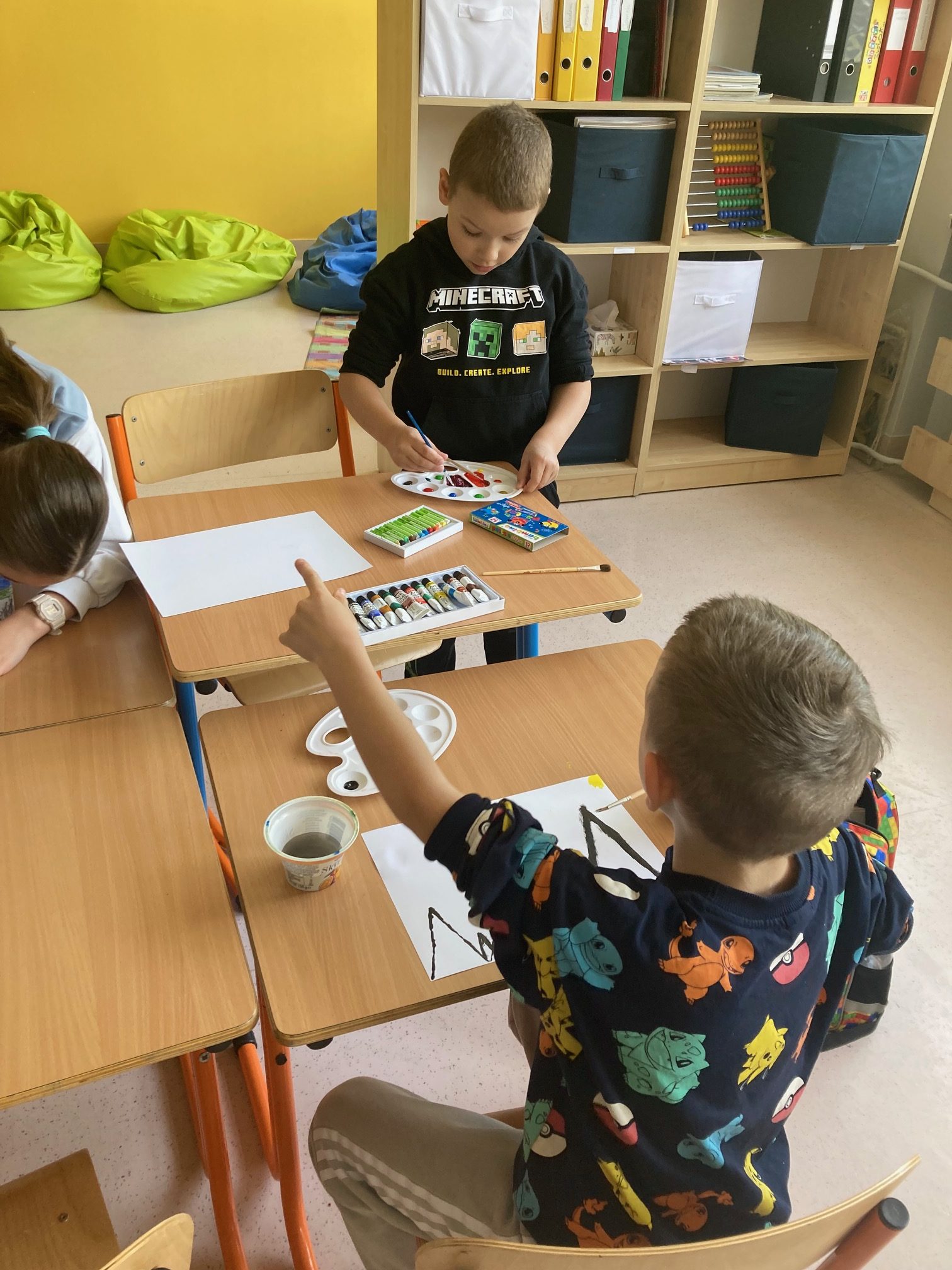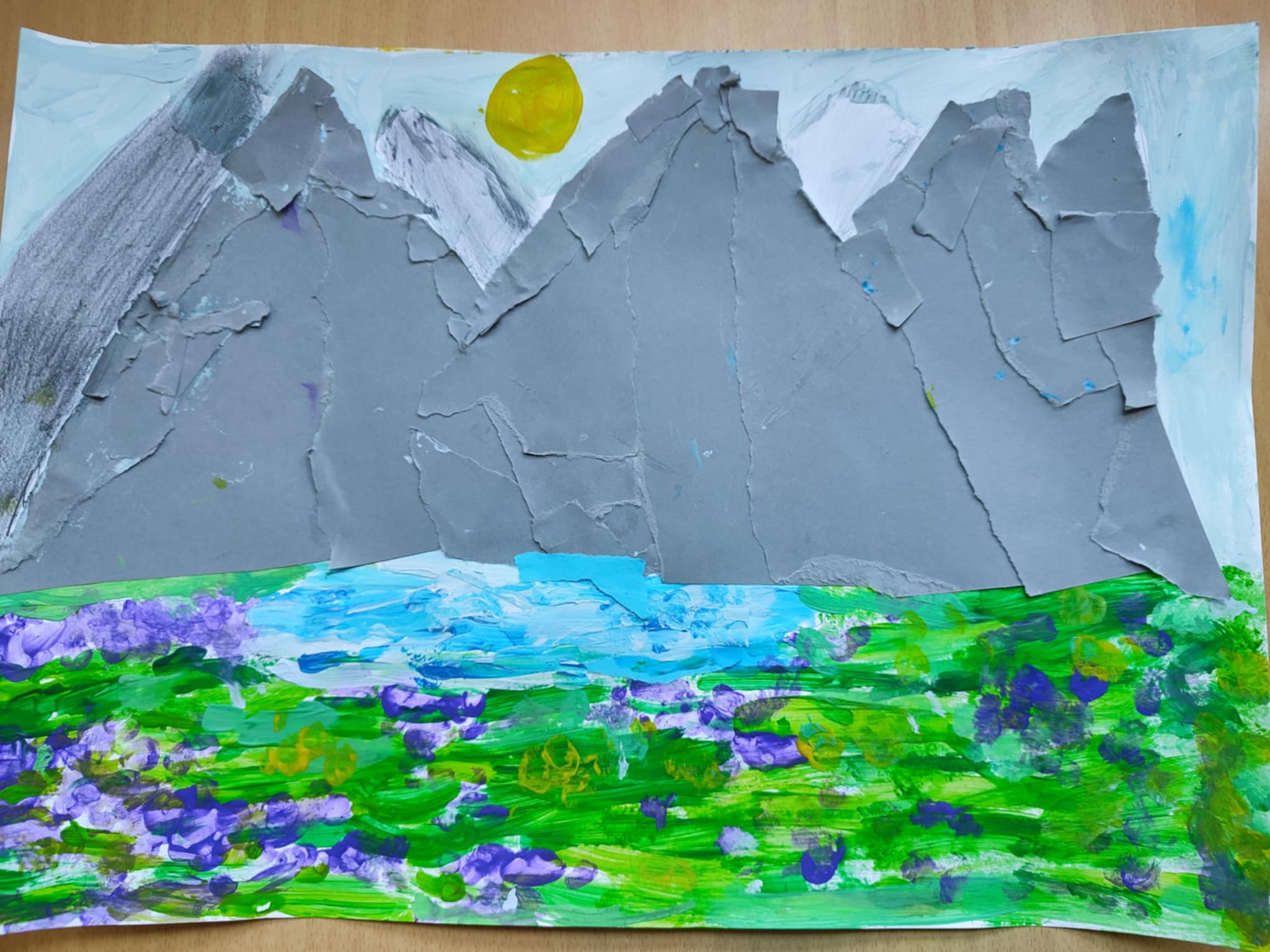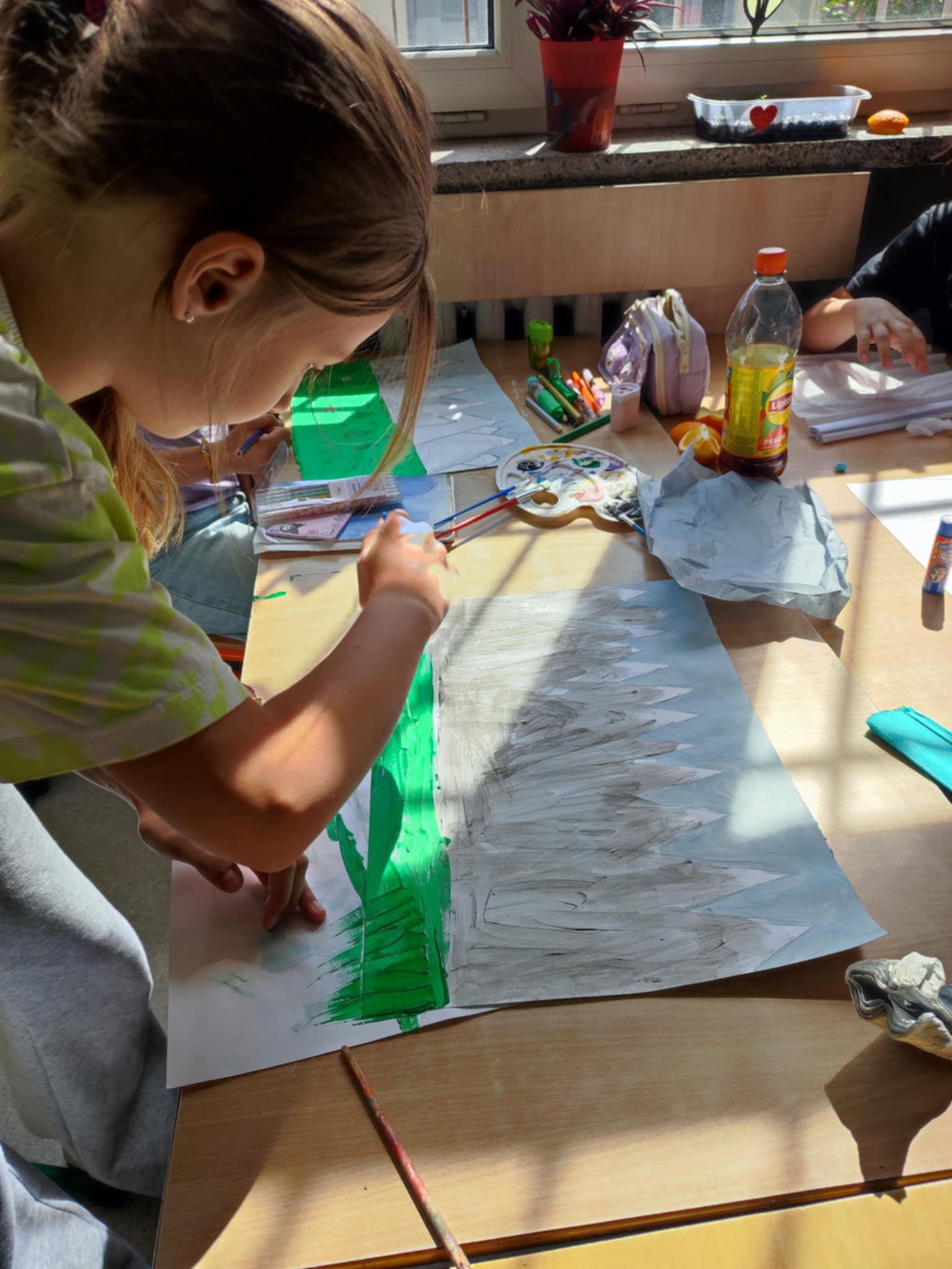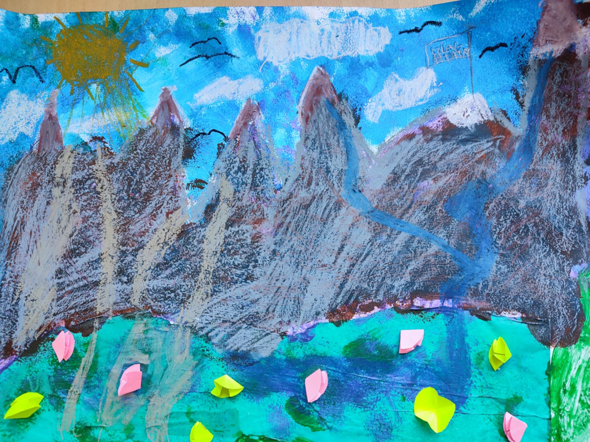 Podczas zajęć dzieci wykonały pejzaże gór.