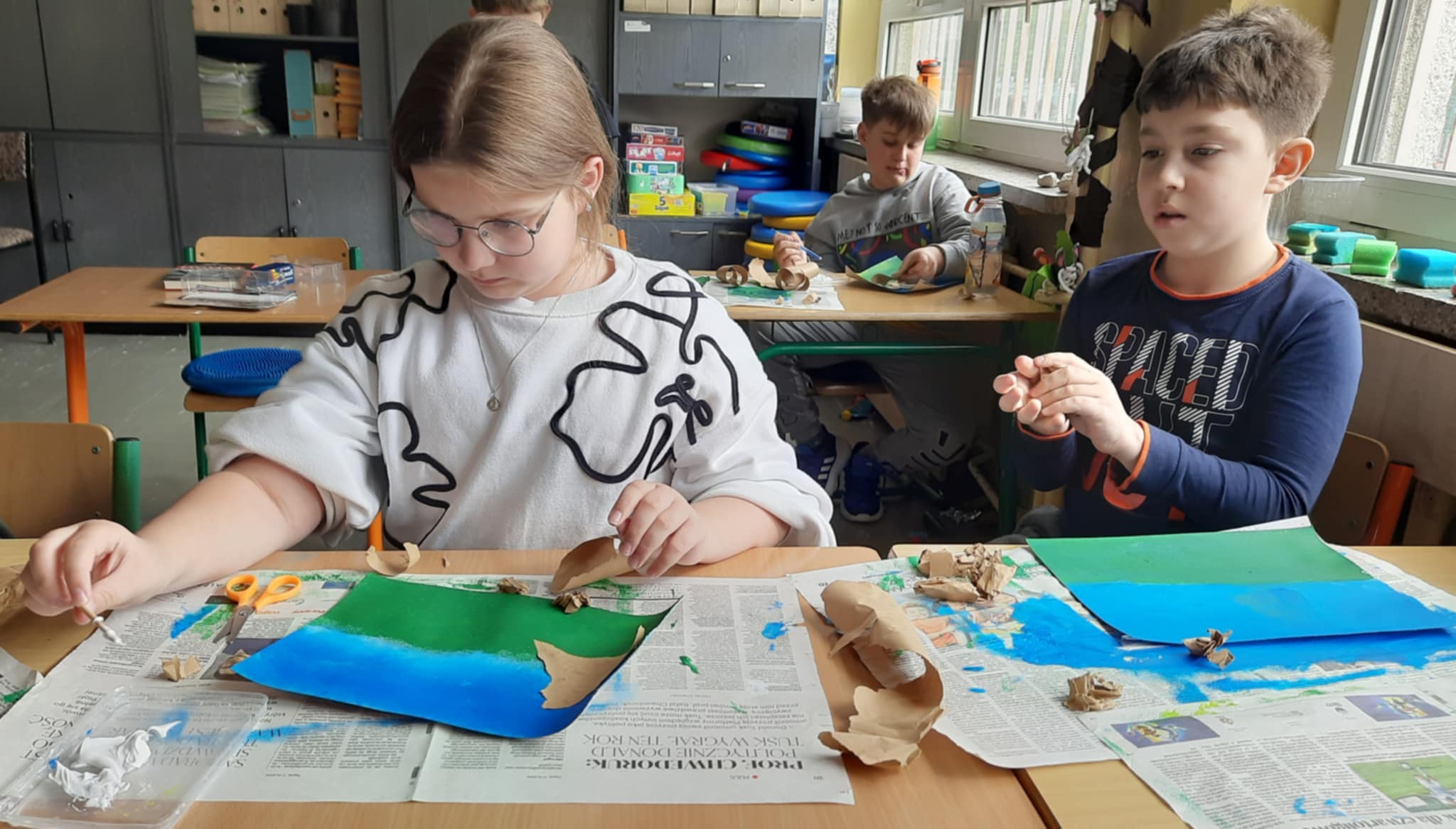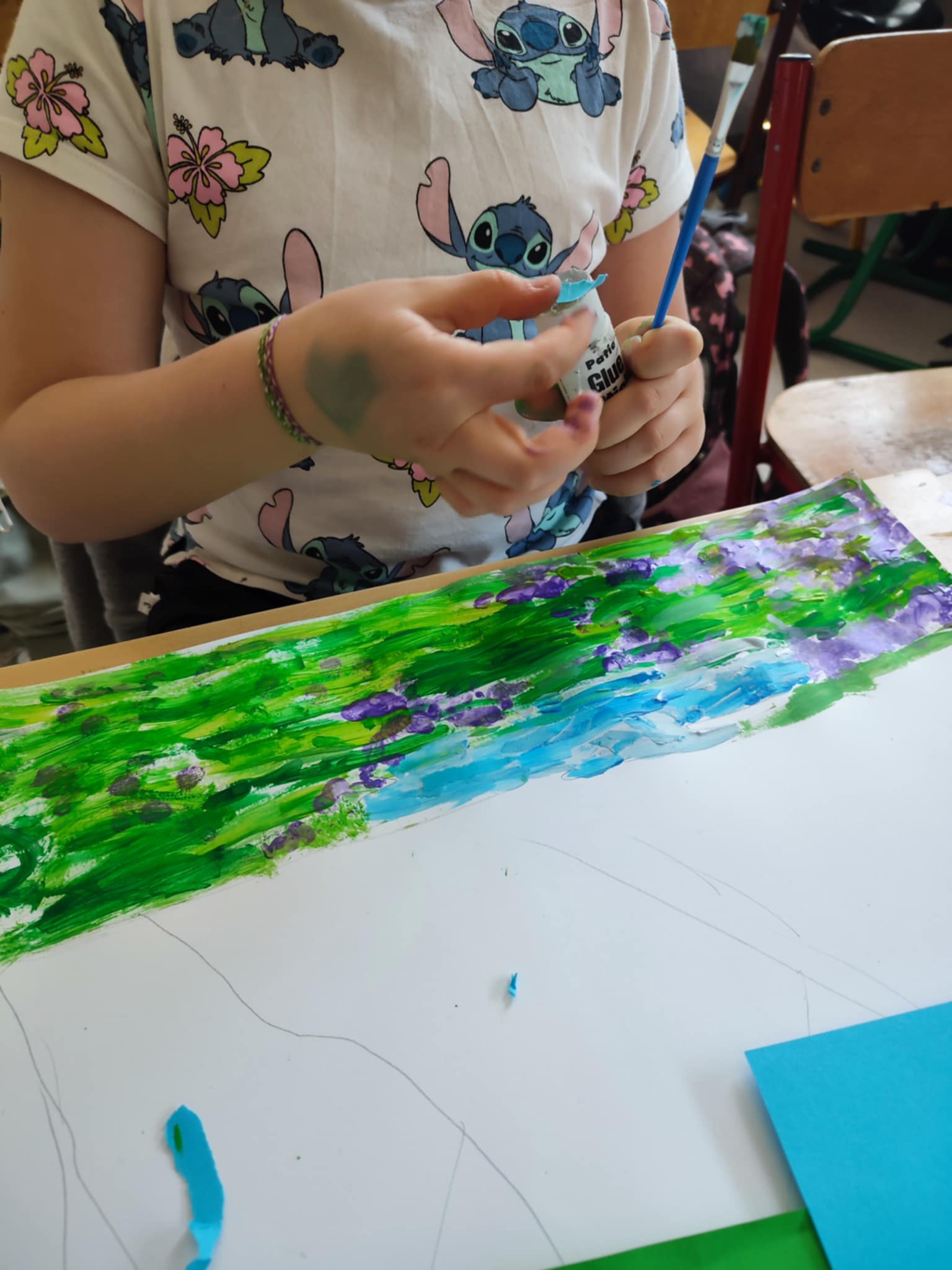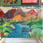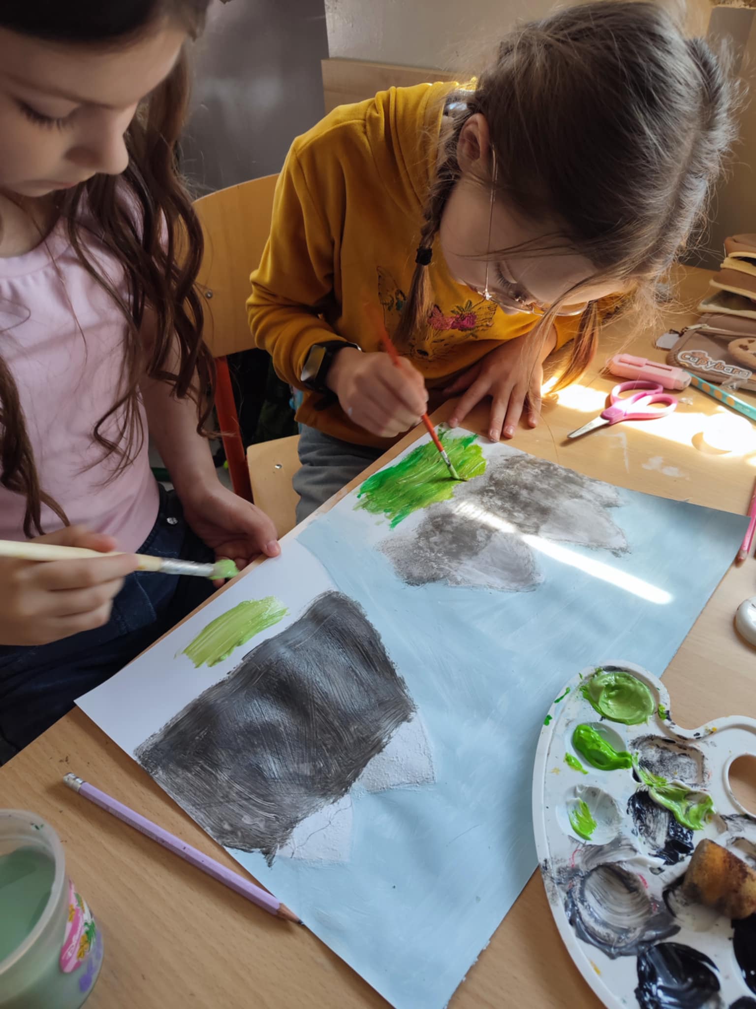 Pejzaż górski w wykonaniu uczniów 1c i dziewczynek z 4B i 4c.