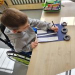 Podczas zajęć uczniowie utrwalali wiadomości o porach roku i charakterystycznych barwach jesieni, rozwijali sprawność manualną oraz kreatywność.