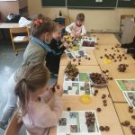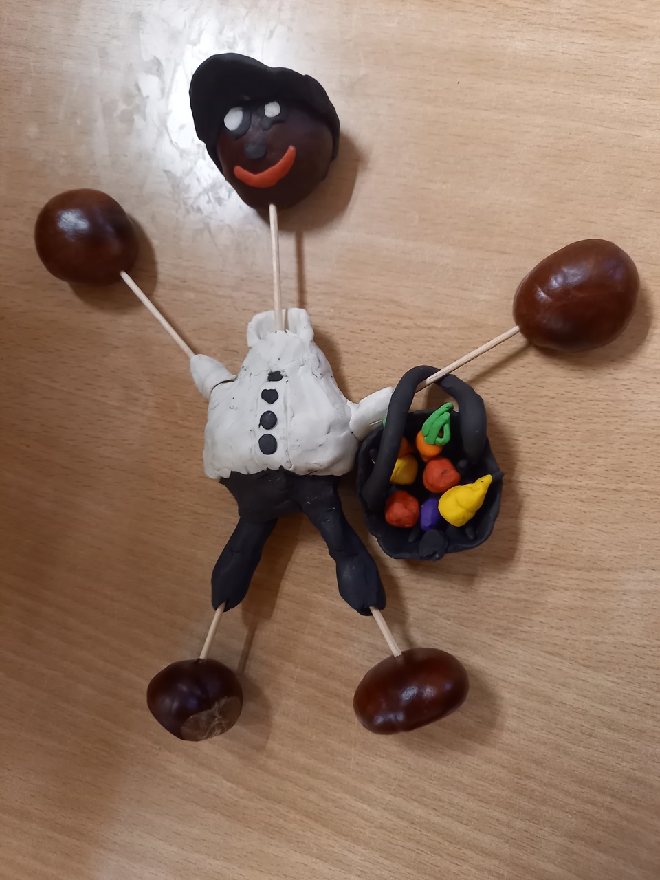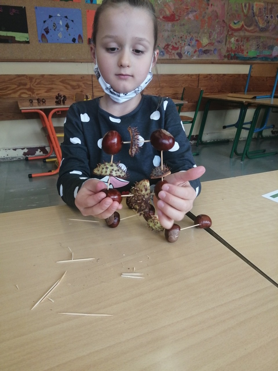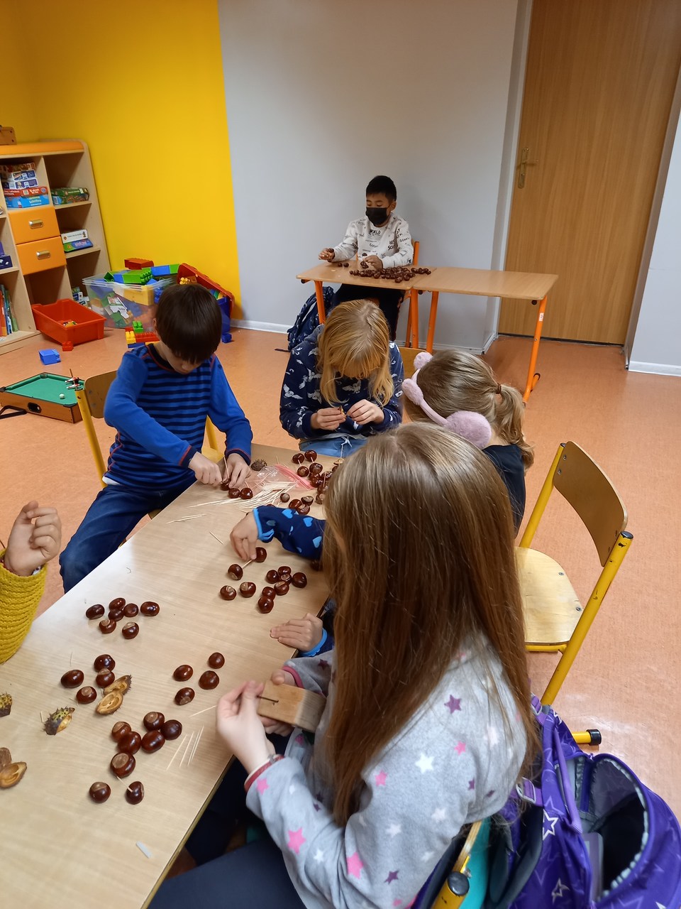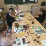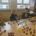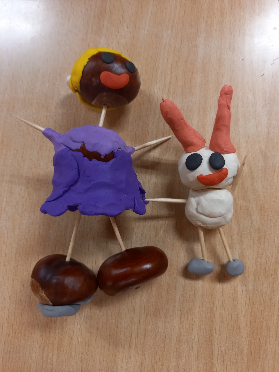 Uczniowie z dużym zaangażowaniem i według własnych pomysłów, tworzyli postacie, zwierzęta i przedmioty z kasztanów, wykałaczek i plasteliny. Kasztany zbierali wspólnie na terenie szkoły.