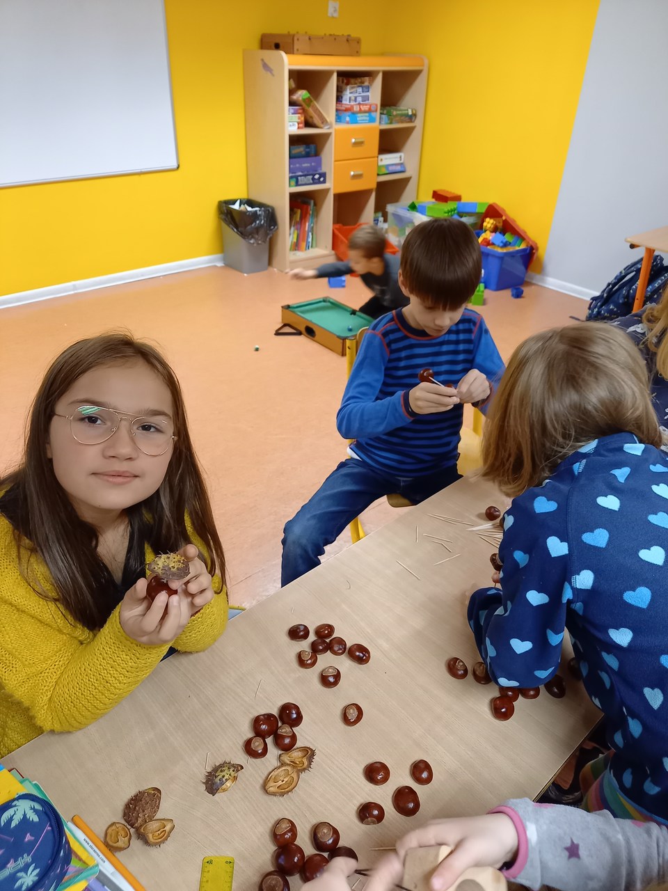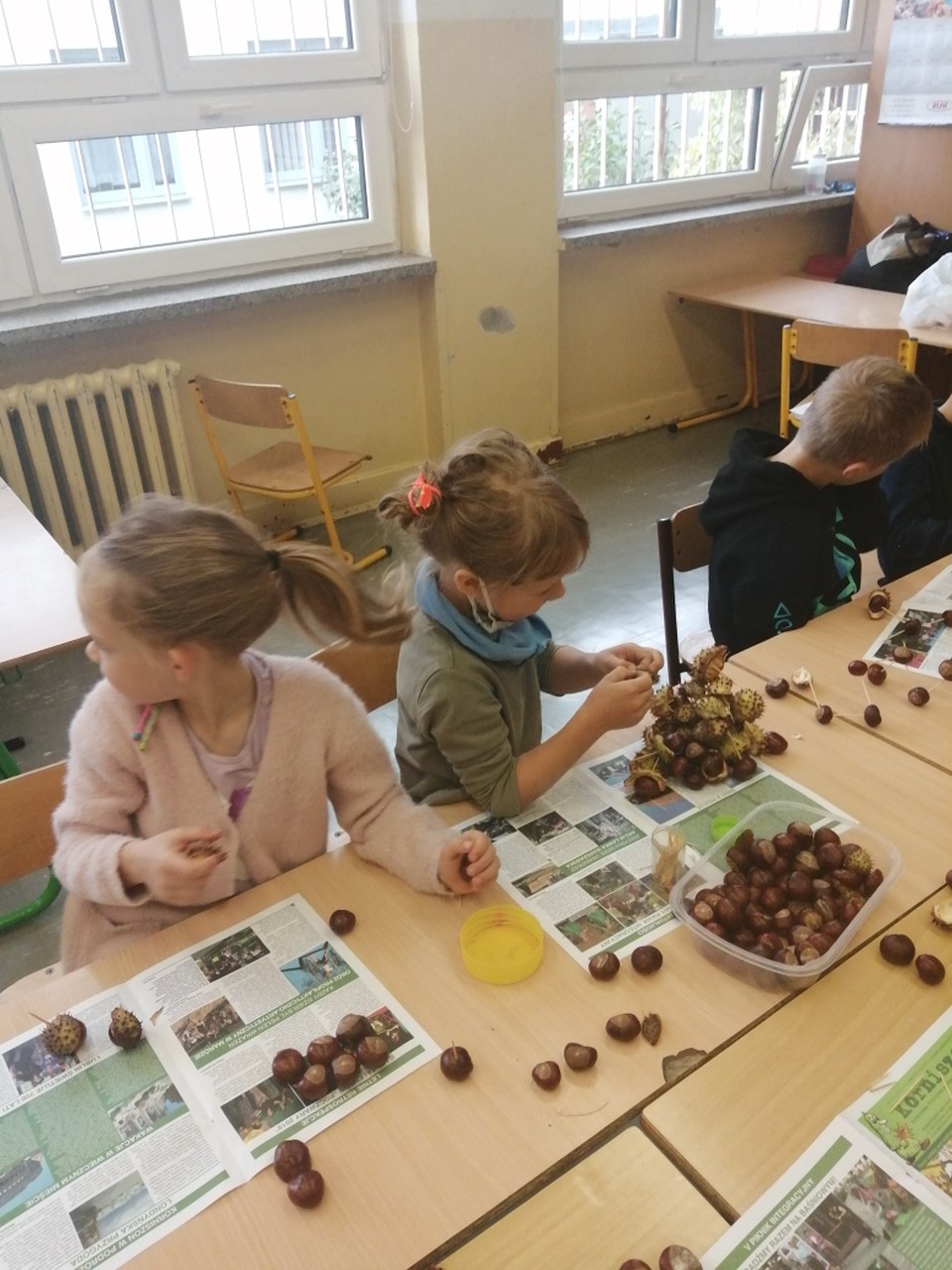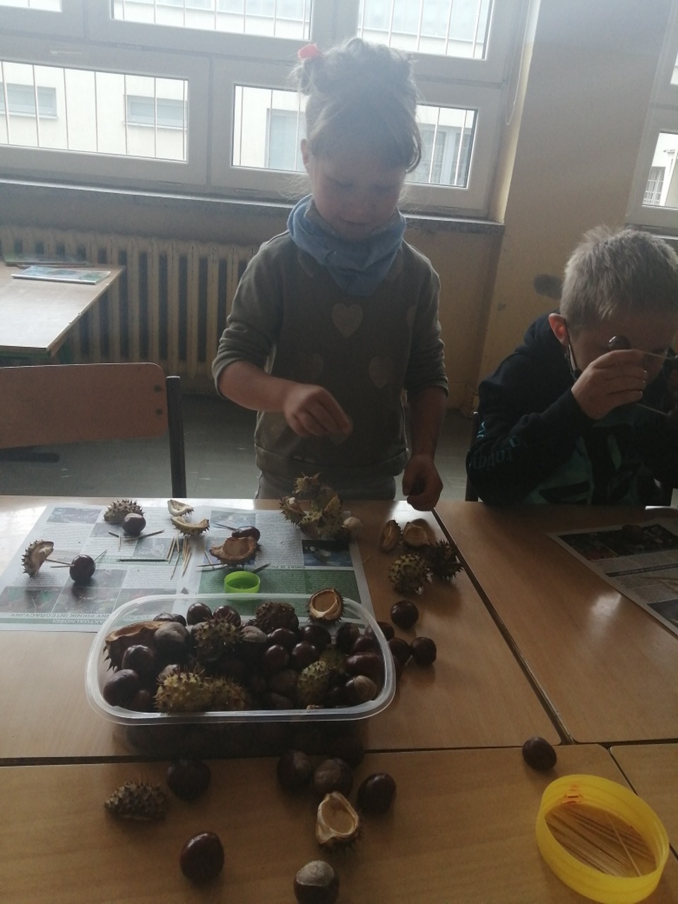 W tym tygodniu w klasie 1b i 2b odbyły się zajęcia z wykorzystaniem pięknych darów jesieni, jakimi są kasztany.