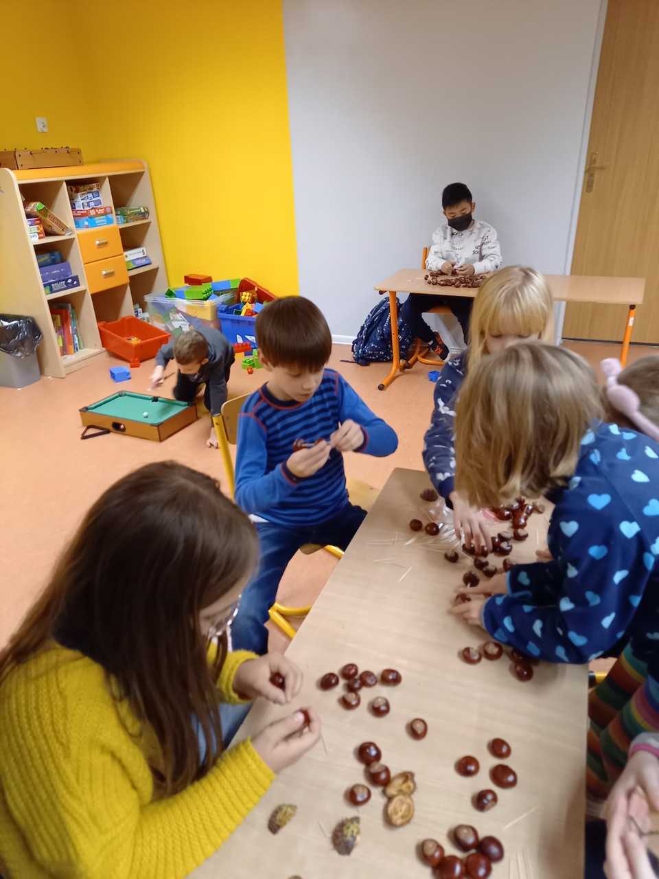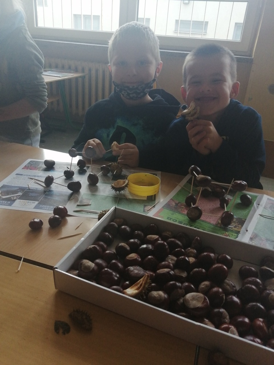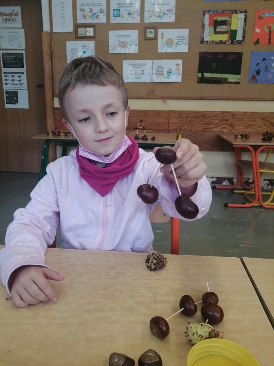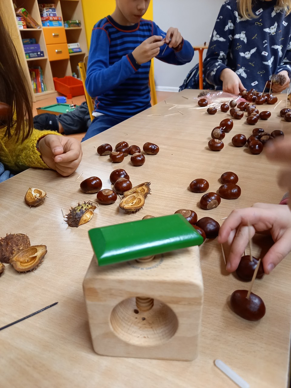 W tym tygodniu w klasie 1b i 2b odbyły się zajęcia z wykorzystaniem pięknych darów jesieni, jakimi są kasztany.