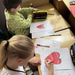 Uczniowie 3 b pamiętają o swoich Mamach. Wykonali serca dosyć pracochłonna technika. Najpierw narysowali serca w odpowiedni sposób, a potem starannie kolorowali.