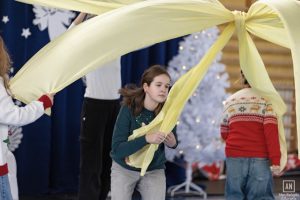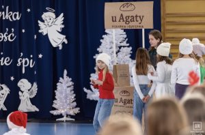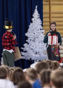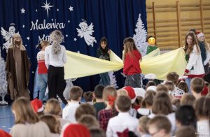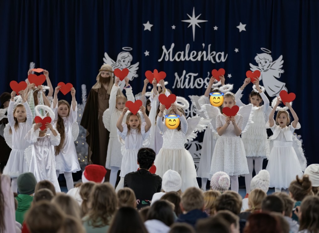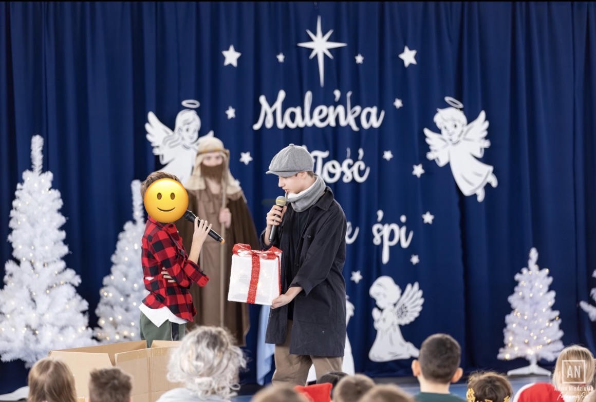 Nasi szkolni aktorzy opowiedzieli historię tajemniczego prezentu, który przemienia ludzkie serca. Była to opowieść o miłości i o tym, co dzieje się, gdy zaczynamy dzielić się nią z innymi. W wydarzeniu wzięli liczny i chętny udział uczniowie klas 1-8, co nadało przedstawieniu szczególny wymiar wspólnoty.