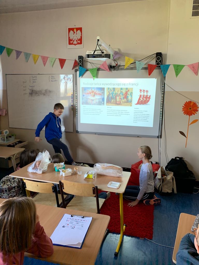 Podczas obchodów Międzynarodowego Dnia Języków Obcych w naszej szkole, każda klasa wylosowała jeden kraj, o którym miała przedstawić prezentację oraz zrobić plakat. Nasza klasa wylosowała Francję, a oprócz wspomnianej prezentacji i plakatu, zagościły u nas croissanty, bagietki i różne rodzaje serów do degustacji. Mniam! Zobaczcie sami jak wyglądały te zajęcia w naszym wykonaniu.