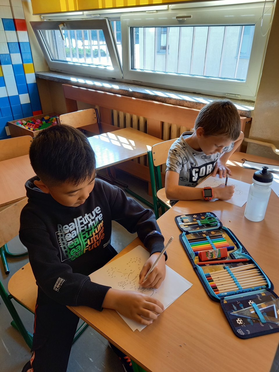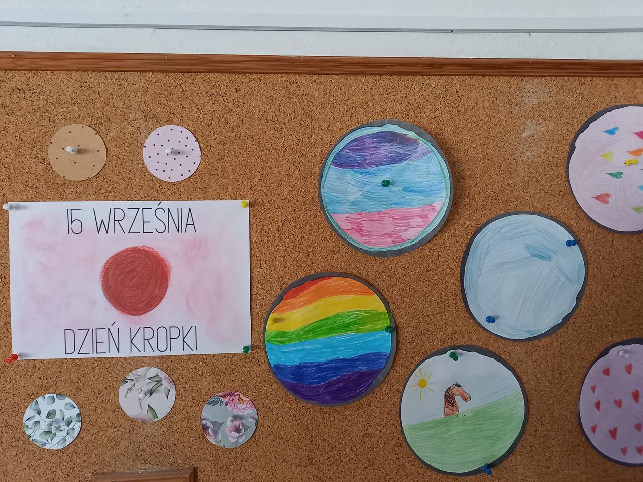 Klasa IIb, na pamiątkę pierwszej kropki Vashti, świętowała Międzynarodowy Dzień Kropki w świetlicy. Okazało się, że w naszym otoczeniu jest mnóstwo kropek różnego rodzaju, a dzieci bez problemu potrafią je znaleźć. Kropka była dla nas punktem wyjścia do powstania ciekawych prac. Uczniowie stworzyli też swoje własne kropki, które zostały umieszczone na tablicy.