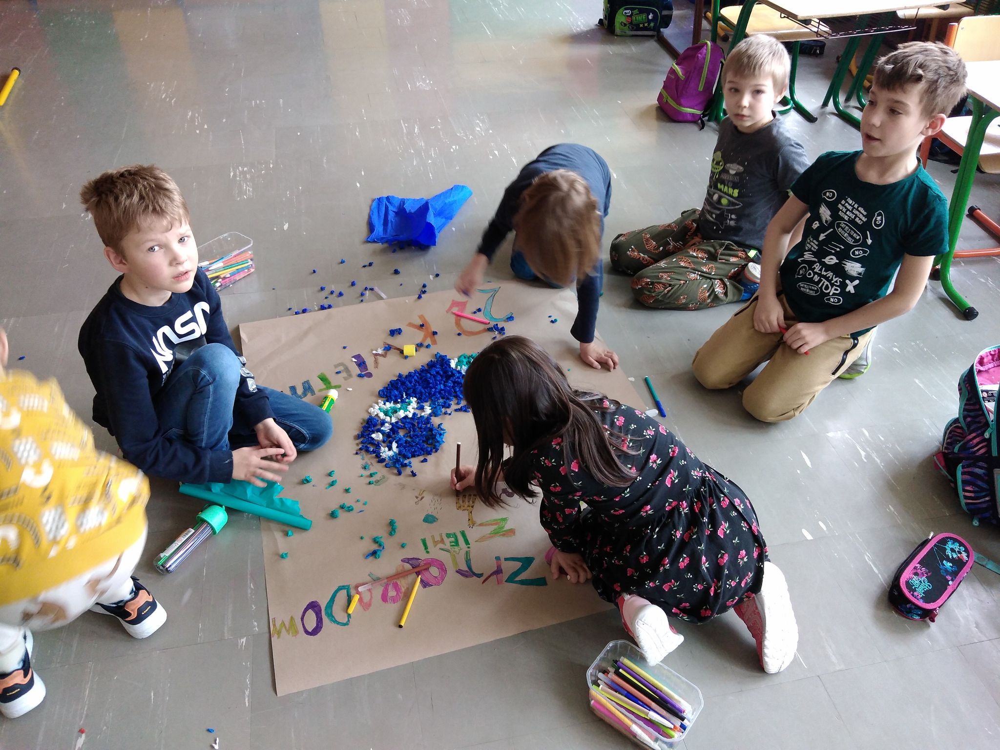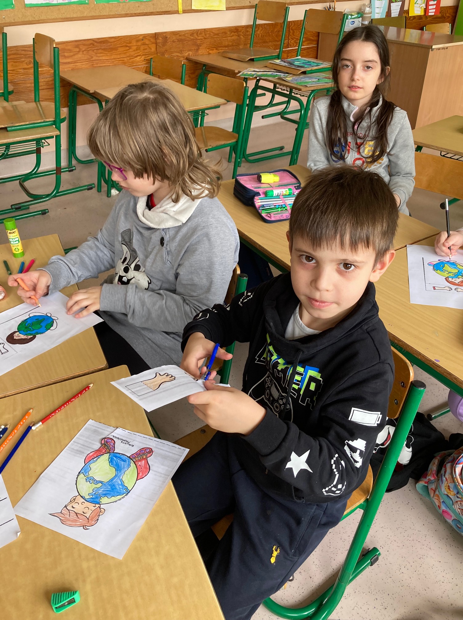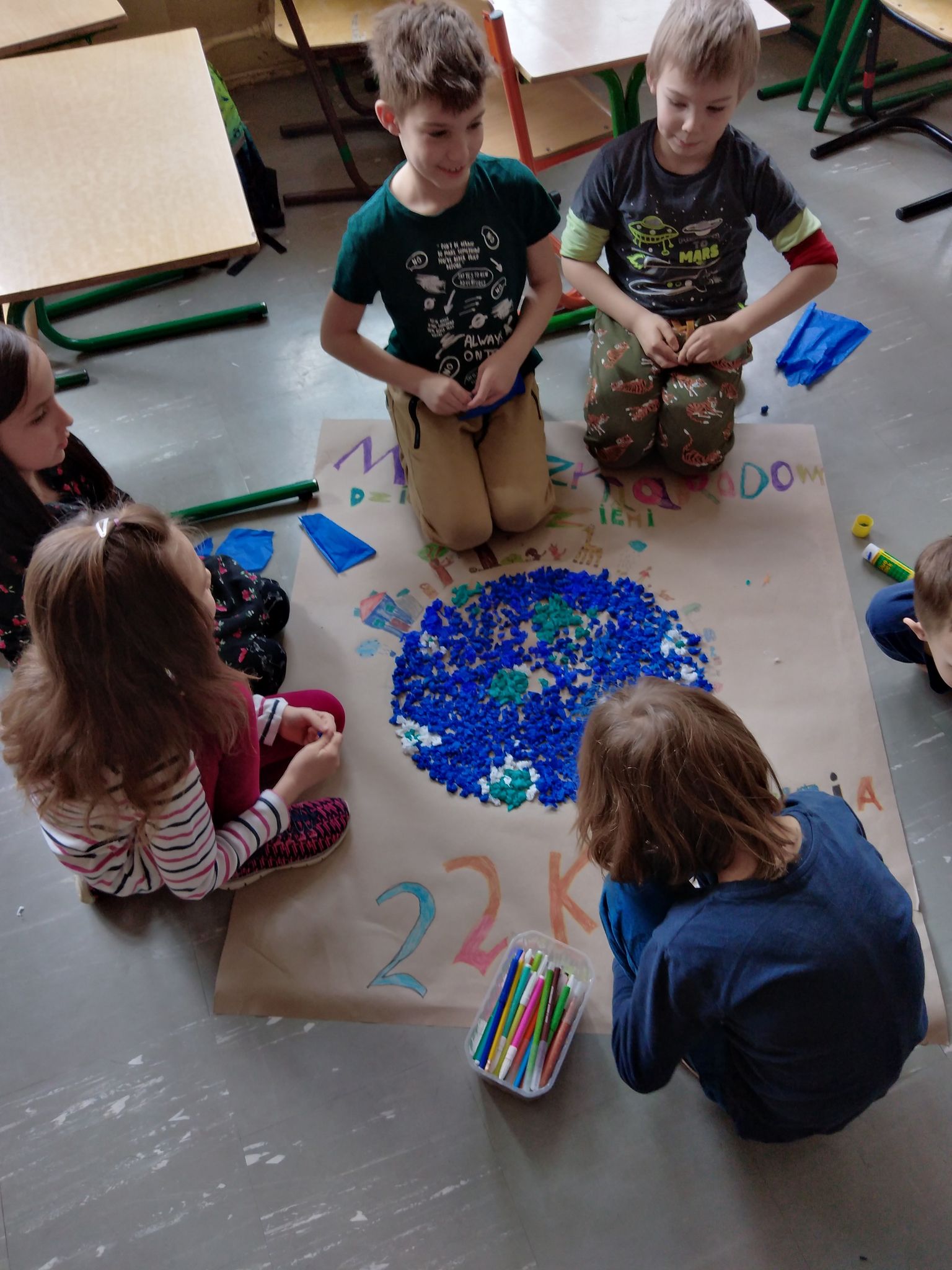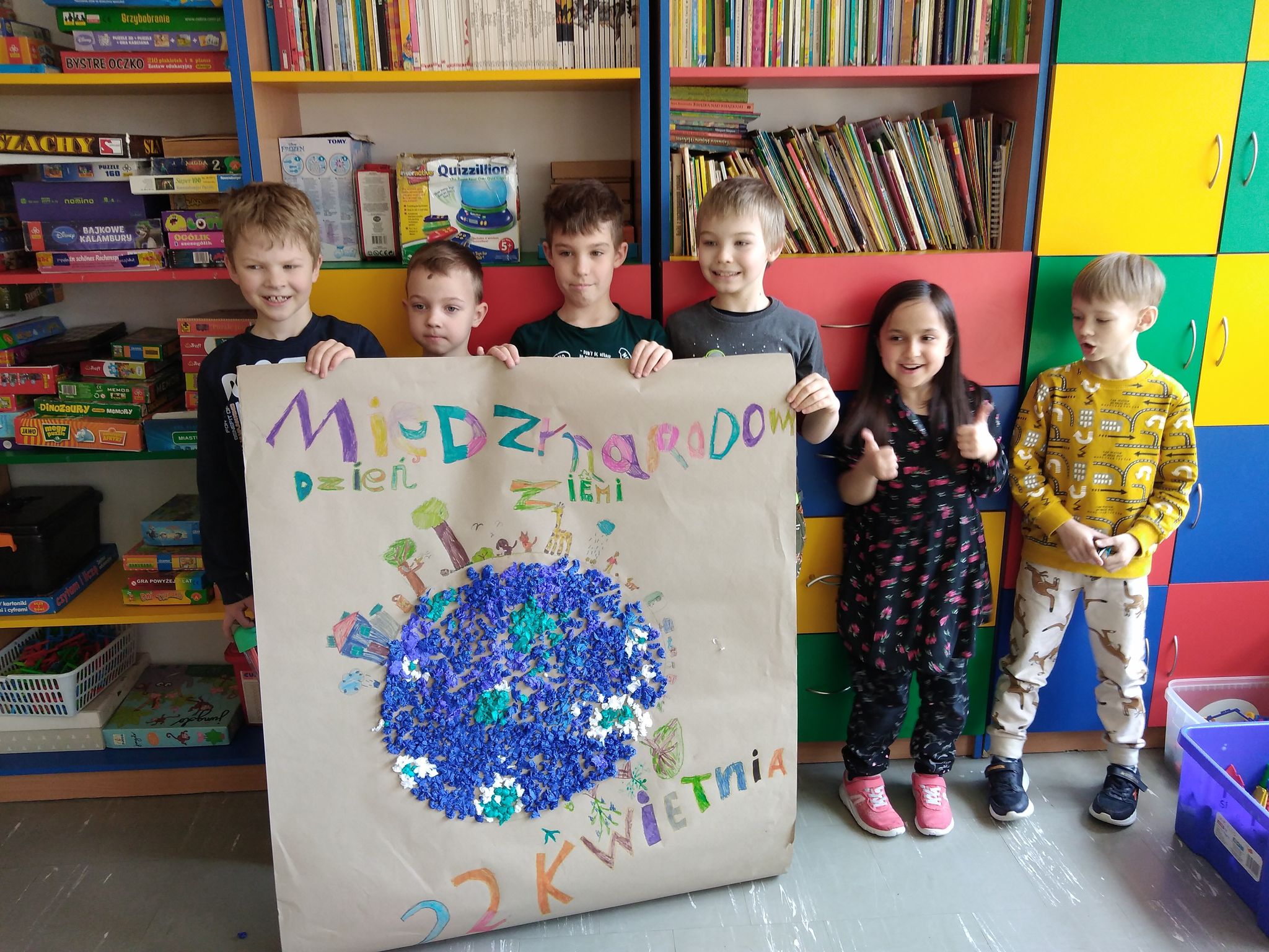 Międzynarodowy Dzień Ziemi w klasie 1a, 2a I 3a KLASA 3A Klasa 3a wykonała plakaty z okazji Dnia Ziemi KLASA 1A Klasa 1a przygotowała wspólnie plakat z Okazji Dnia Ziemi. KLASA 2A Piękna jest nasza planeta. Chcemy aby zawsze taka była, dlatego mądrze gospodarujemy odpadami. Segregację mamy w jednym paluszku. Kategoria: Z życia świetlicy