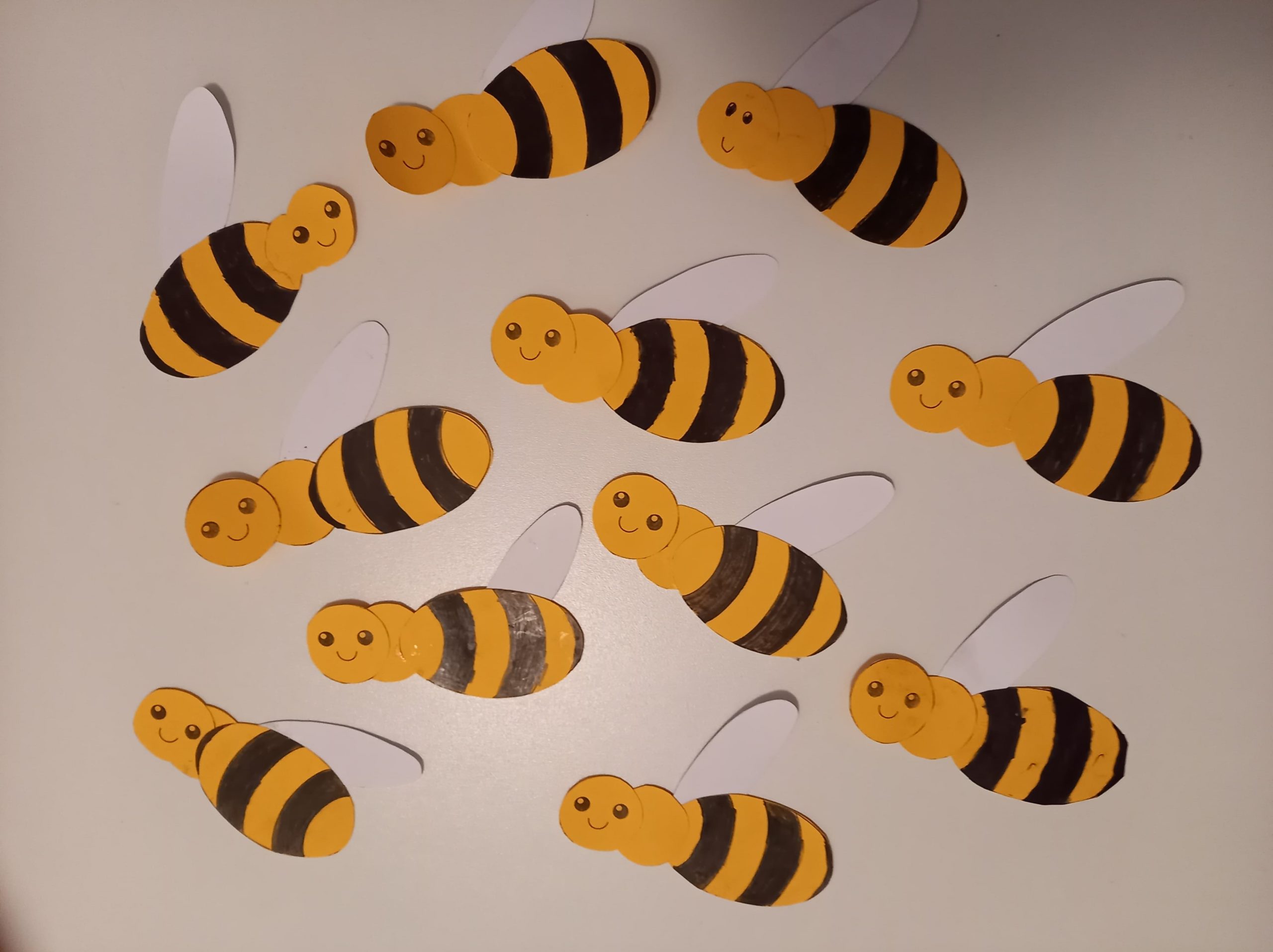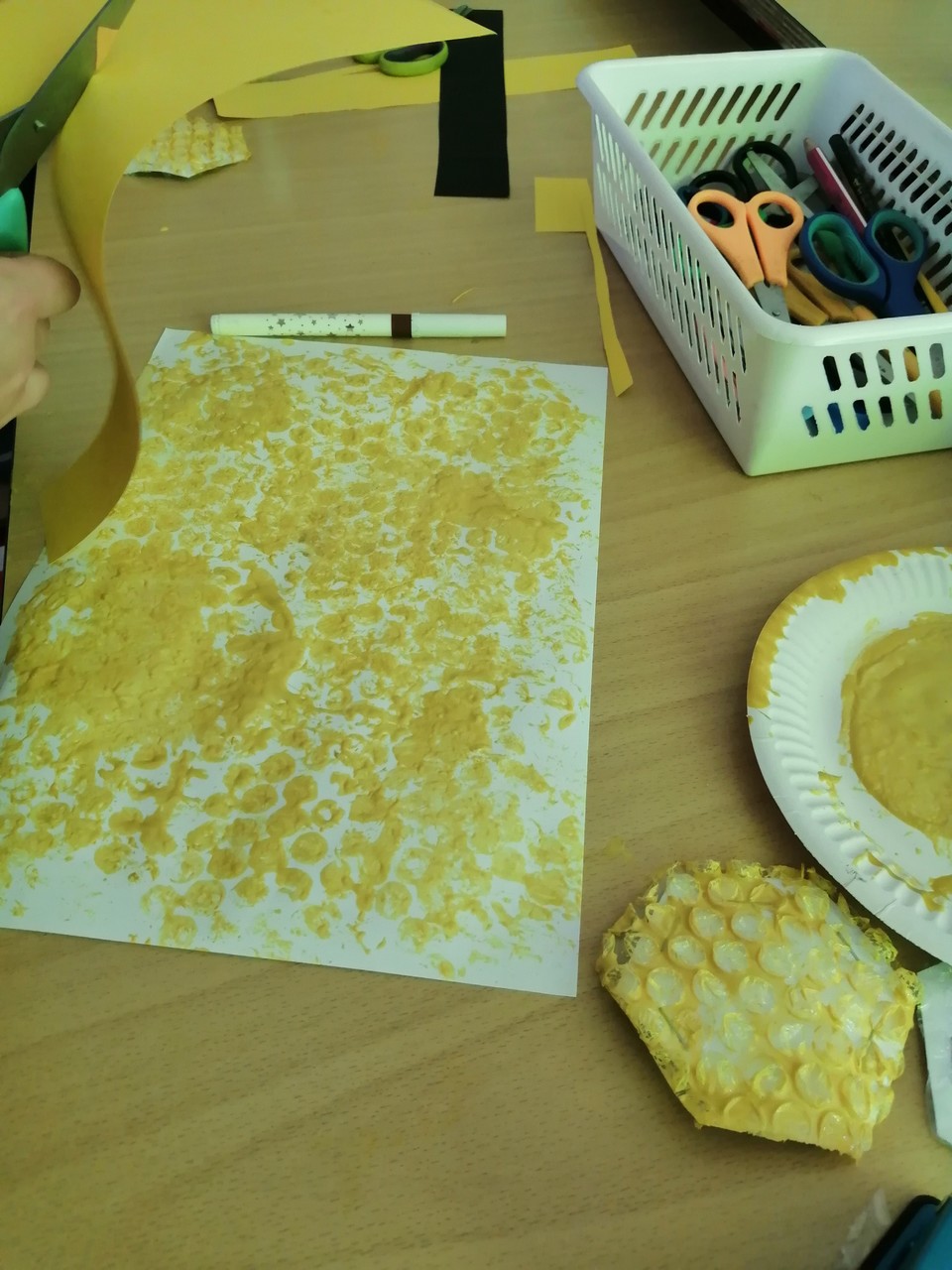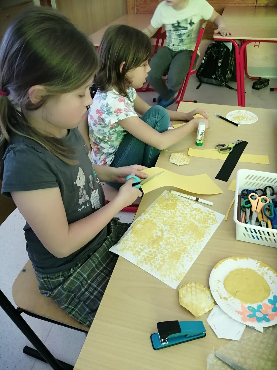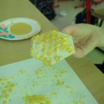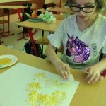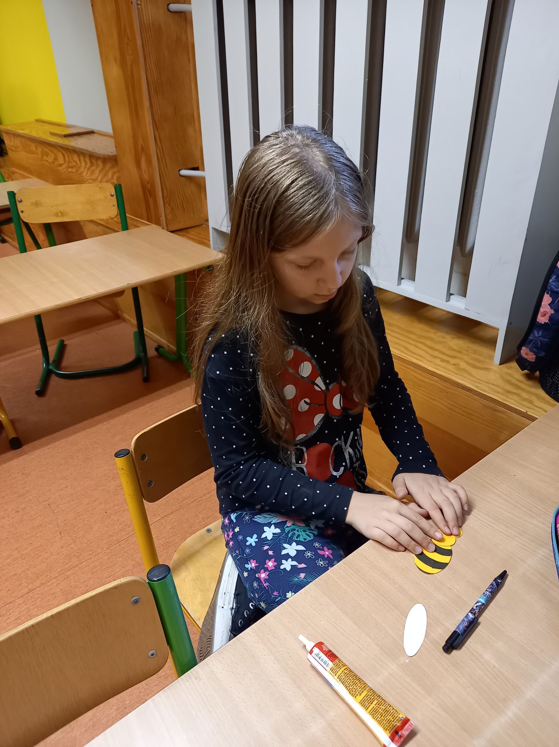 Obchody Światowego Dnia Pszczół 3 d rozpoczęła od zapoznania się z krótkim filmem o pszczołach. Po krótkiej rozmowie o filmie i po przedstawieniu ciekawostek na temat życia pszczół przystąpiliśmy do stworzenia „plastrów miodu” i pszczół.