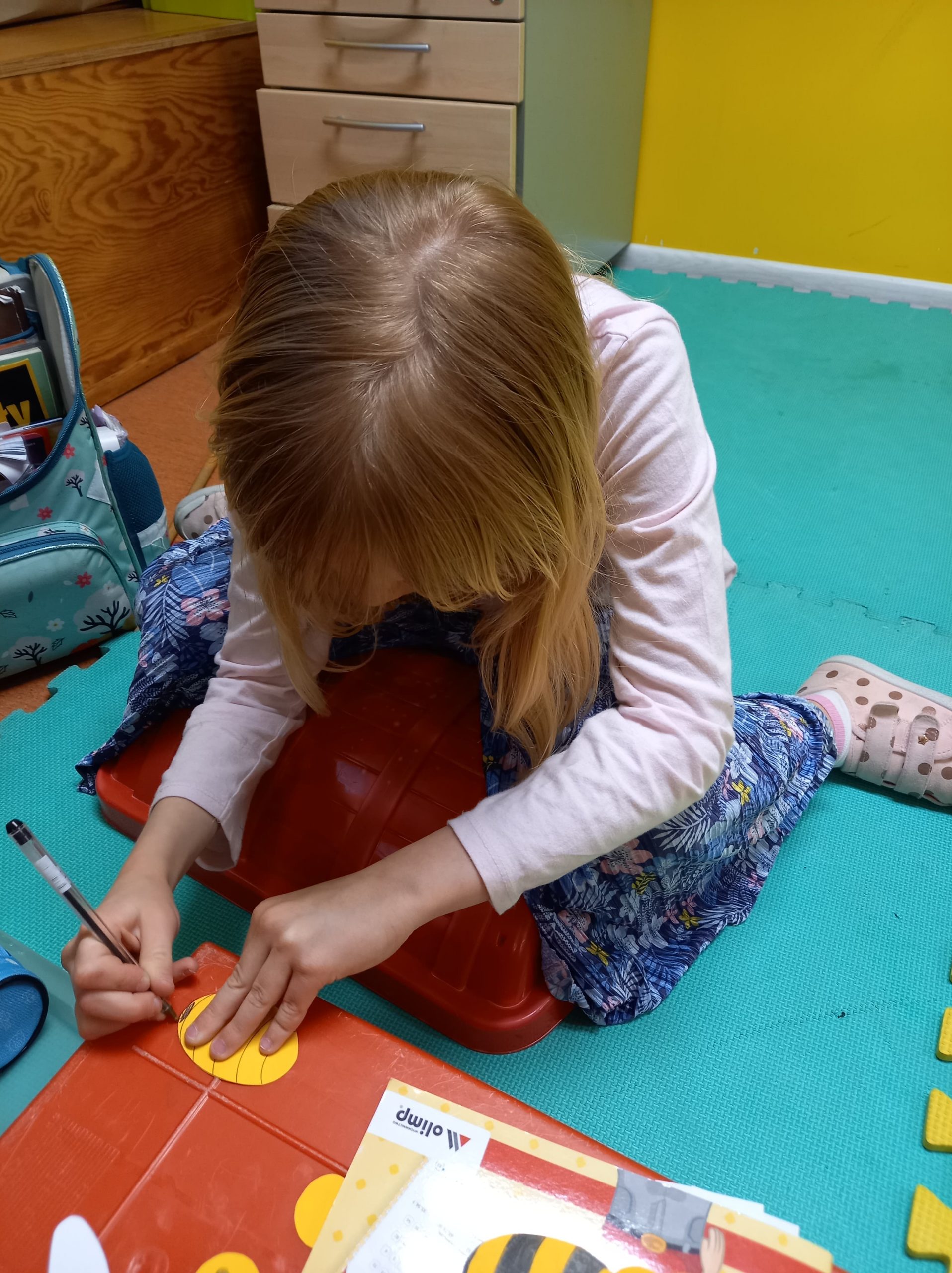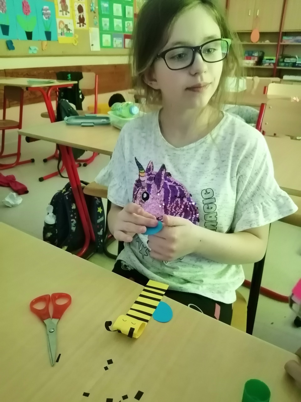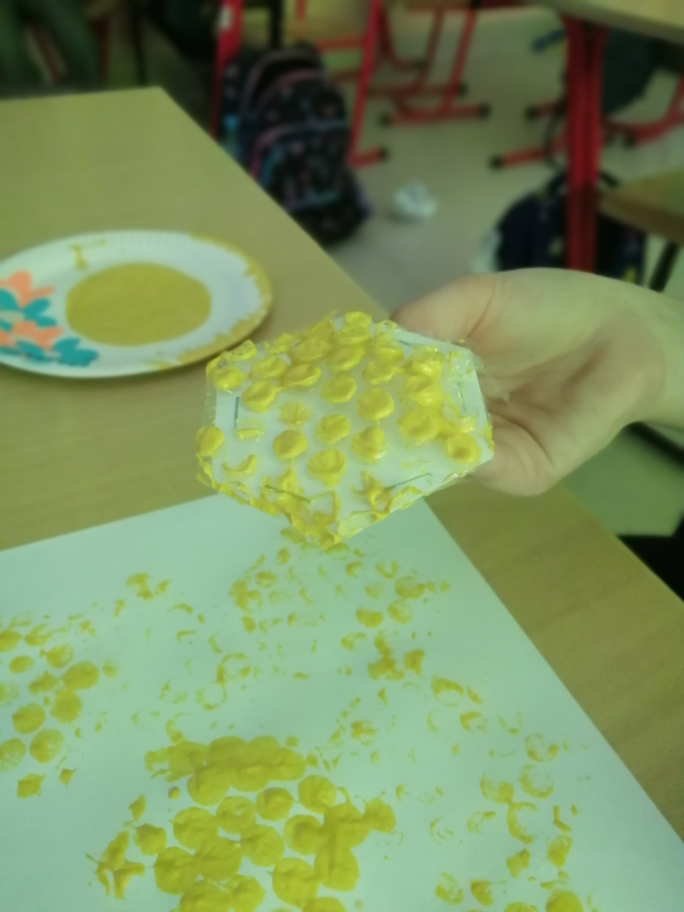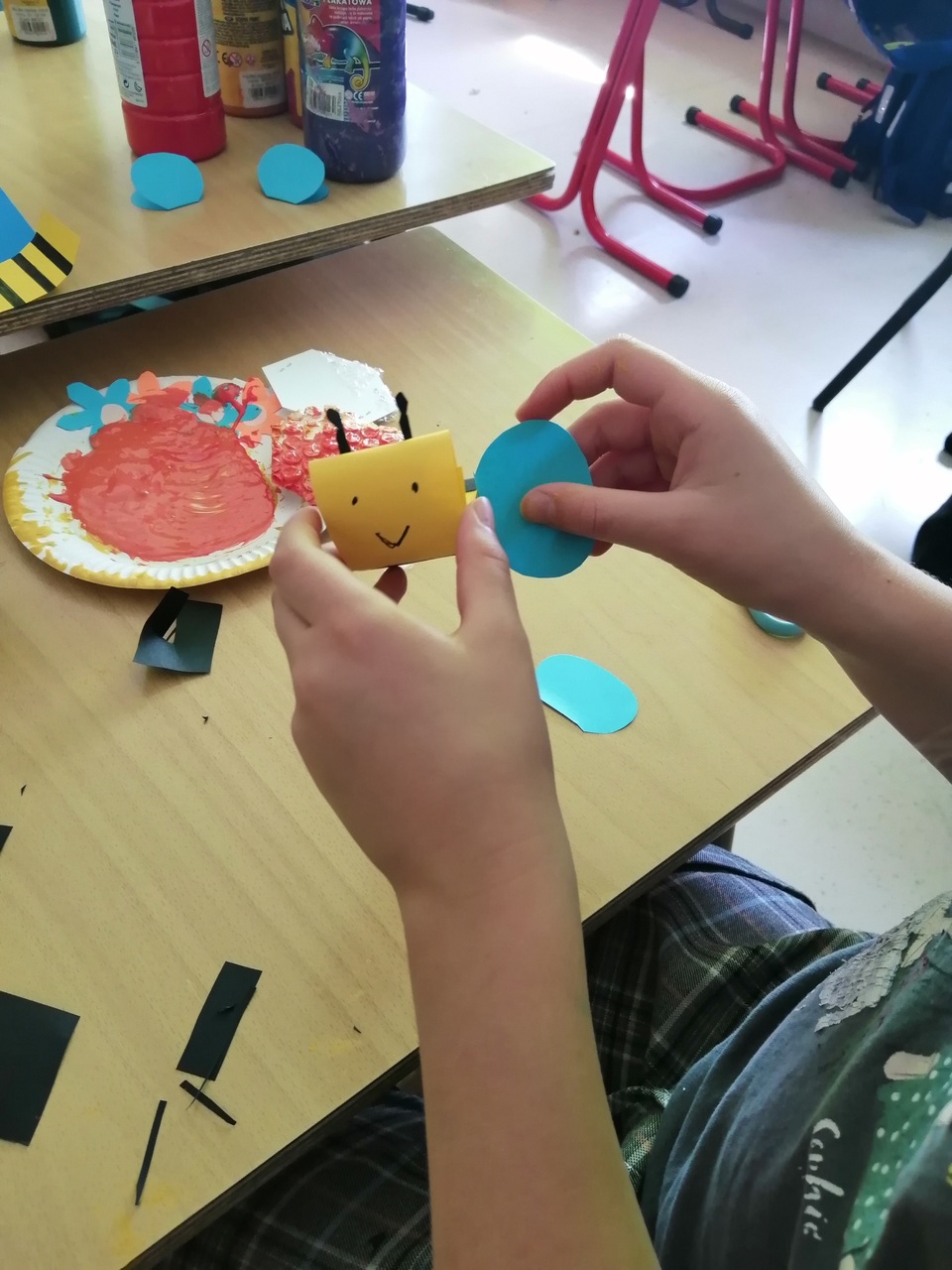 Obchody Światowego Dnia Pszczół 3 d rozpoczęła od zapoznania się z krótkim filmem o pszczołach. Po krótkiej rozmowie o filmie i po przedstawieniu ciekawostek na temat życia pszczół przystąpiliśmy do stworzenia „plastrów miodu” i pszczół.