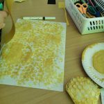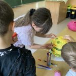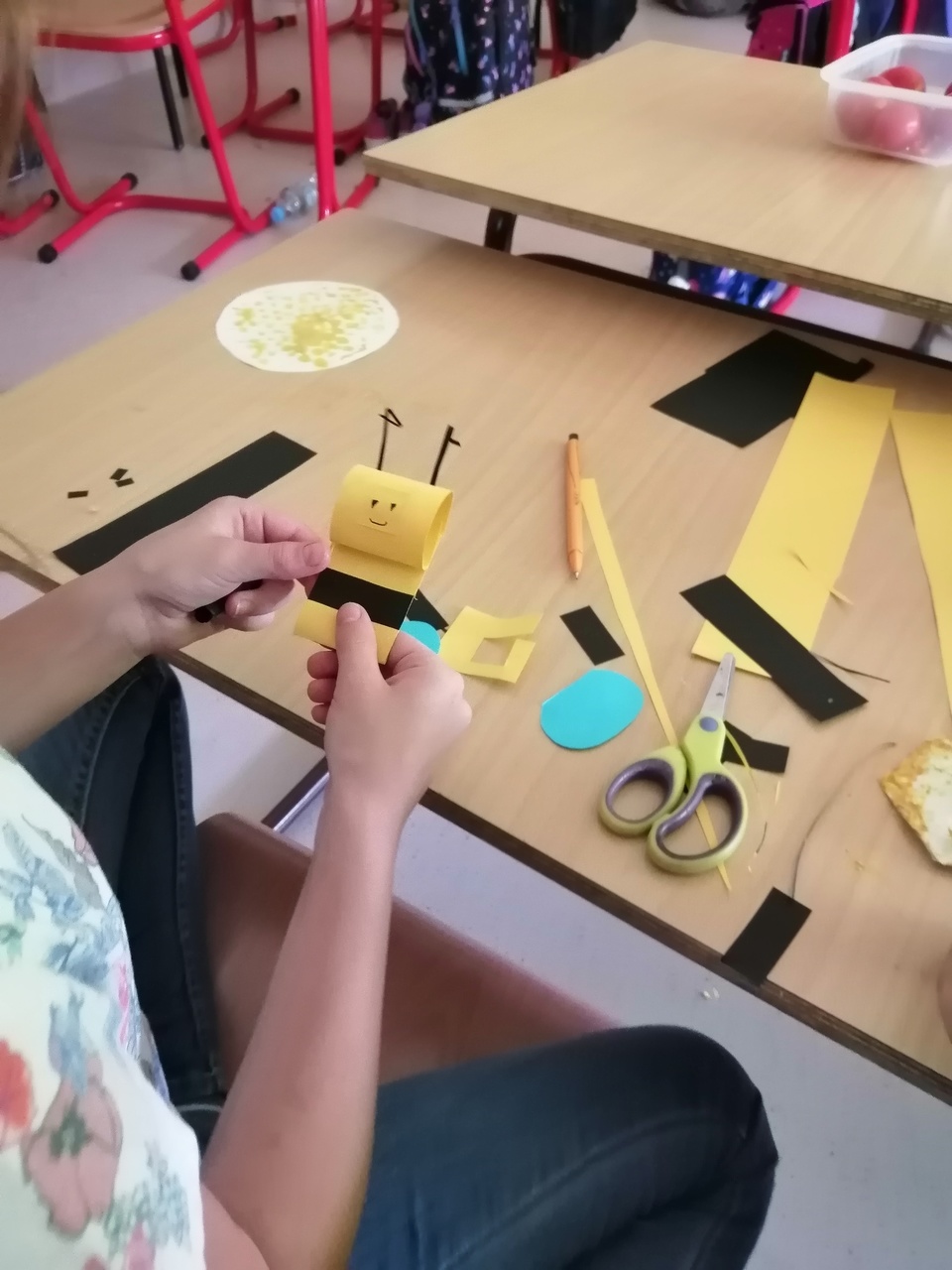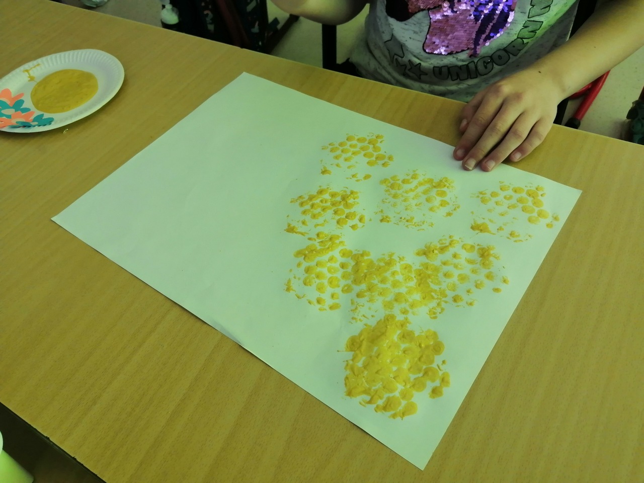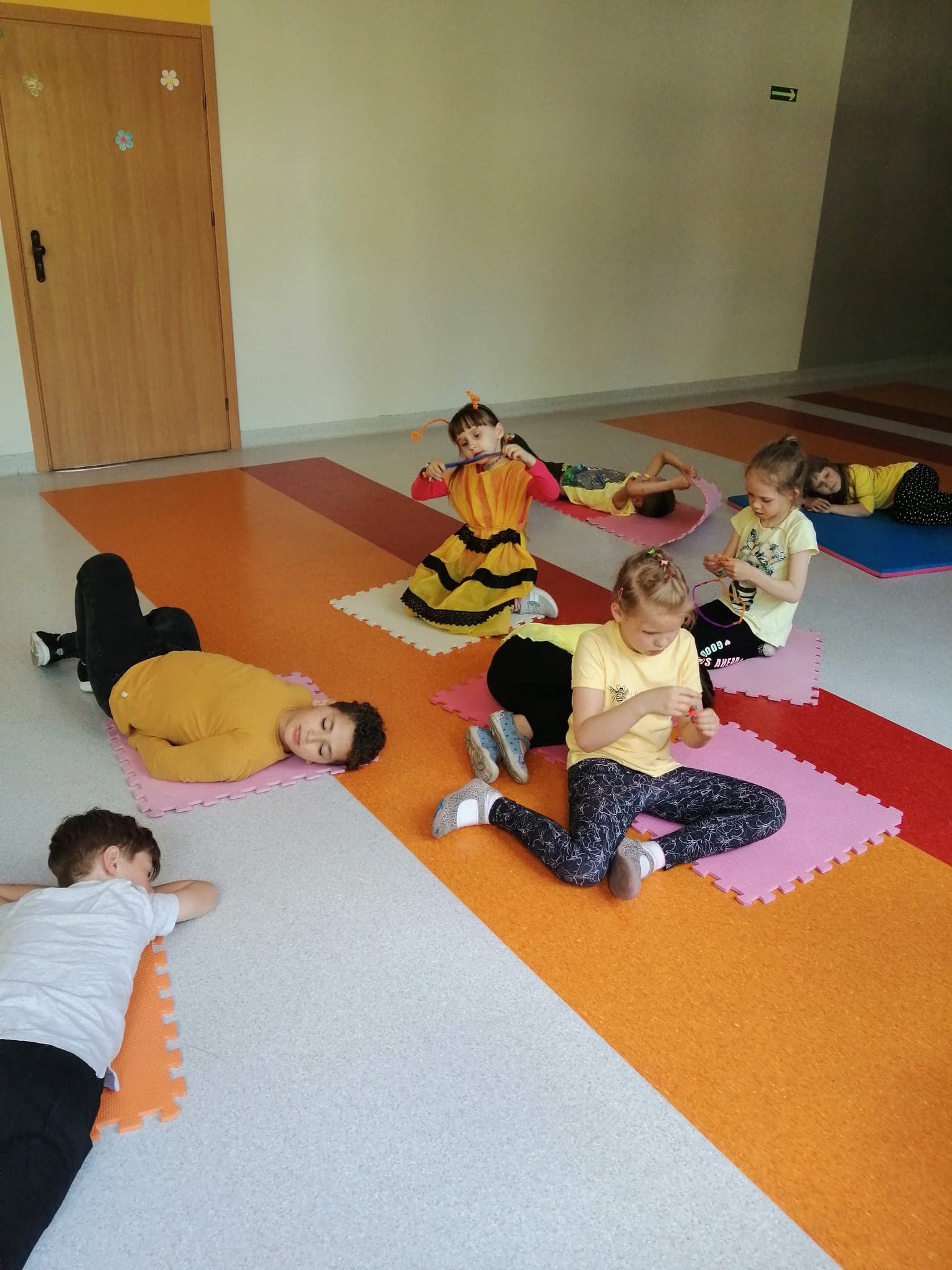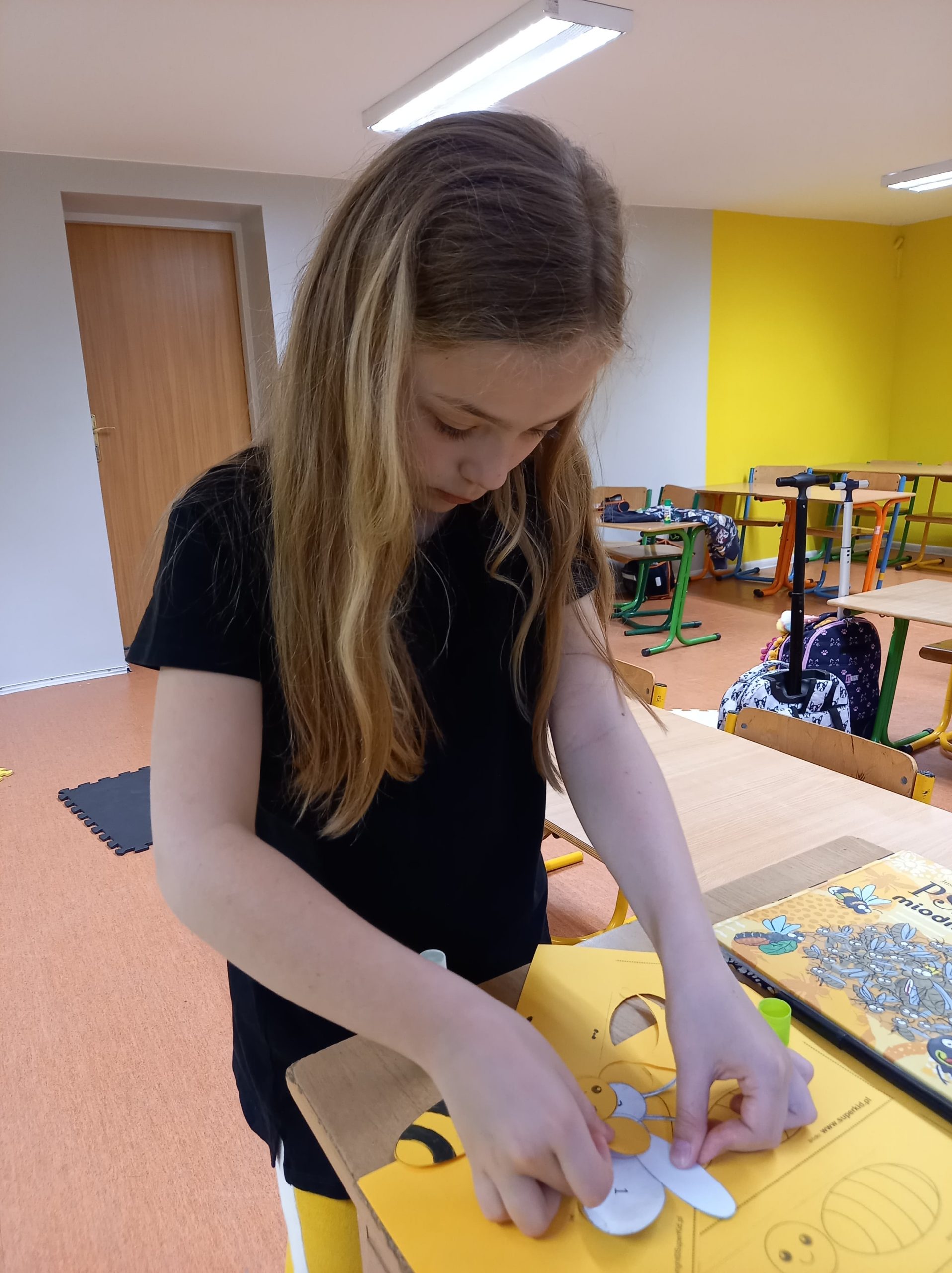 Obchody Światowego Dnia Pszczół 3 d rozpoczęła od zapoznania się z krótkim filmem o pszczołach. Po krótkiej rozmowie o filmie i po przedstawieniu ciekawostek na temat życia pszczół przystąpiliśmy do stworzenia „plastrów miodu” i pszczół.