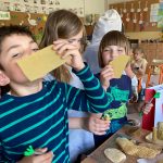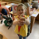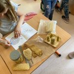 Po powrocie z warsztatów , kontynuowaliśmy zabawy związane z tym dniem. Dzieci nauczyły się robić świeczką z węzy, robiły przestrzenne pszczółki.