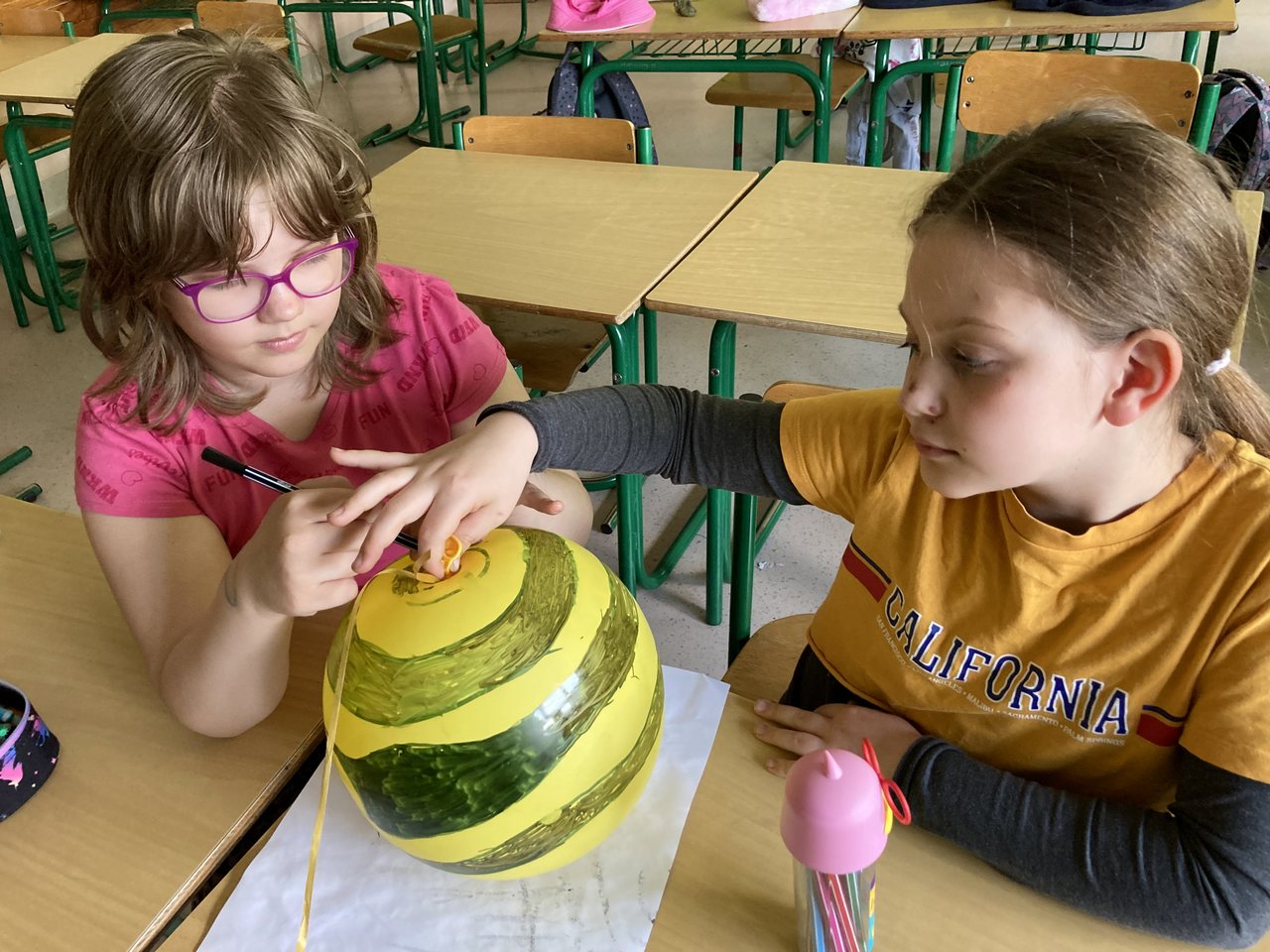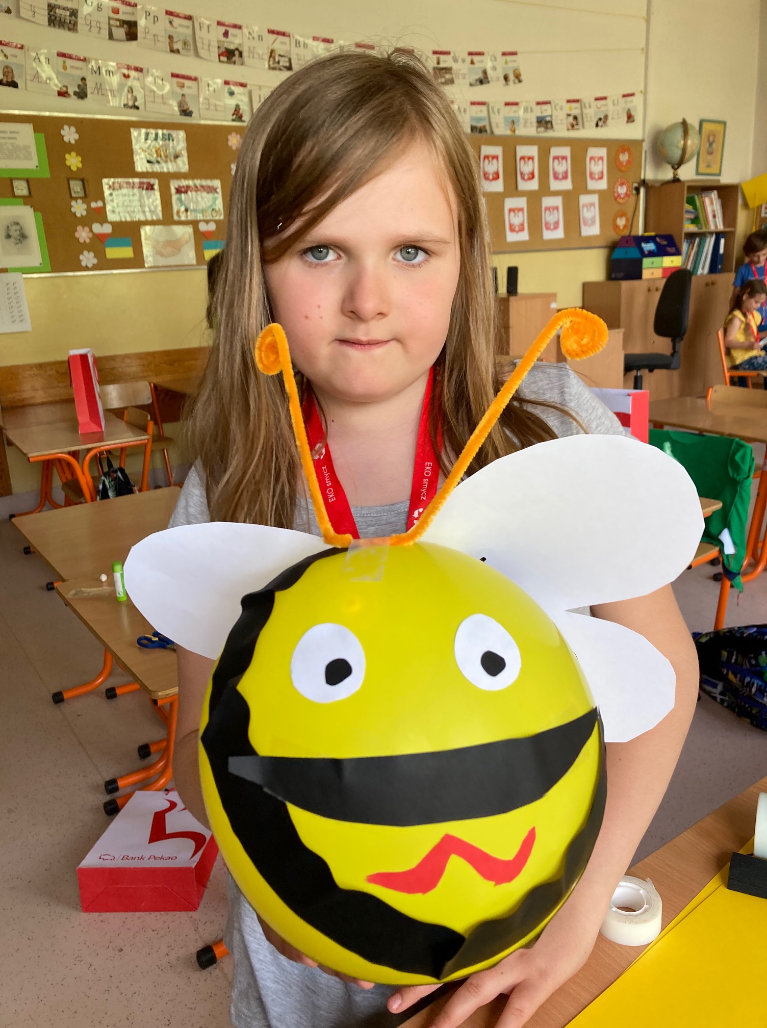 W dniu Święta Pszczół  w klasie 2a bohaterką zajęć był ten wspaniały i pożyteczny owad. Z balonu wypełnionego helem wykonaliśmy latającą pszczółkę, a Ala zrobiła plakat ?