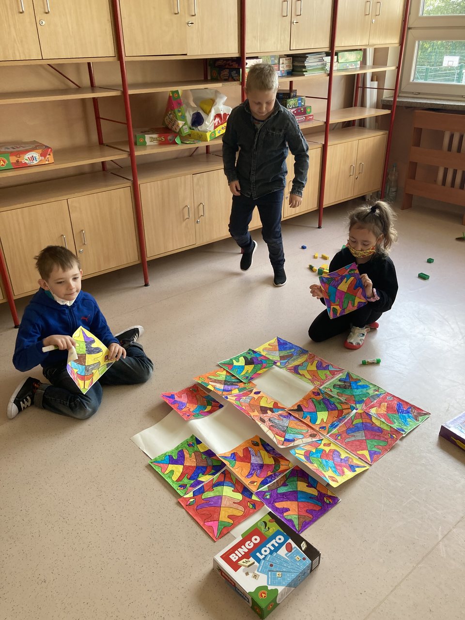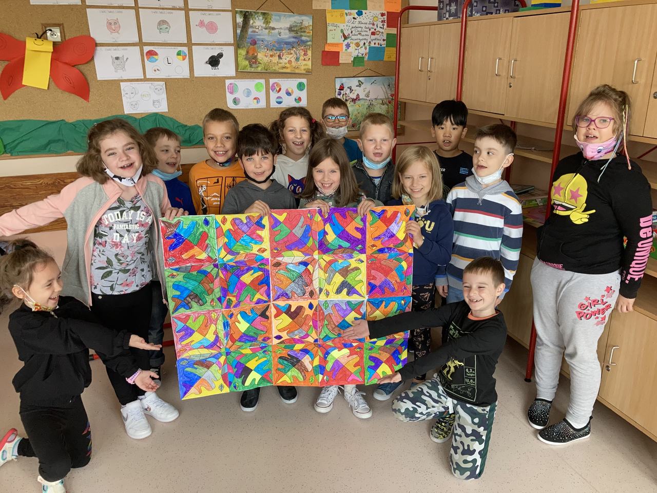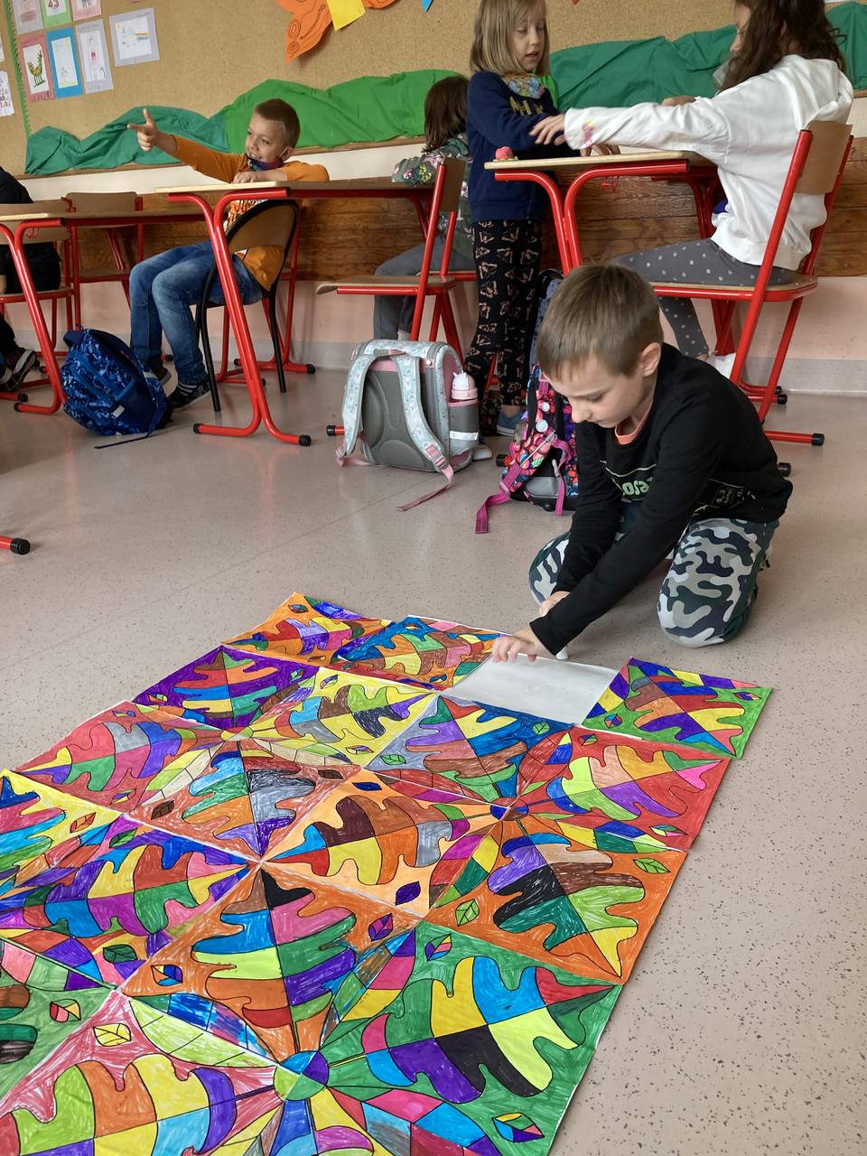 Piękne mandale 2a Na świetlicy poznajemy różne techniki plastyczne. Tak powstał piękny wielobarwny dywan z kawałków mandali. Kategoria: Z życia świetlicy