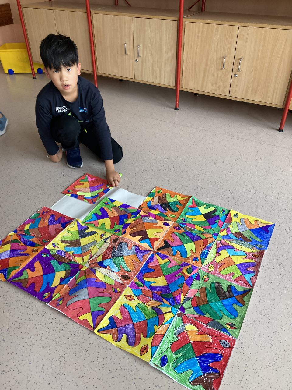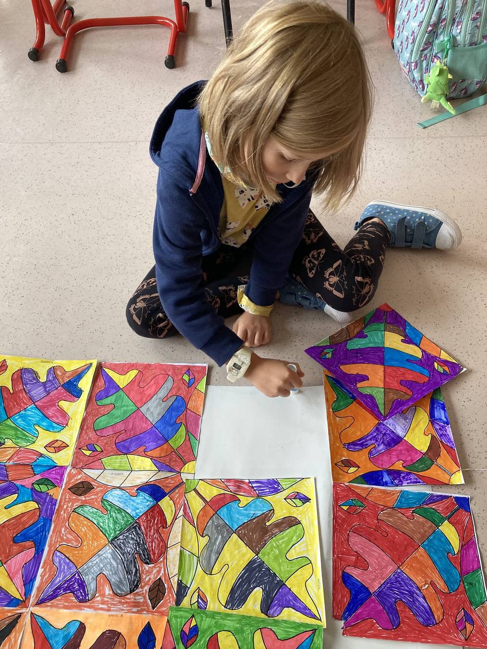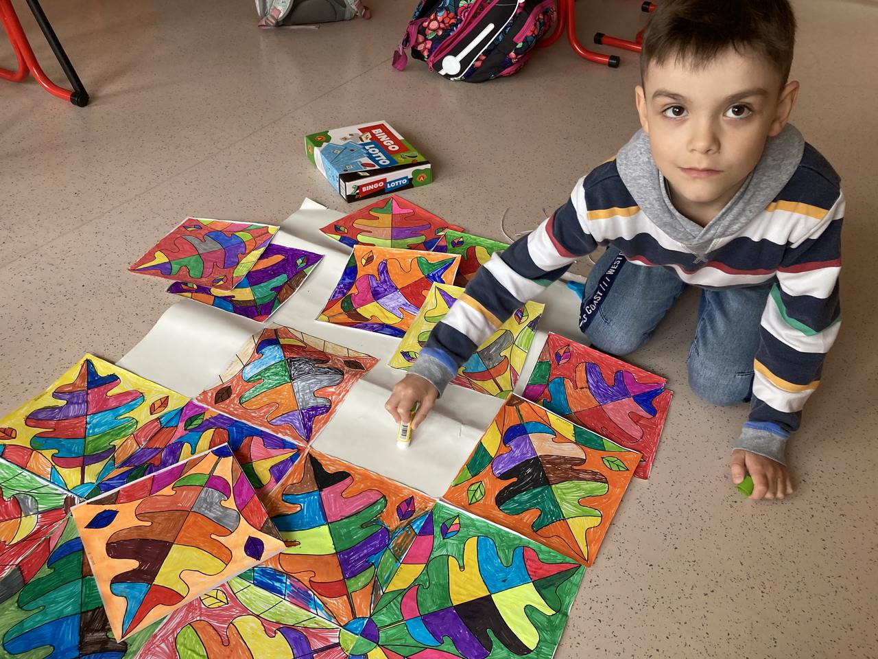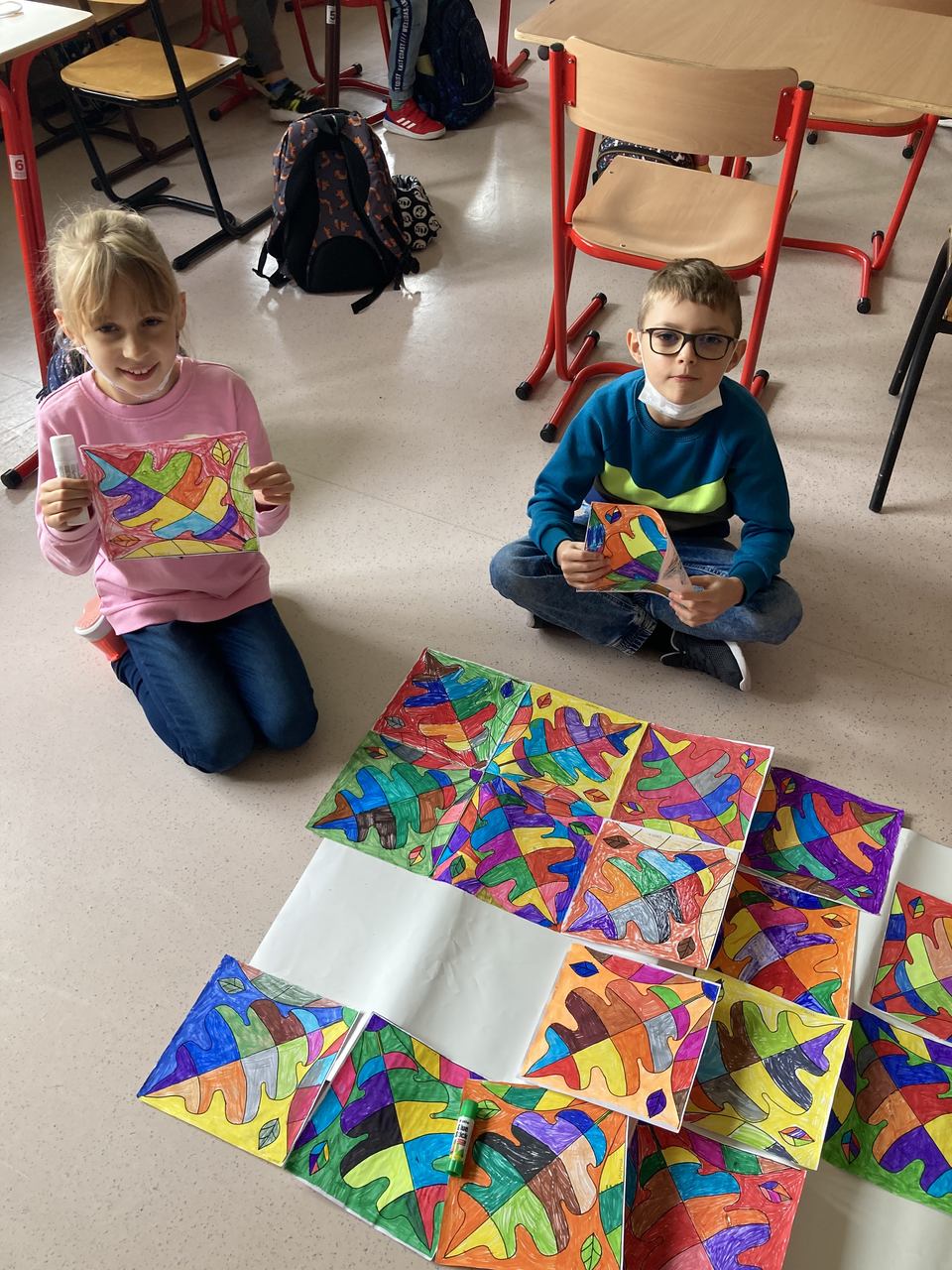 Piękne mandale 2a Na świetlicy poznajemy różne techniki plastyczne. Tak powstał piękny wielobarwny dywan z kawałków mandali. Kategoria: Z życia świetlicy