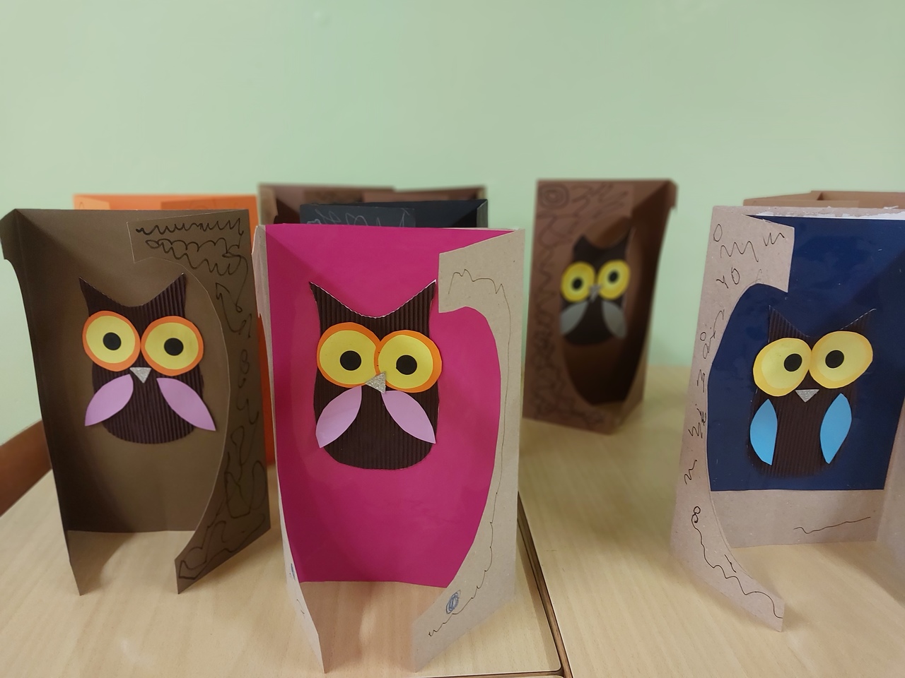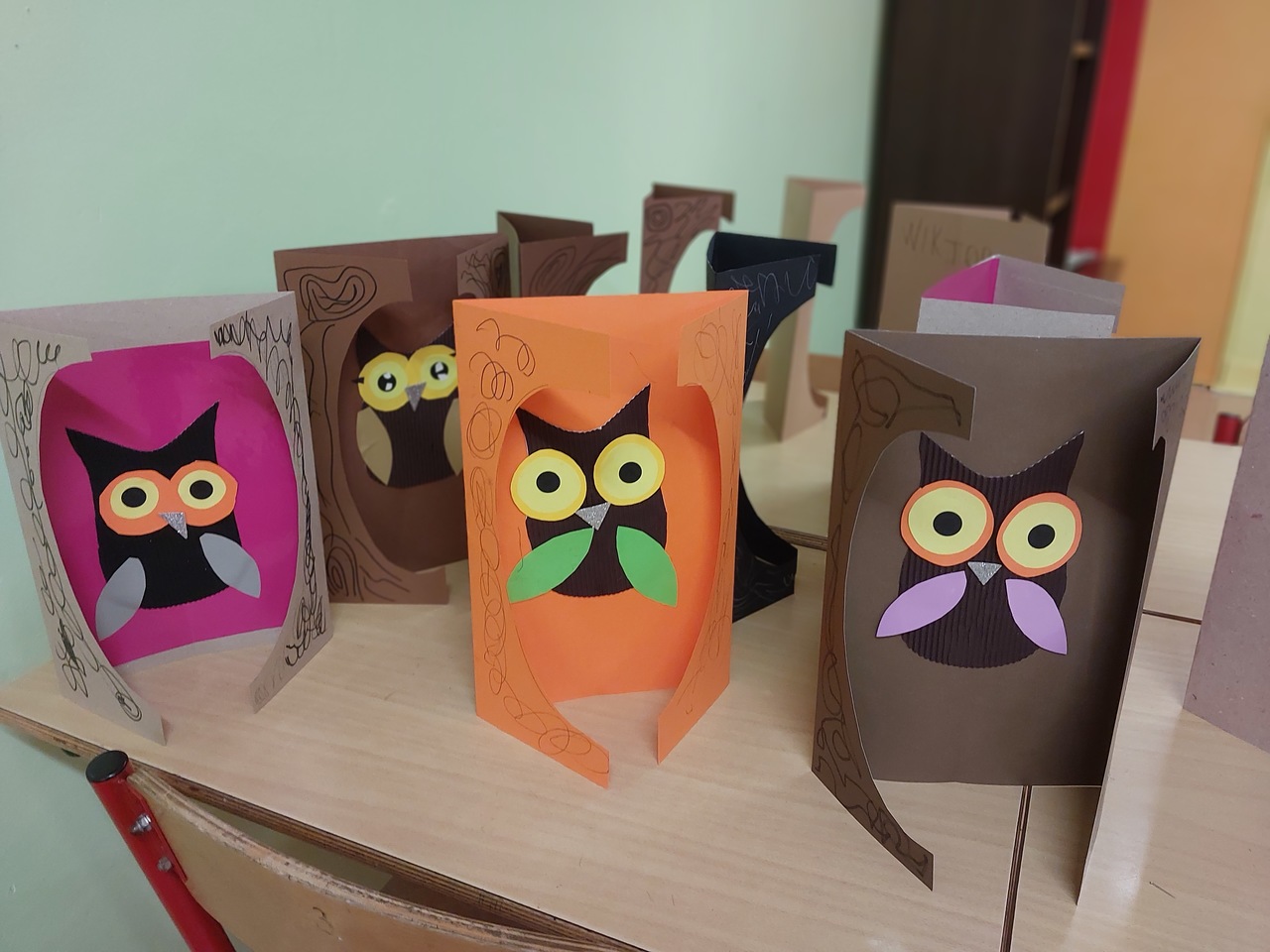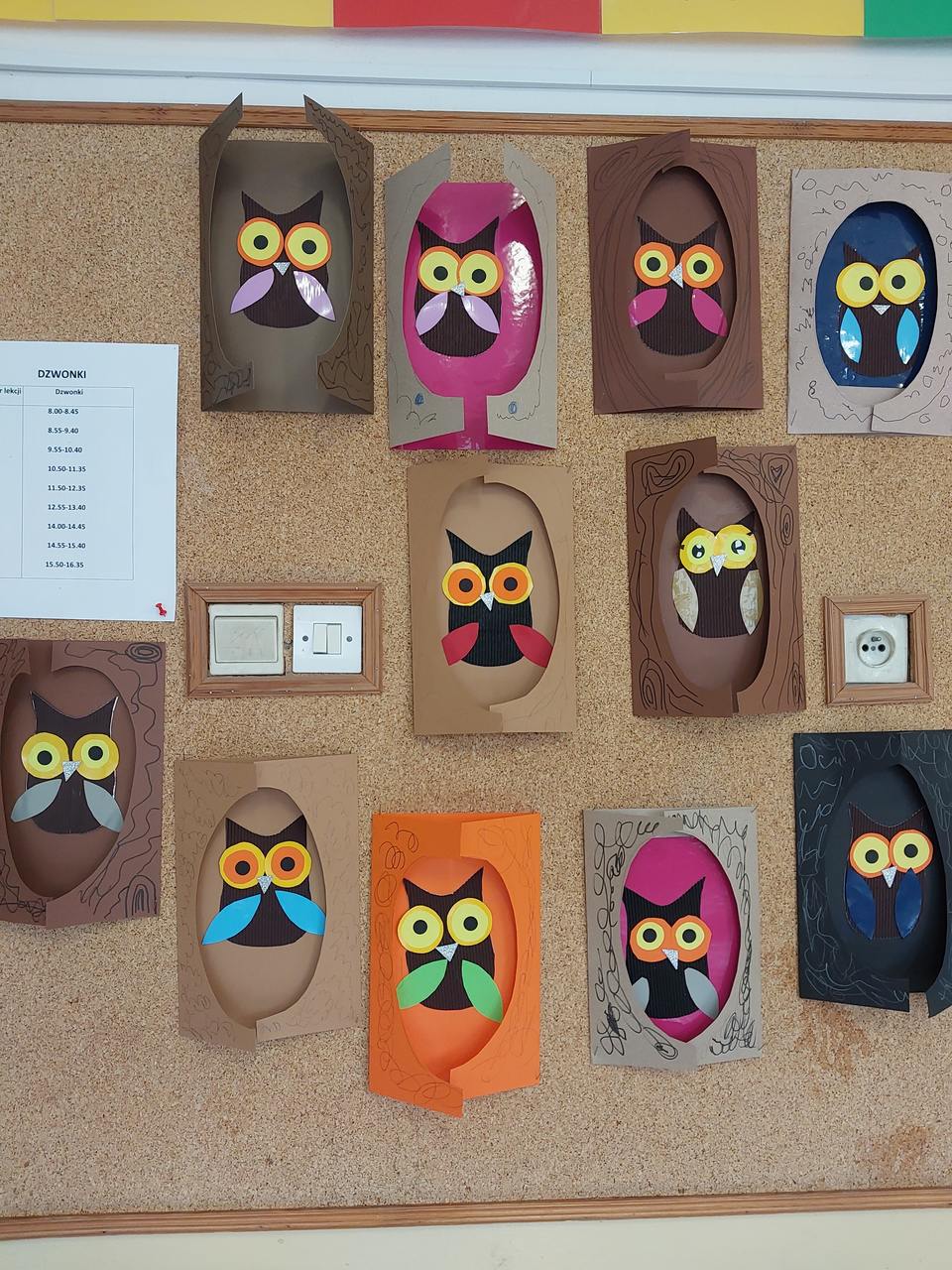 Piękne sowy 1b Tym razem dzieci z 1b uczęszczające na zajęcia do świetlicy wykonały sowy w dziupli. Kategoria: Z życia świetlicy