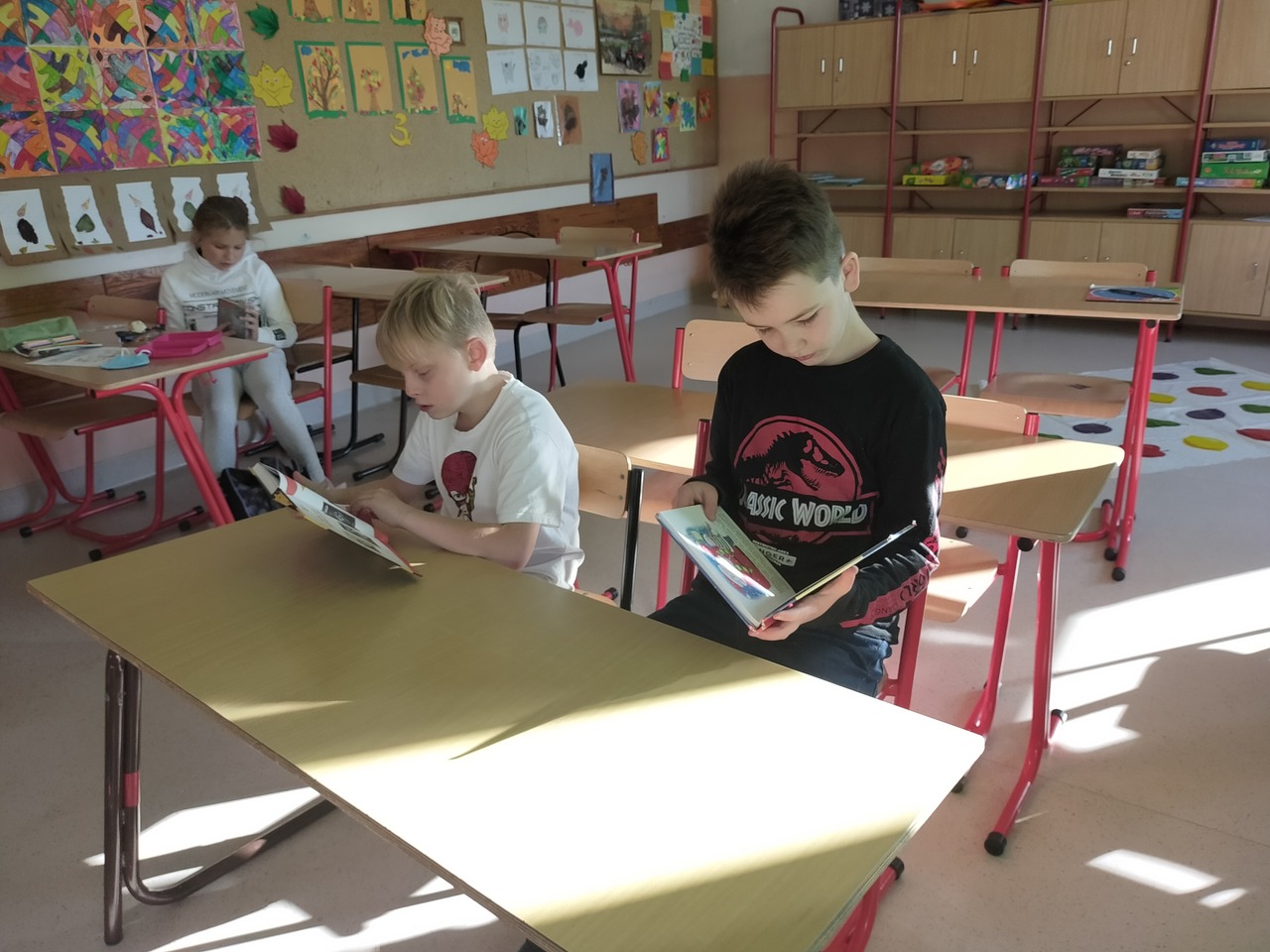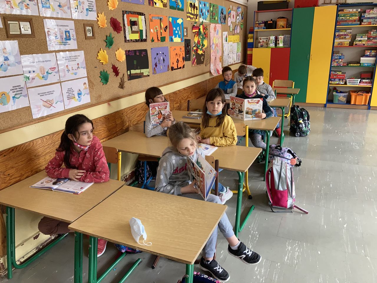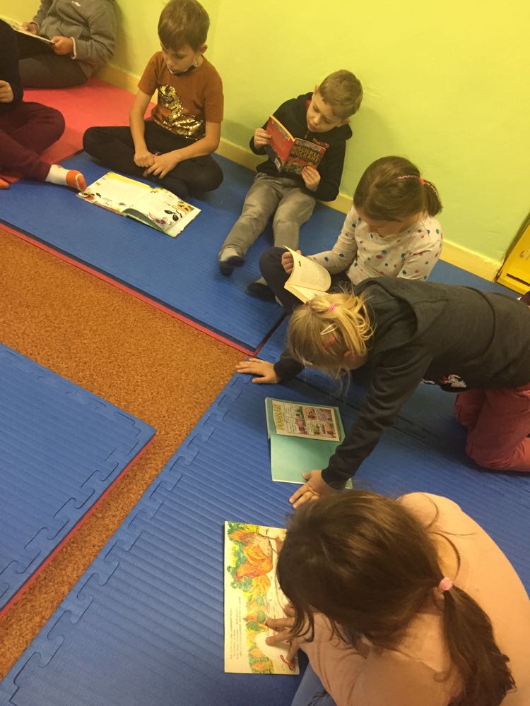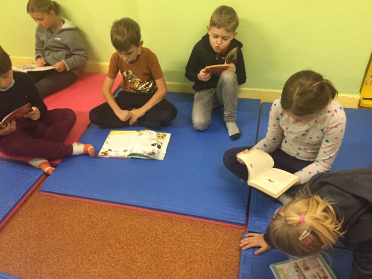 25 października uczniowie uczęszczający do świetlicy szkolnej brali udział w II Międzynarodowej edycji VI Ogólnopolskiej akcji bicia rekordu w czytaniu na przerwie „Przerwa na czytanie”. W tym dniu można było zabrać swoją książkę z domu lub wypożyczyć w bibliotece. Jak widać na zamieszczonych zdjęciach, czytać można w każdej sytuacji i każdym miejscu. Czytanie jest po prostu ciekawe! Dziękujemy wszystkim za udział w akcji!