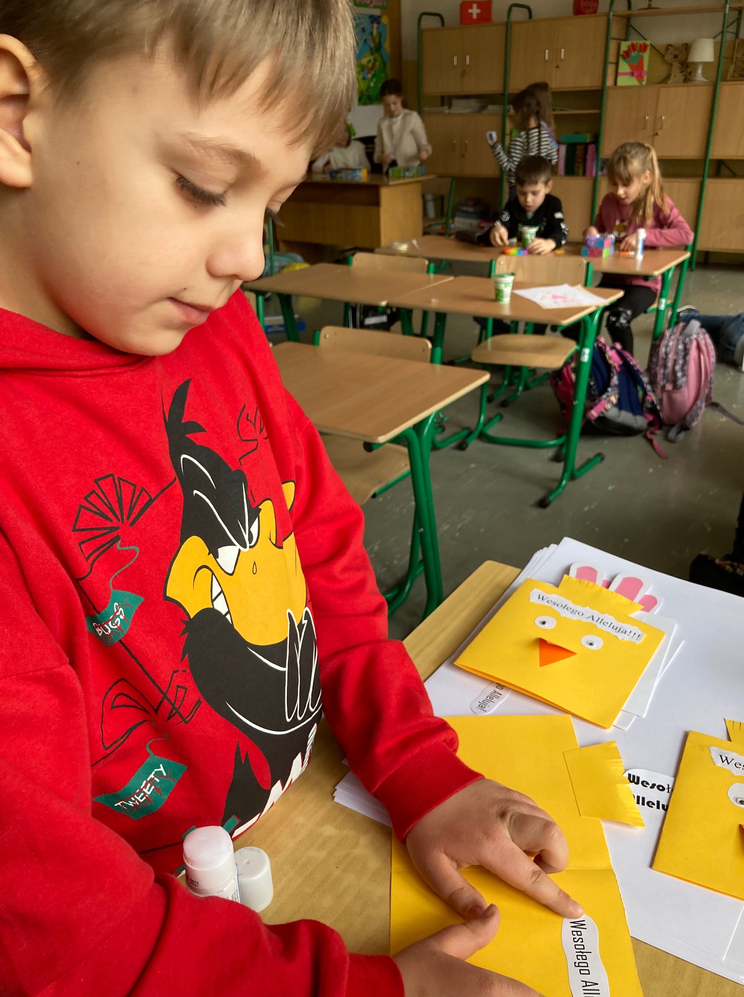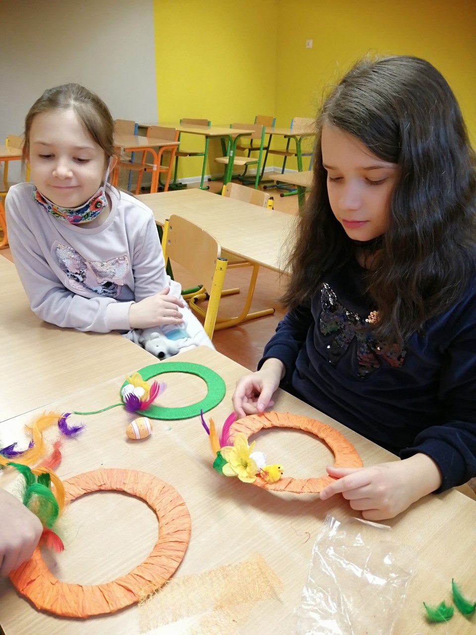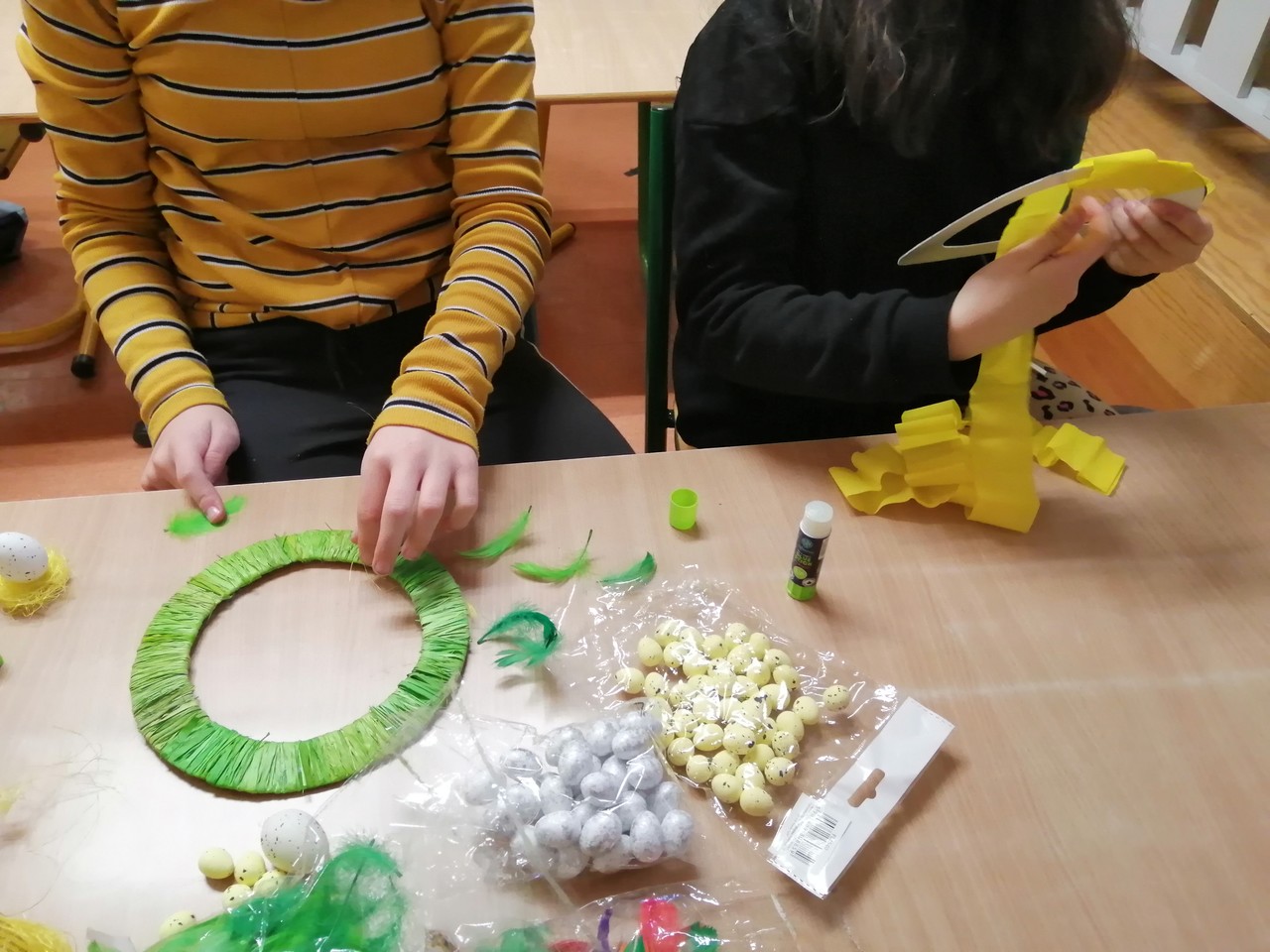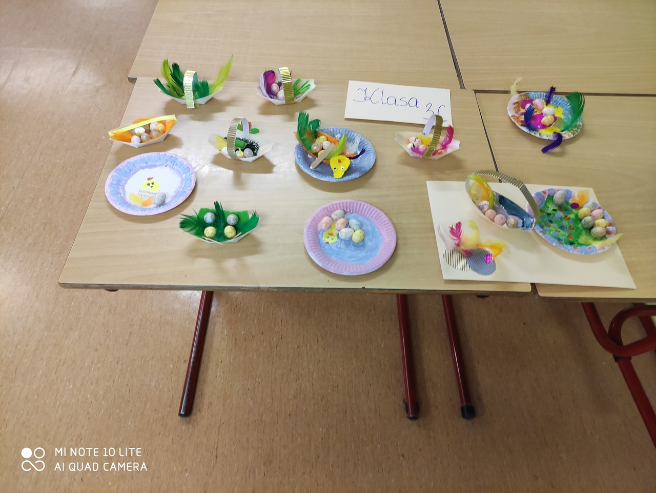 Klasa IIb wzięła udział w przygotowywaniu ekologicznych ozdób na kiermasz wielkanocny oraz kartek z życzeniami dla emerytowanych nauczycieli.