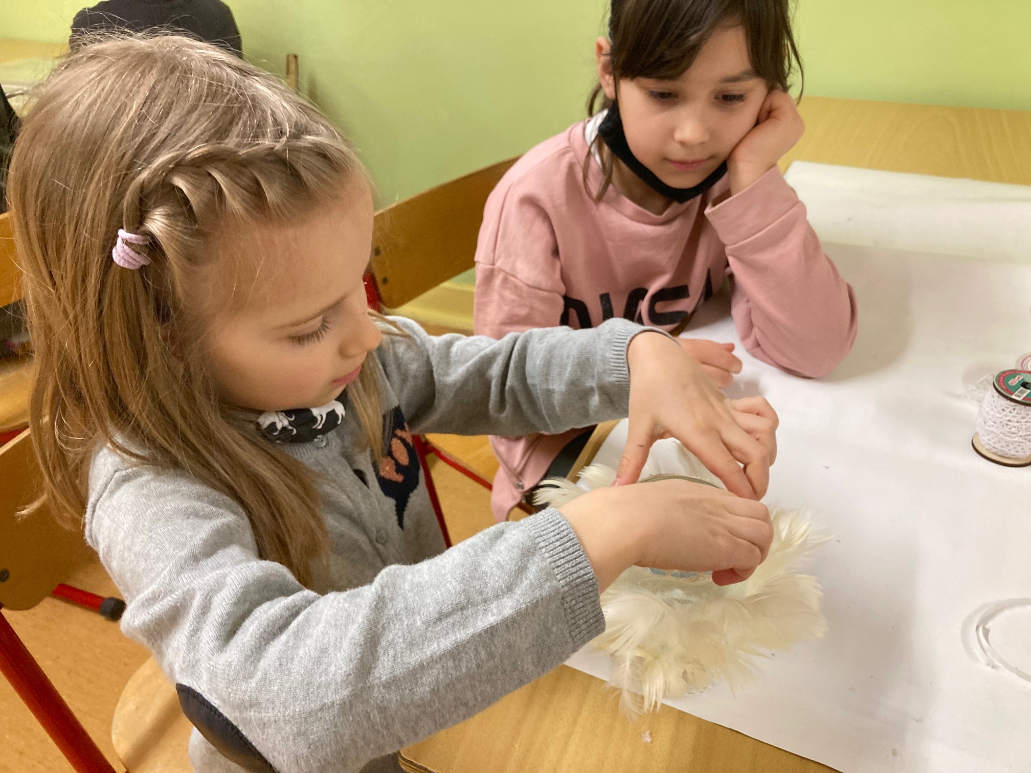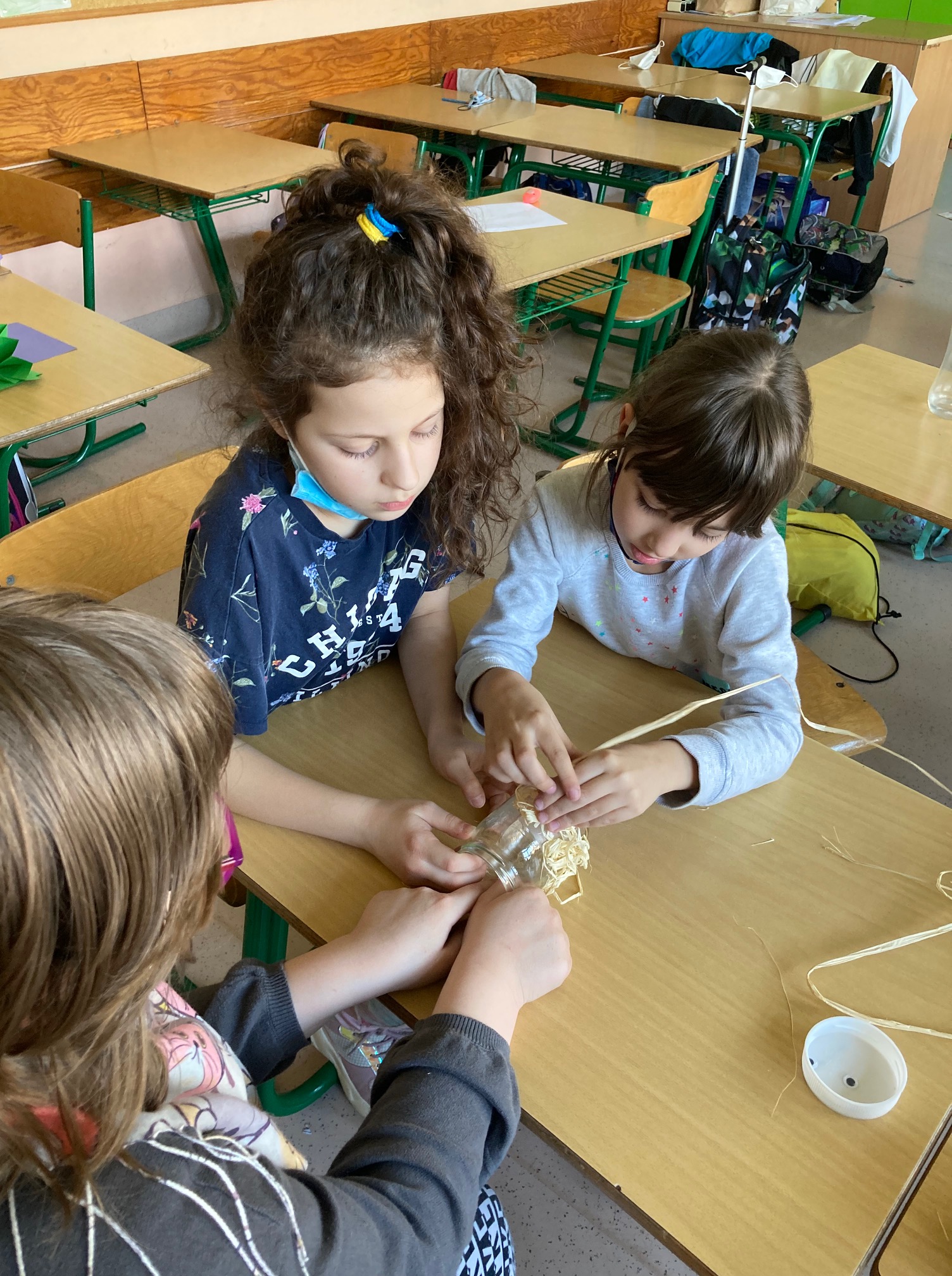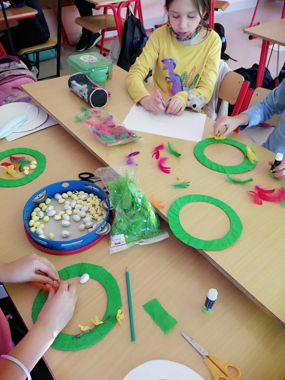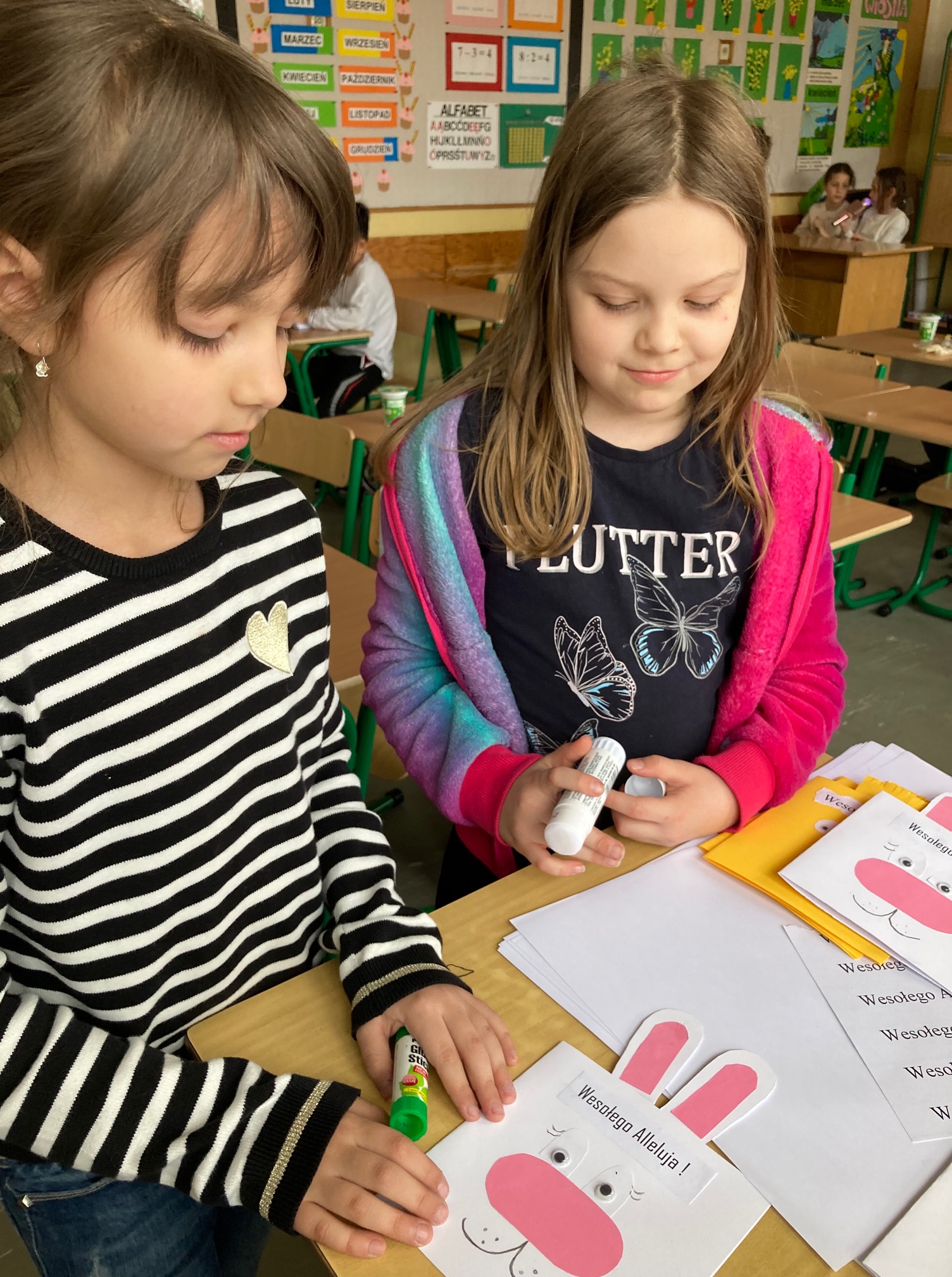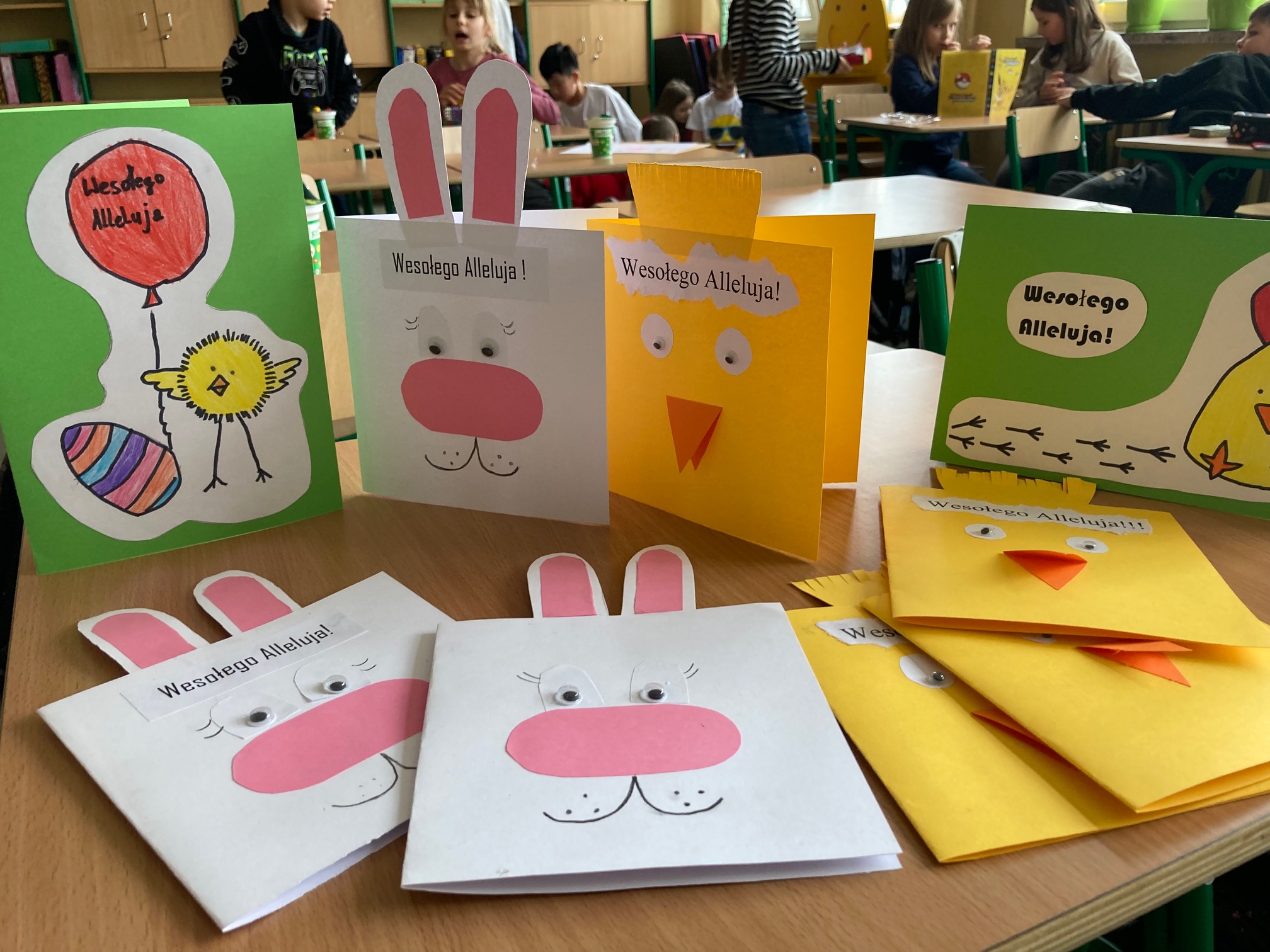 Klasa IIb wzięła udział w przygotowywaniu ekologicznych ozdób na kiermasz wielkanocny oraz kartek z życzeniami dla emerytowanych nauczycieli.