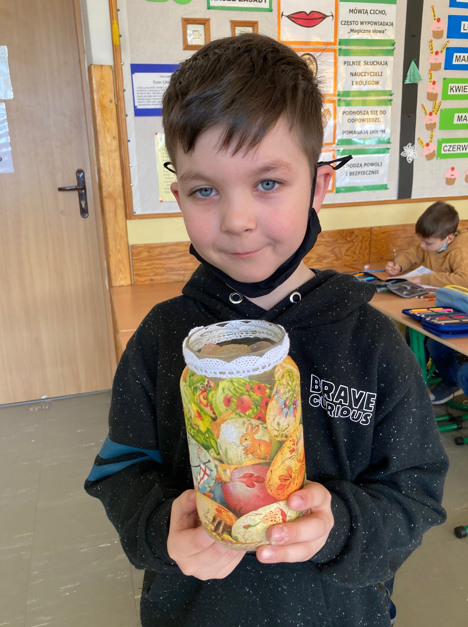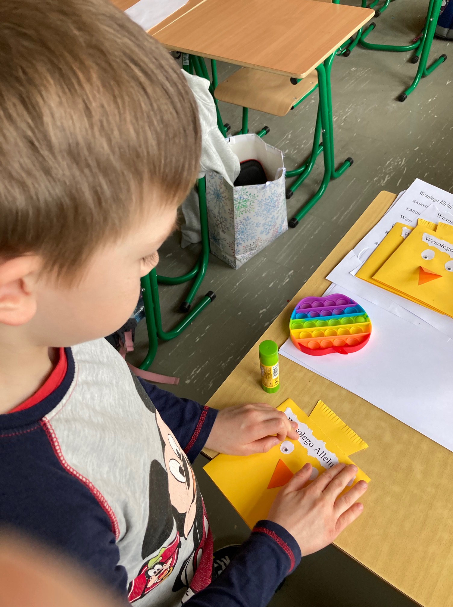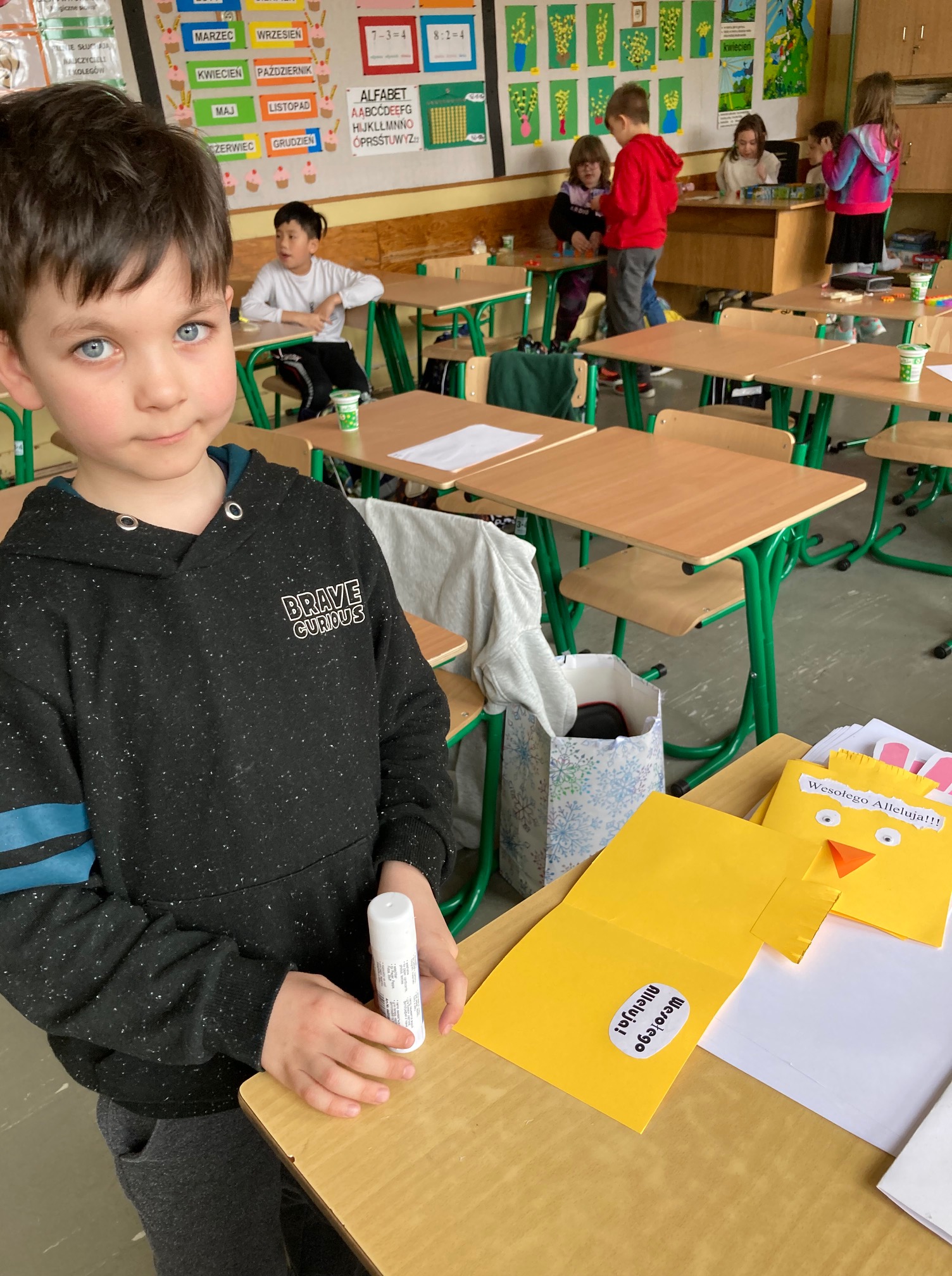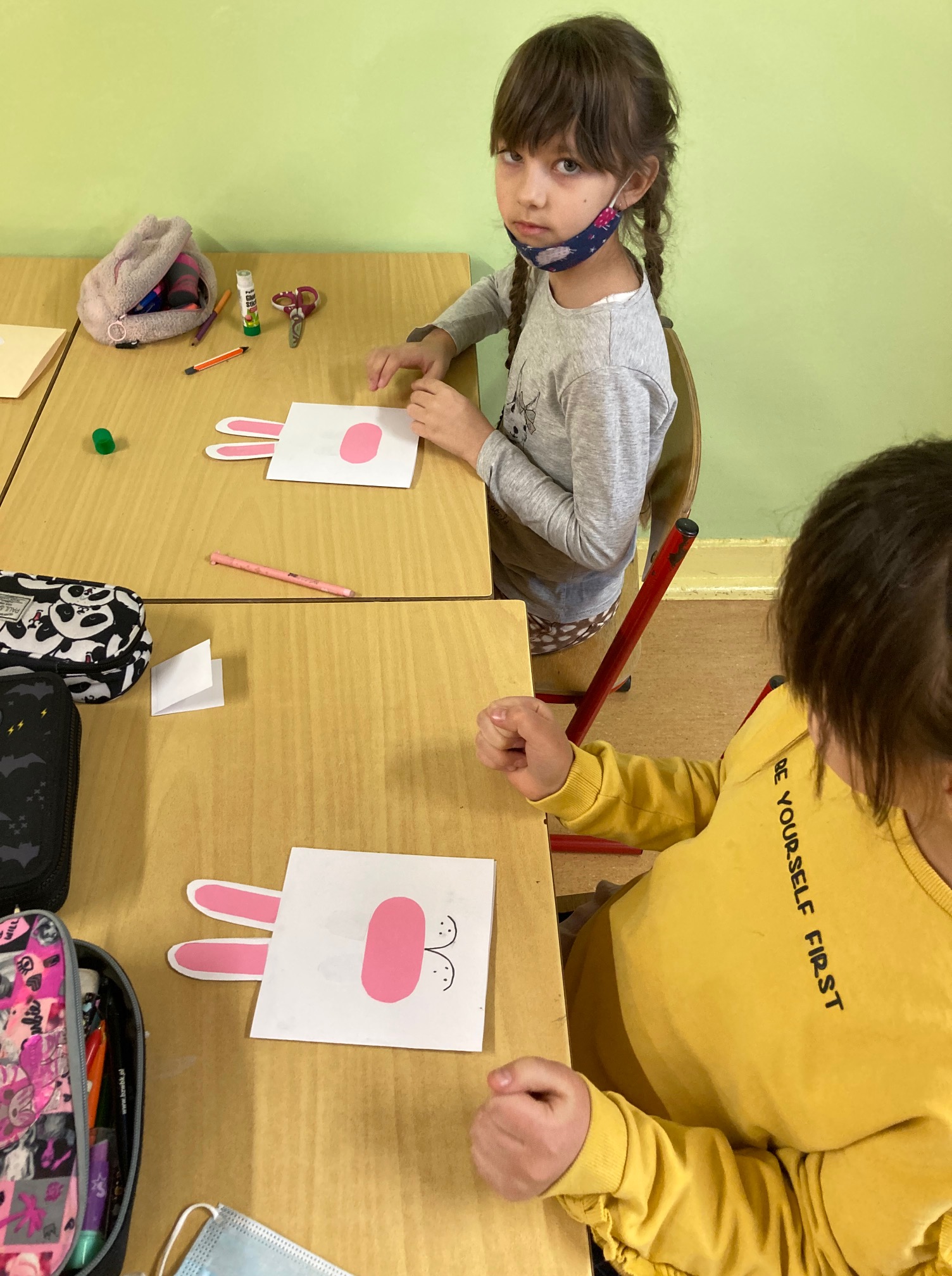 Klasa IIb wzięła udział w przygotowywaniu ekologicznych ozdób na kiermasz wielkanocny oraz kartek z życzeniami dla emerytowanych nauczycieli.