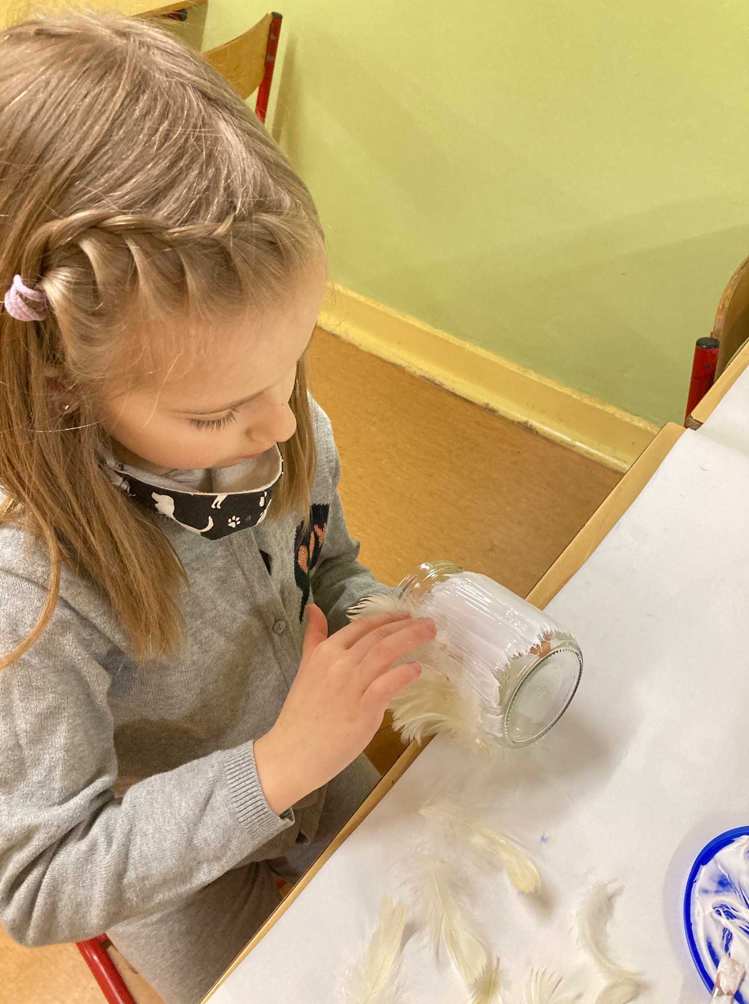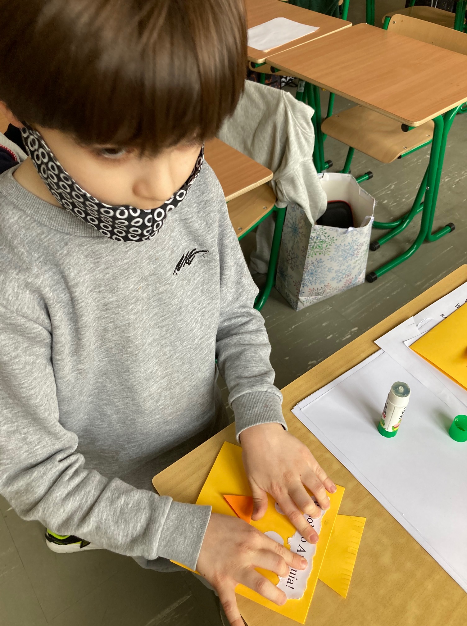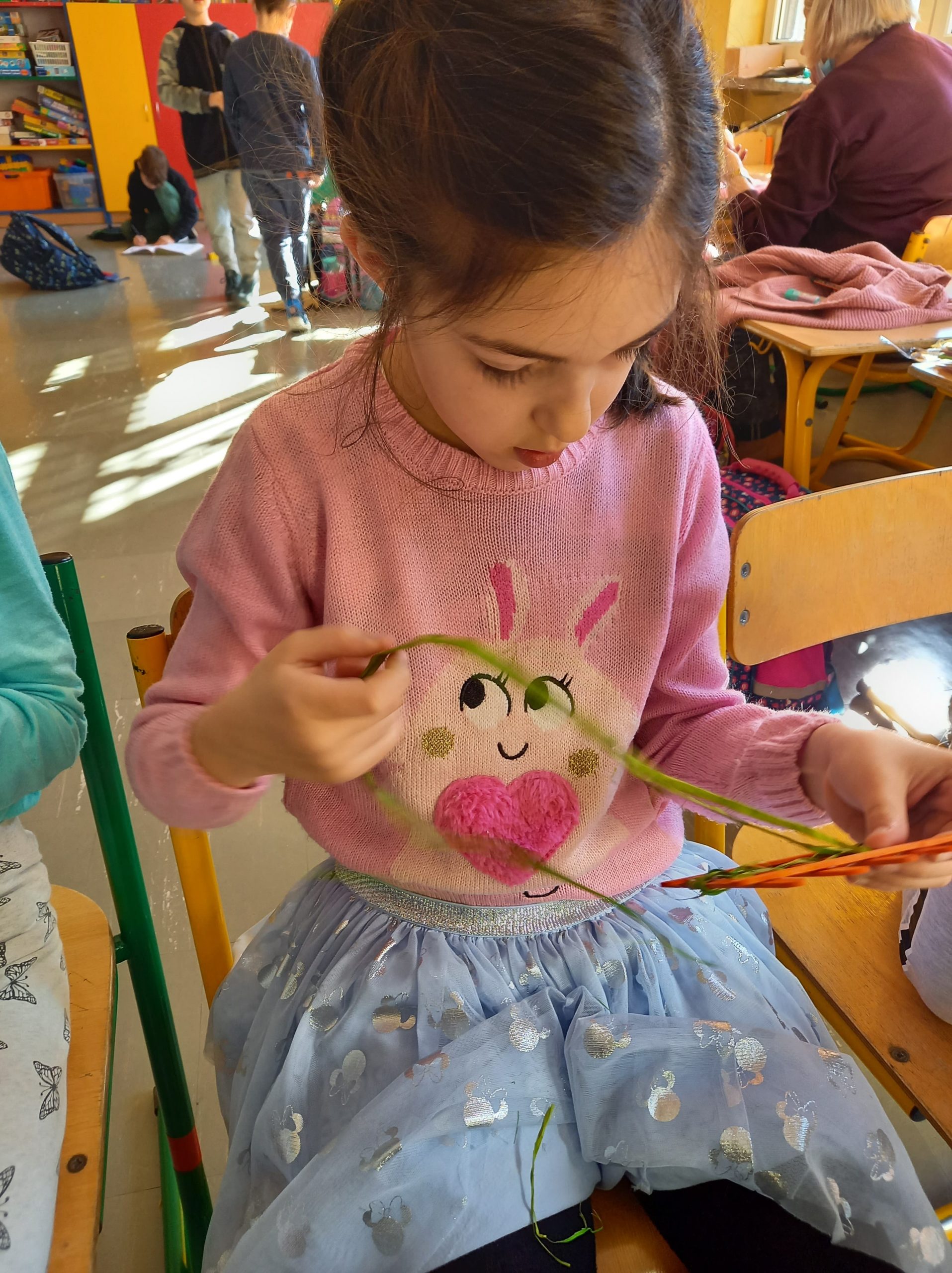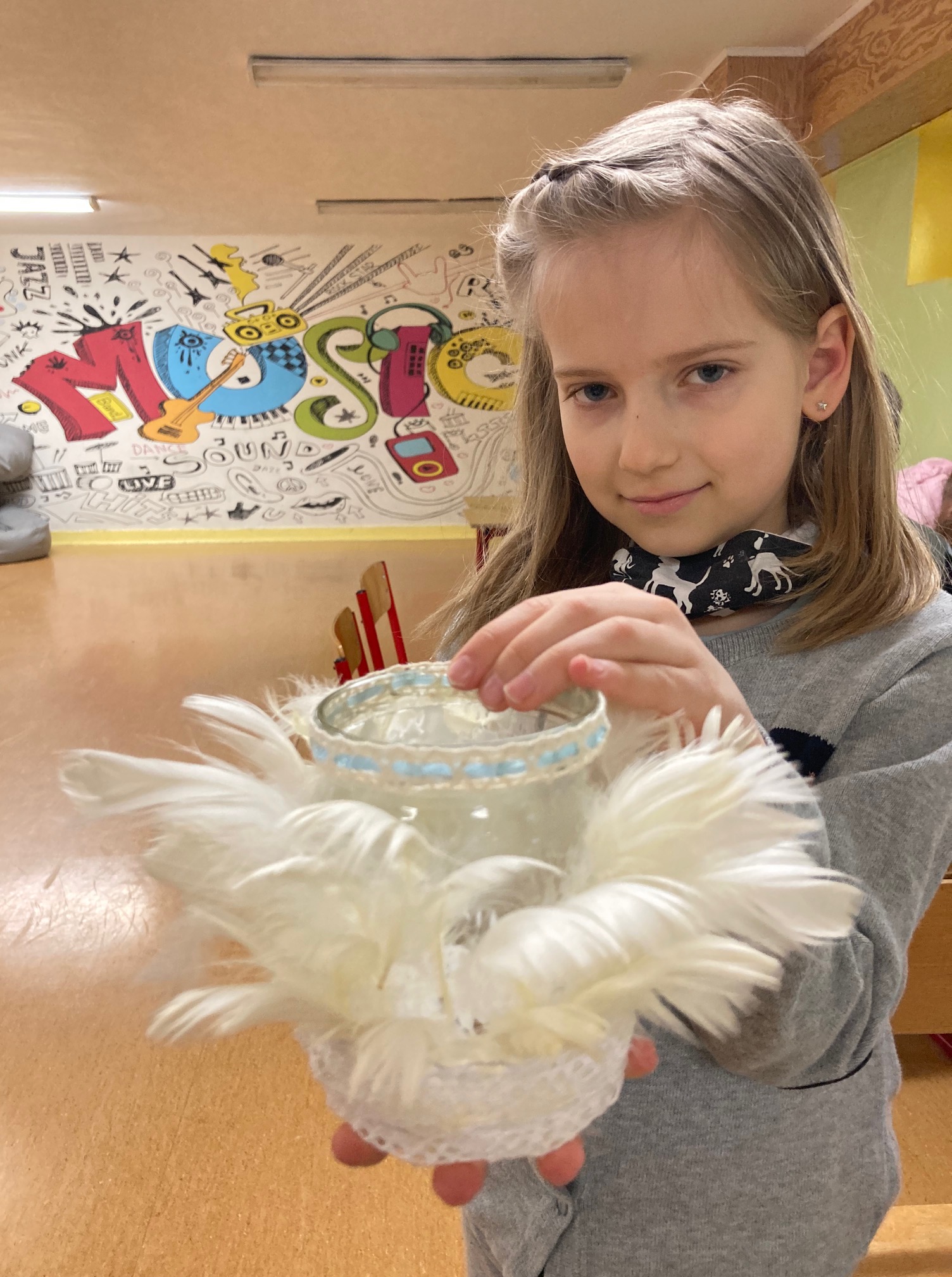 Klasa IIb wzięła udział w przygotowywaniu ekologicznych ozdób na kiermasz wielkanocny oraz kartek z życzeniami dla emerytowanych nauczycieli.