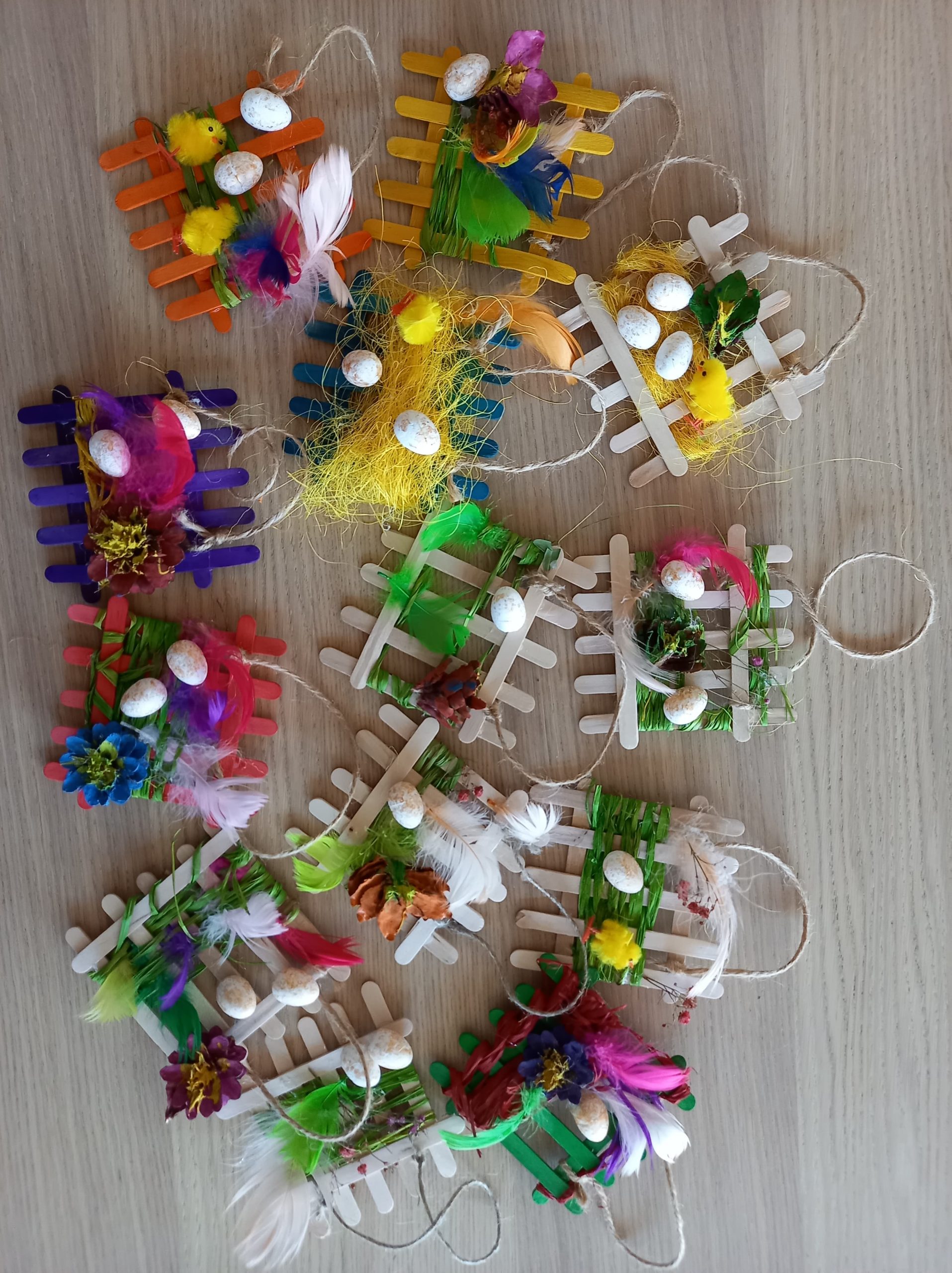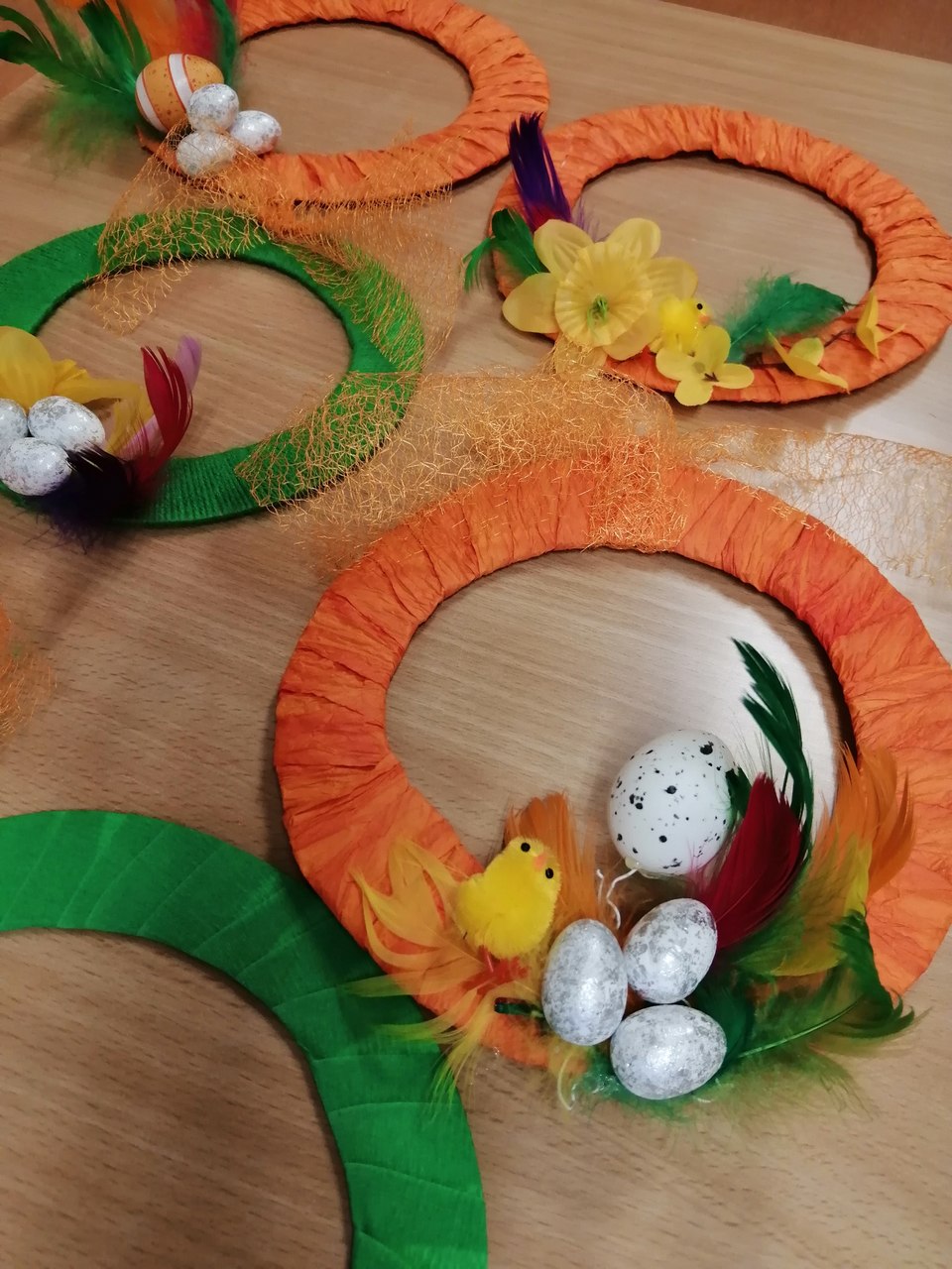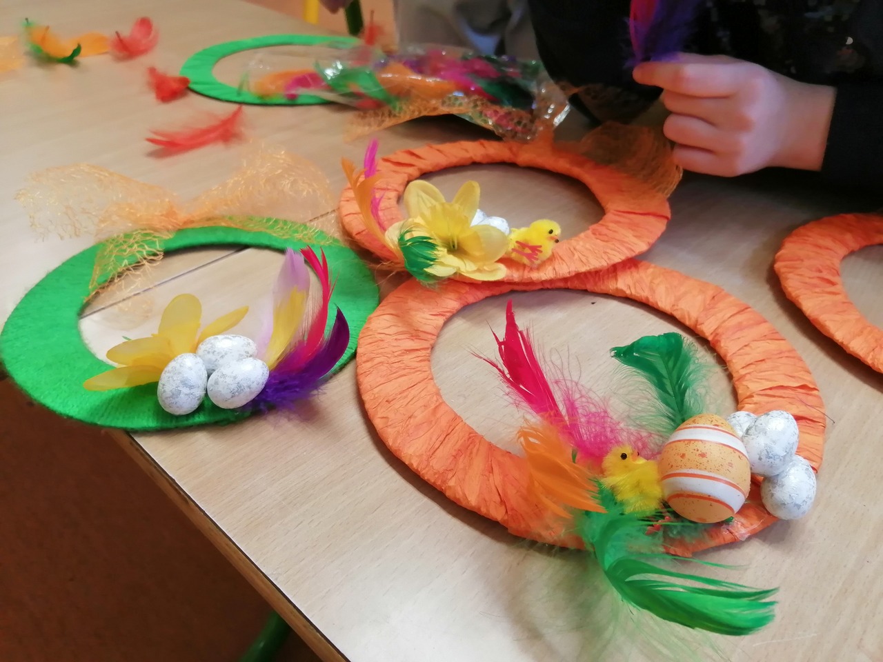 A o to wytwory naszej pracy. Prawda, że piękne? Wszyscy ruszyli do pracy, aby przygotować jak najwięcej ozdób wielkanocnych.
